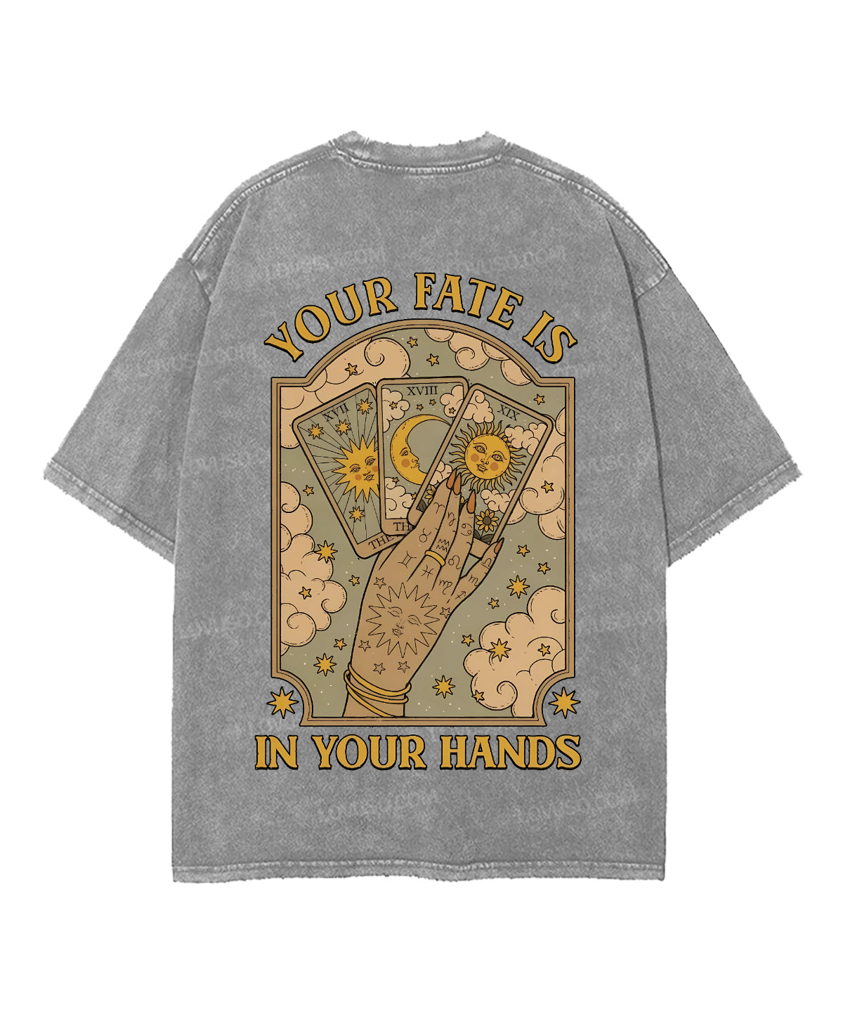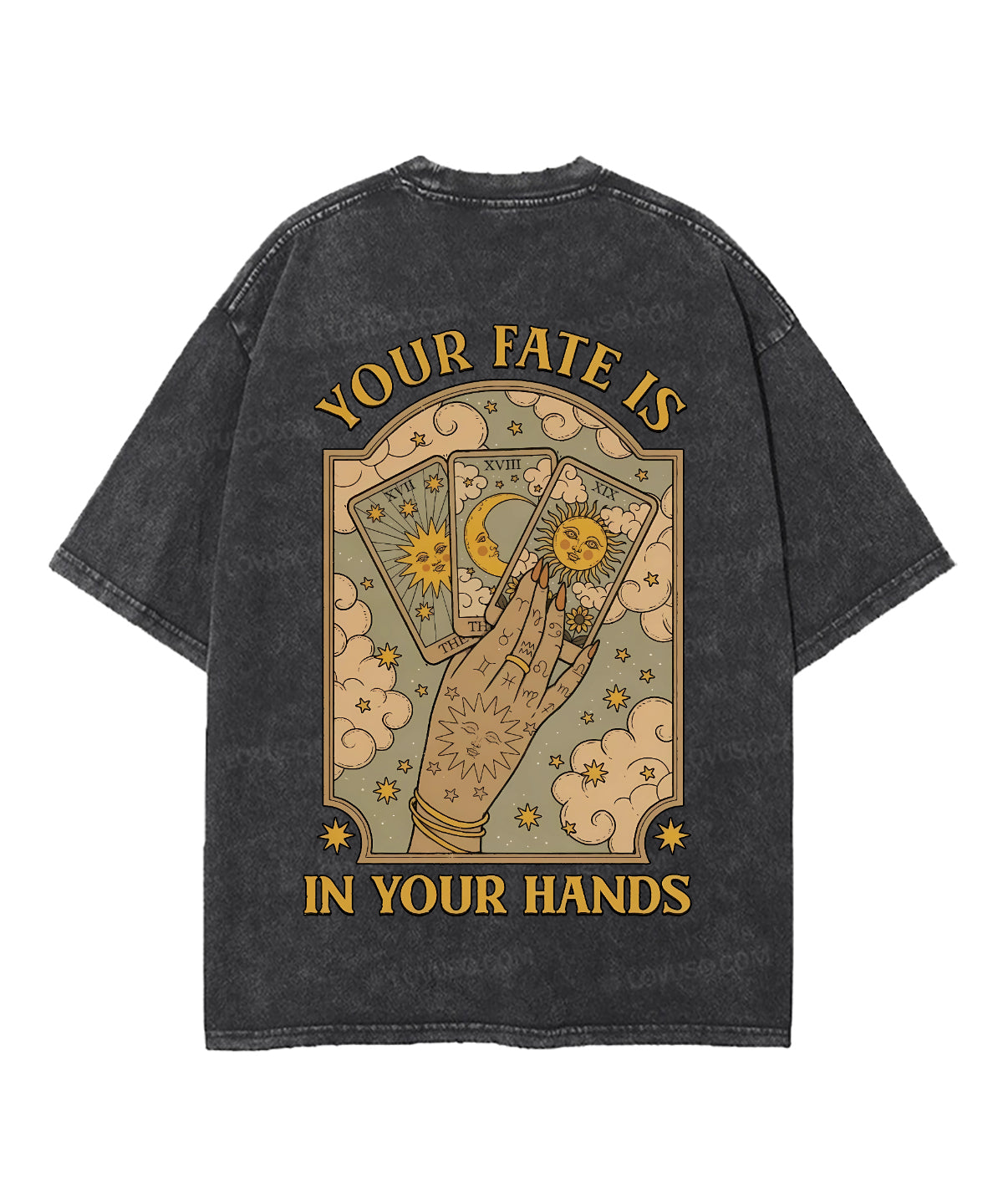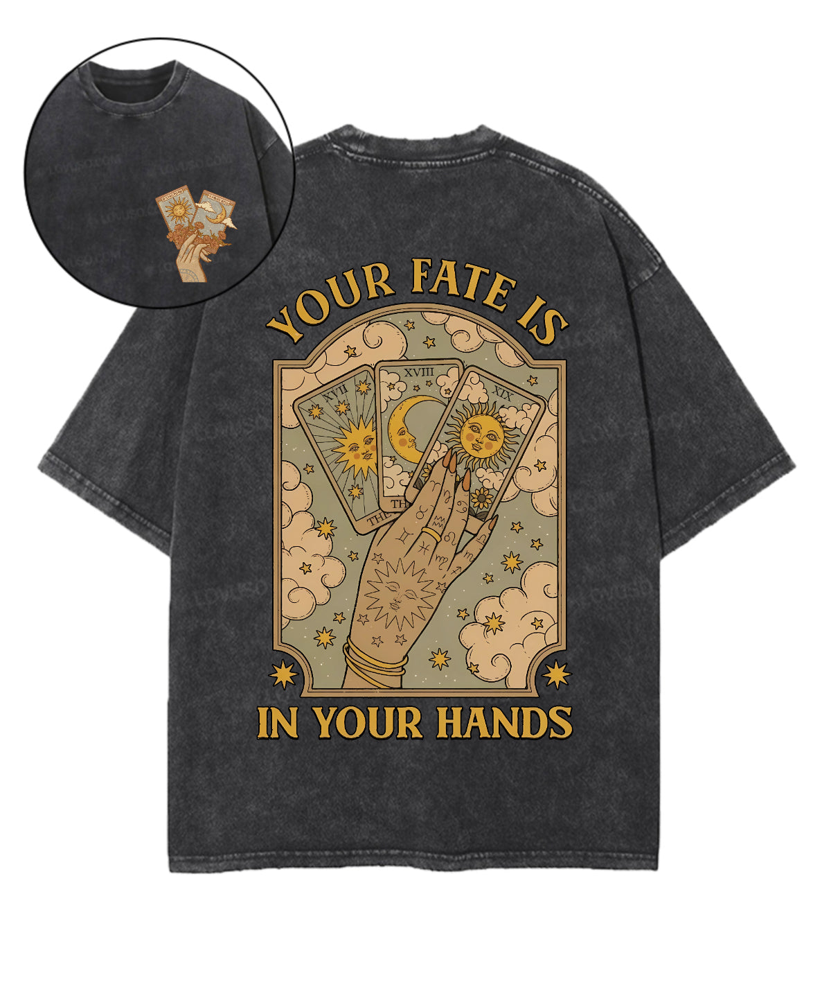 Mysic Sun Moon Your Fate Is In Your Hands Double Sided Washed T-shirt