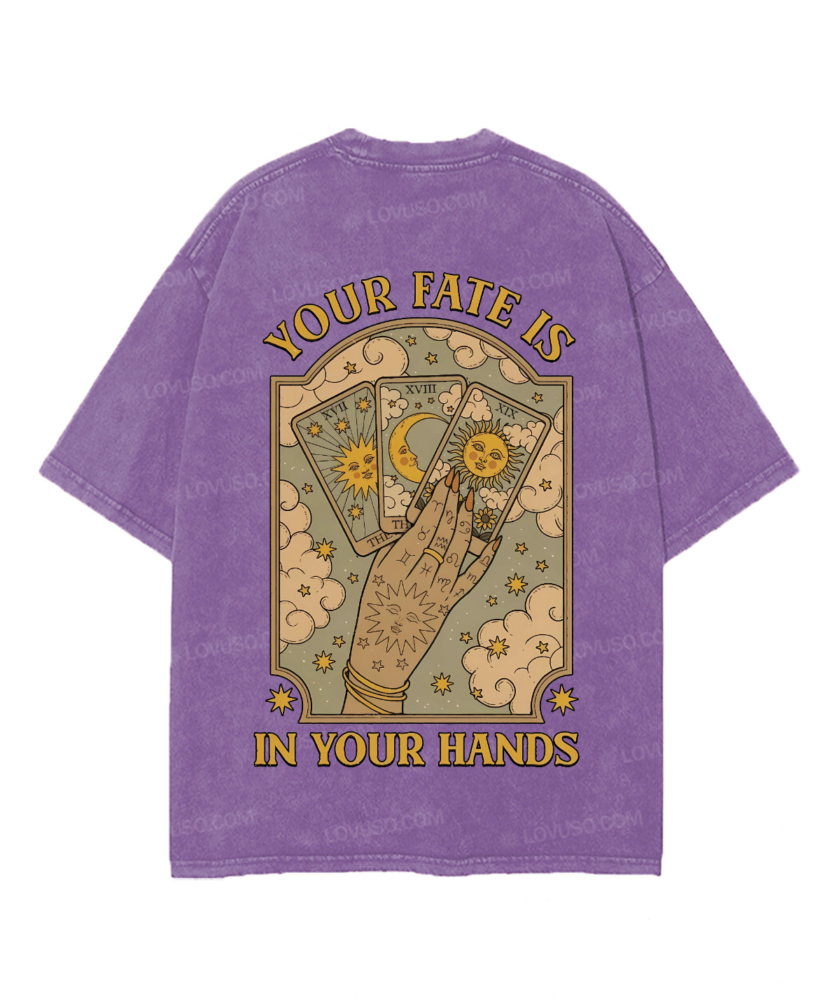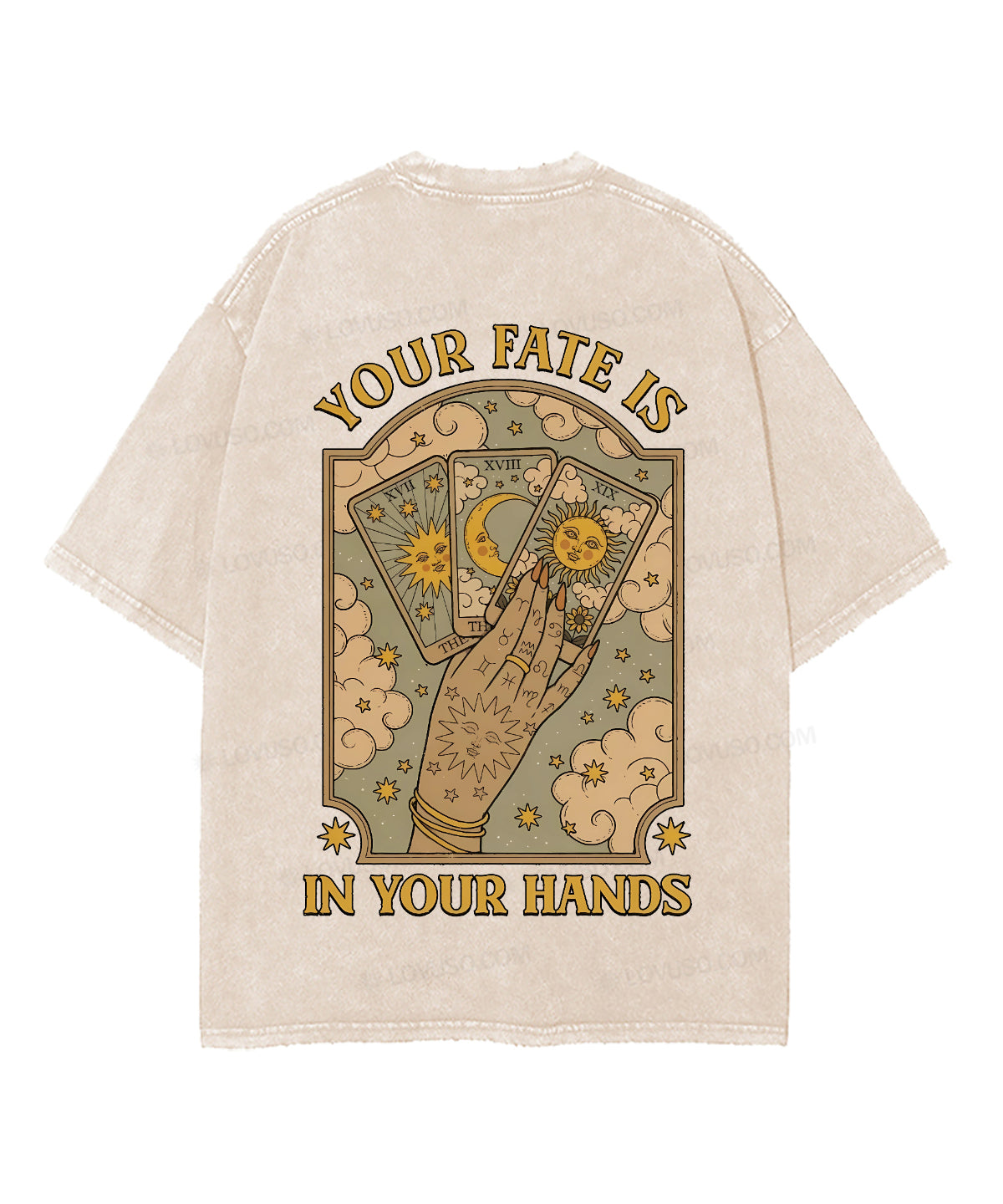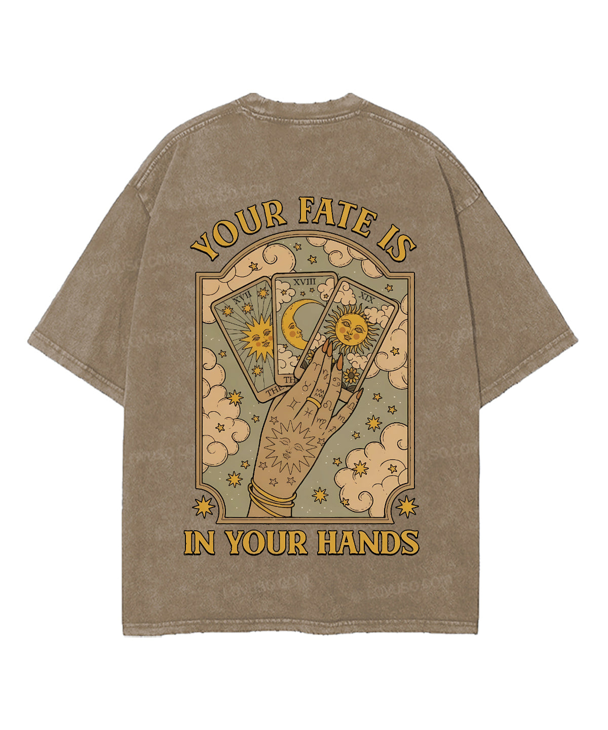 Mysic Sun Moon Your Fate Is In Your Hands Double Sided Washed T-shirt
