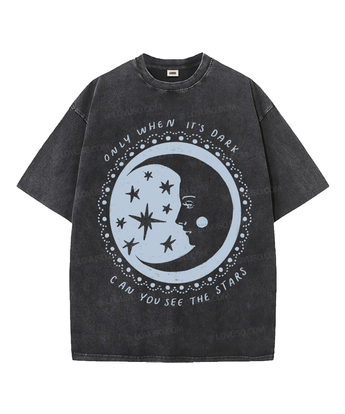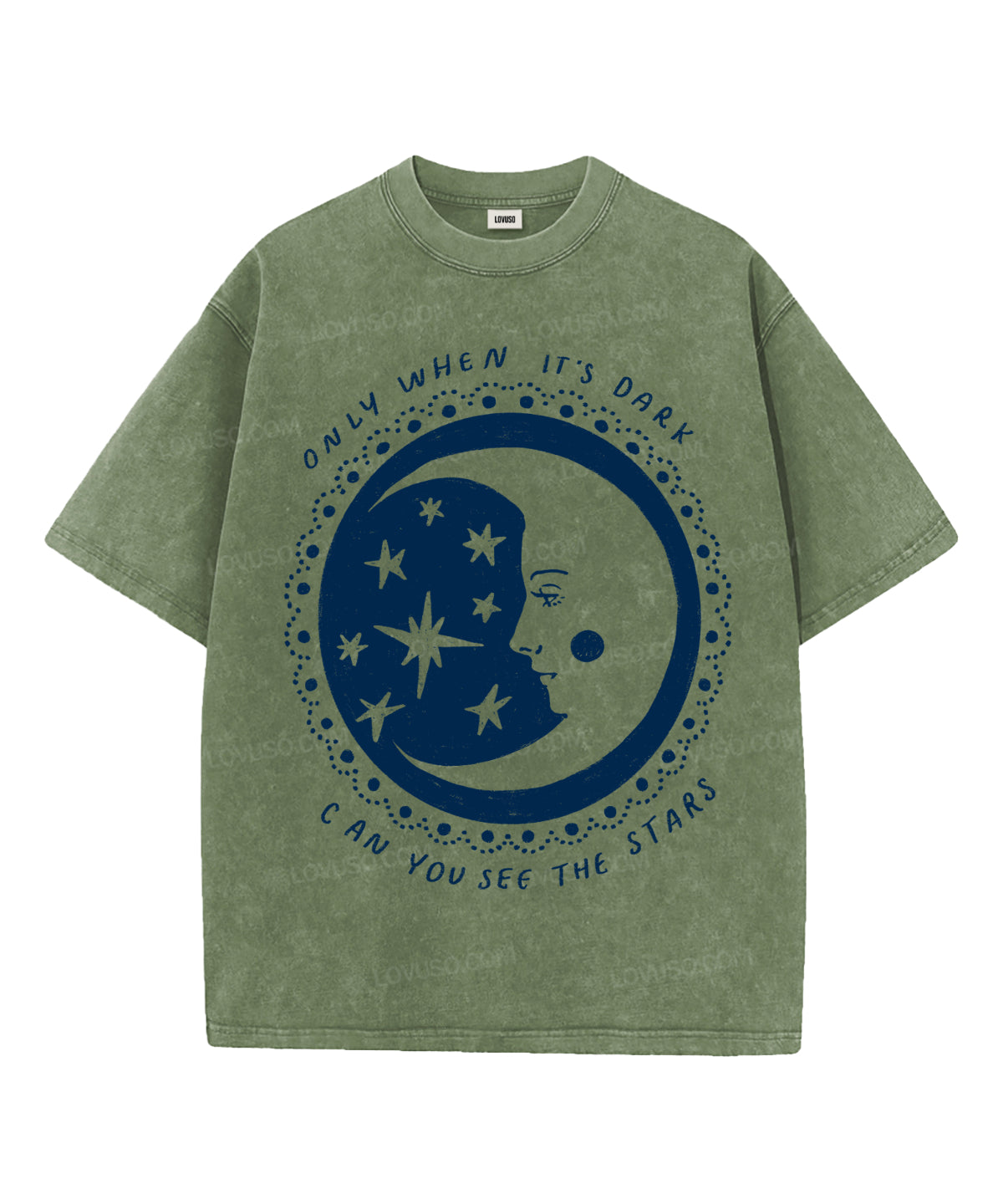 Mystic Sun Moon Only When It's Dark Can You See The Stars Double Sided Washed T-shirt