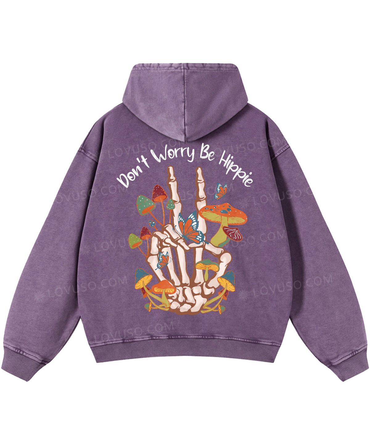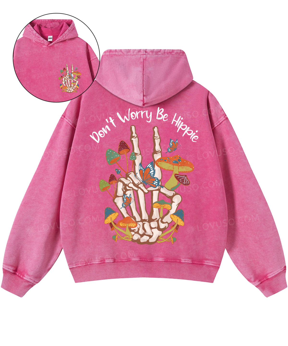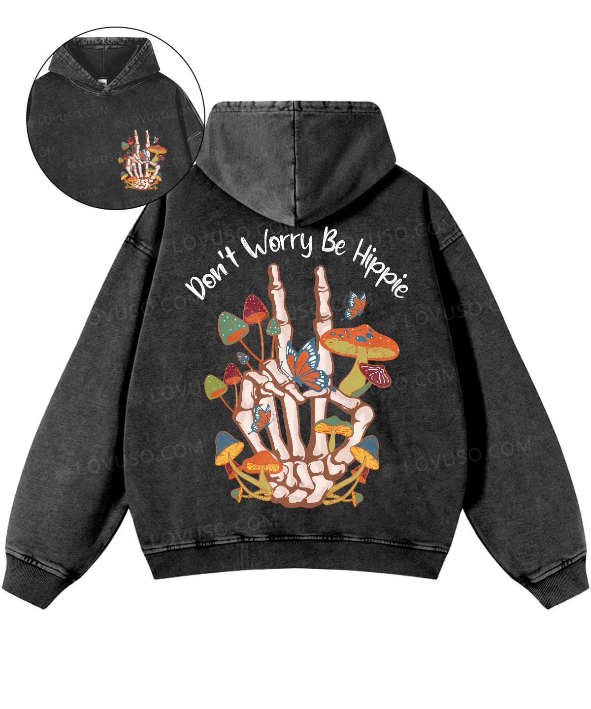 Don‘t Worry Be Hippie Mushroom Double Sided Washed Hoodie