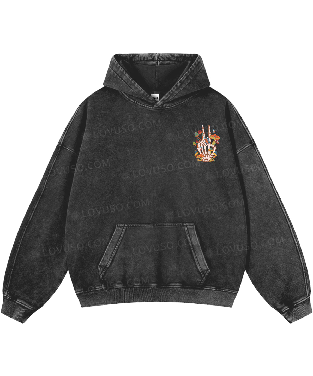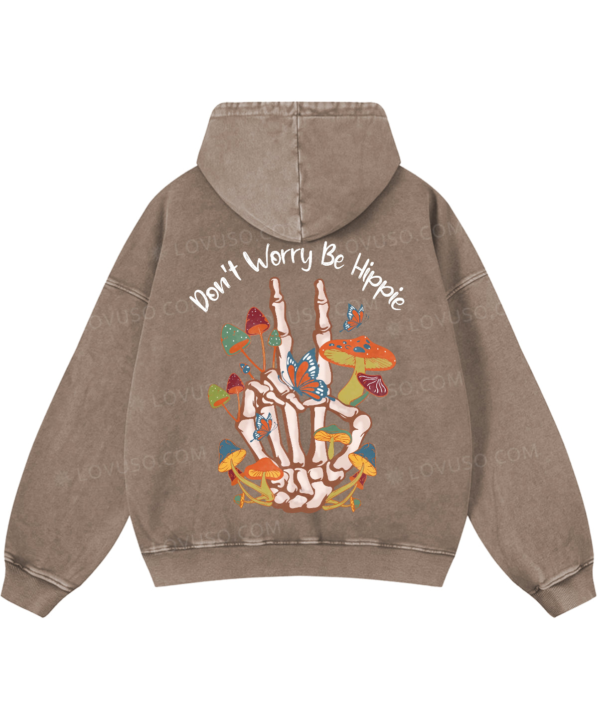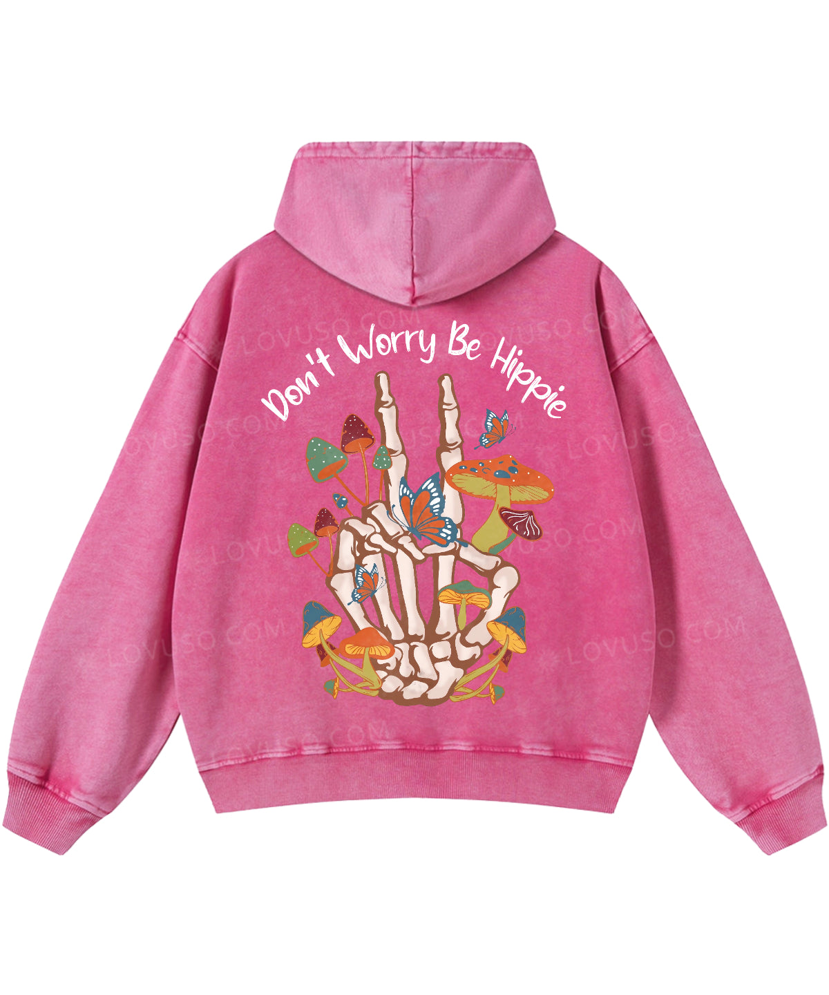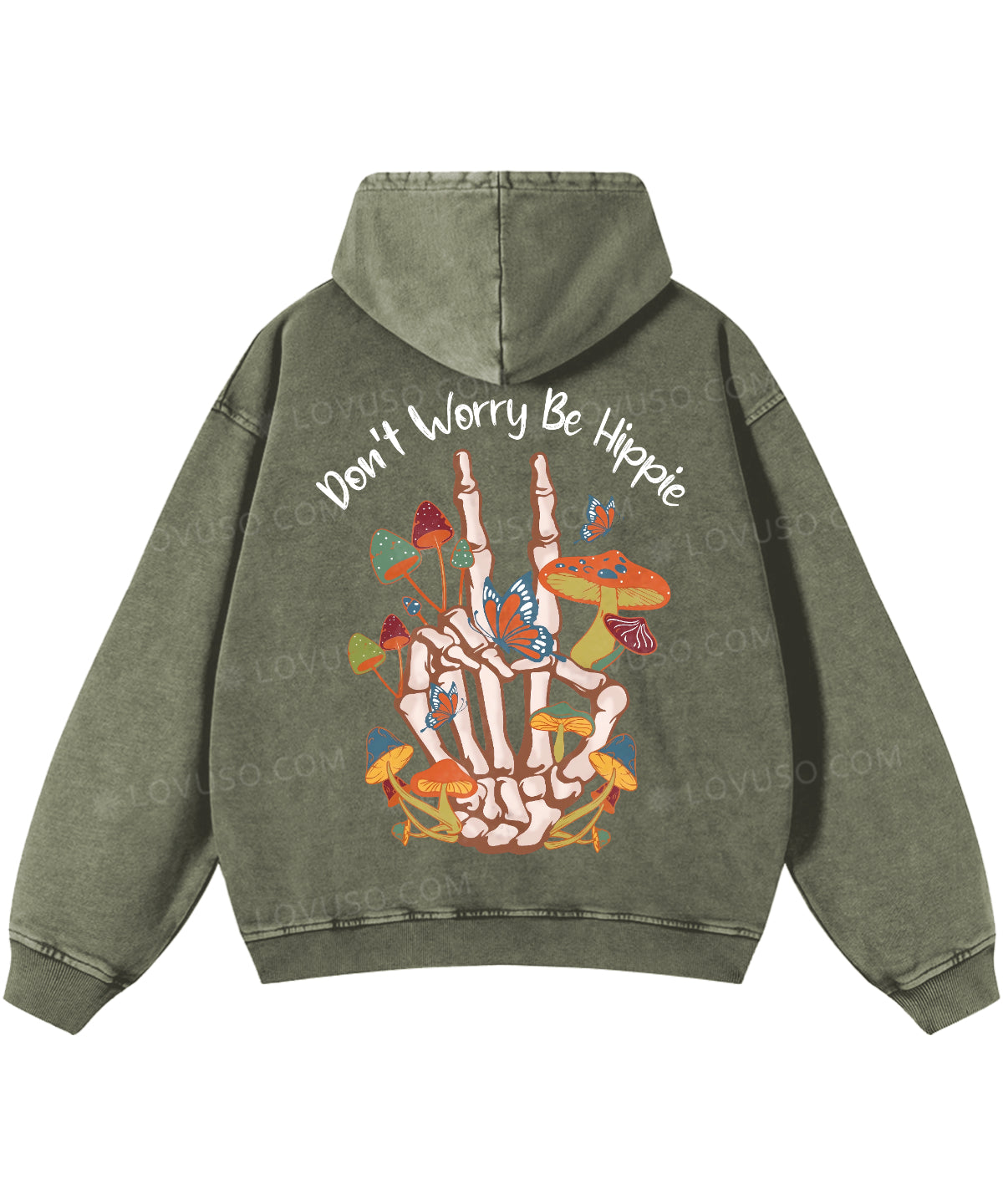 Don‘t Worry Be Hippie Mushroom Double Sided Washed Hoodie