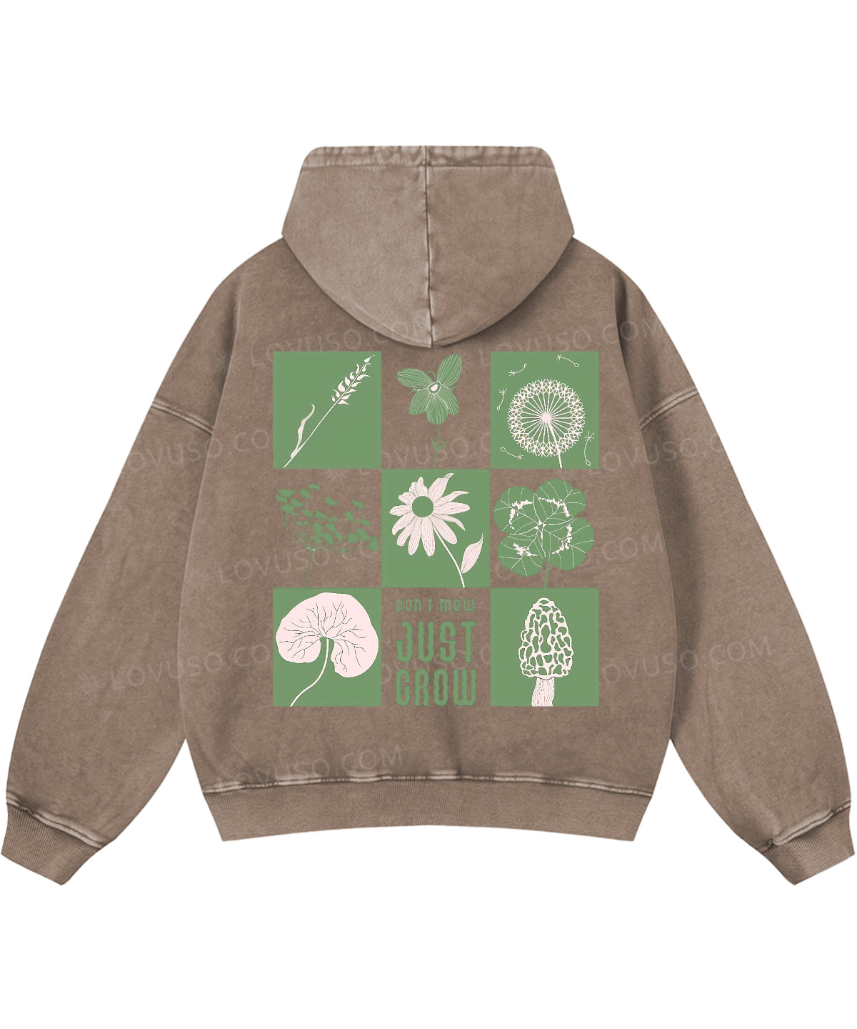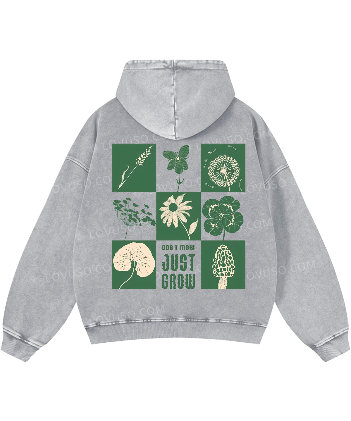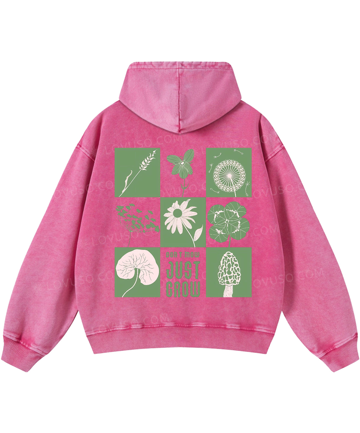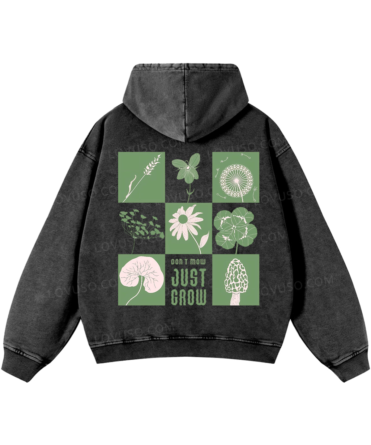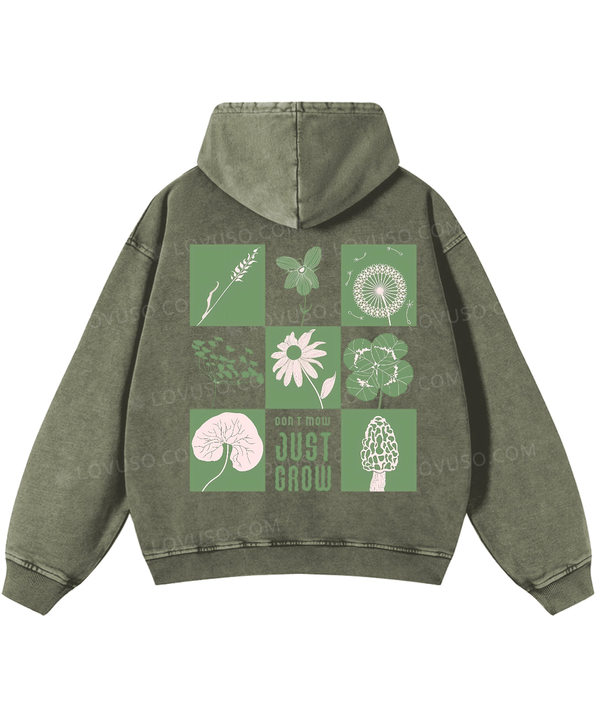 Green Flower And Plant Don't Mow Just Grow Double Sided Washed Hoodie