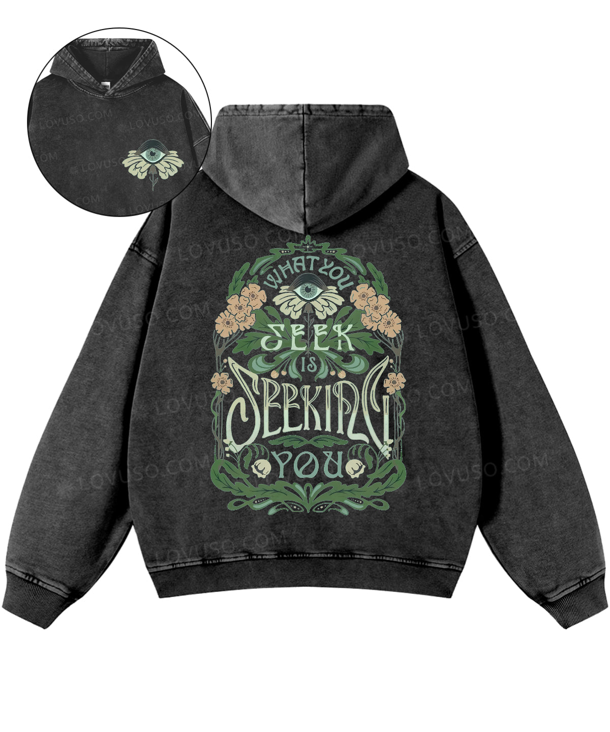 Mysic What You Seek Is Seeking You Double Sided Washed Hoodie