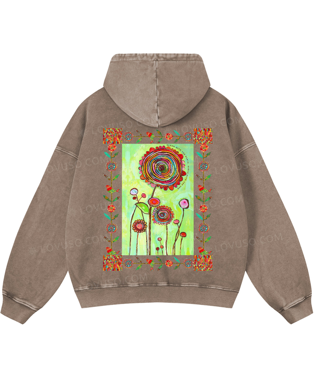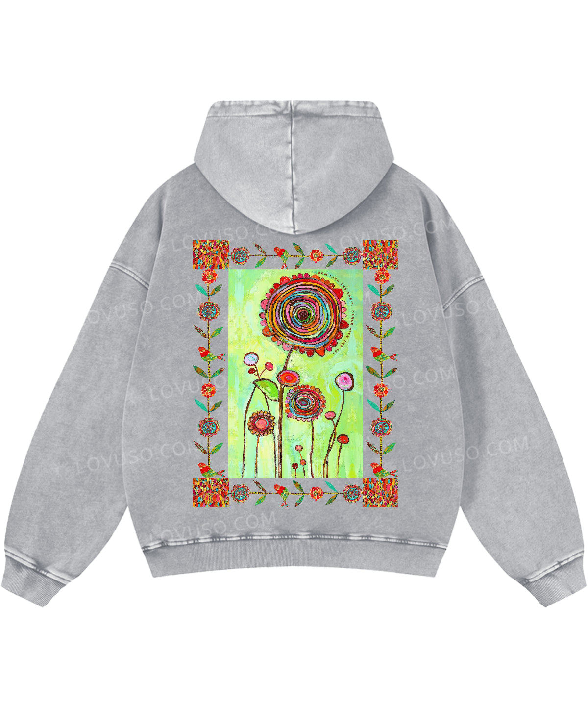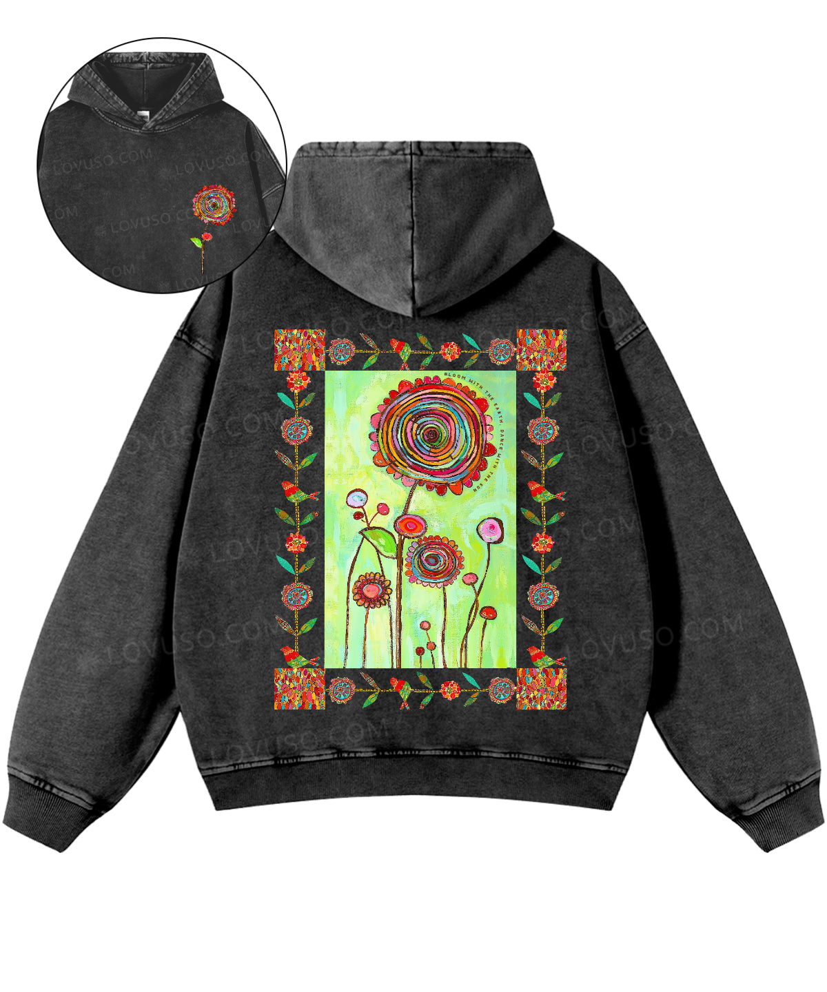 Retro Bloom With The Earth Dance With The Sun Double Sided Washed Hoodie