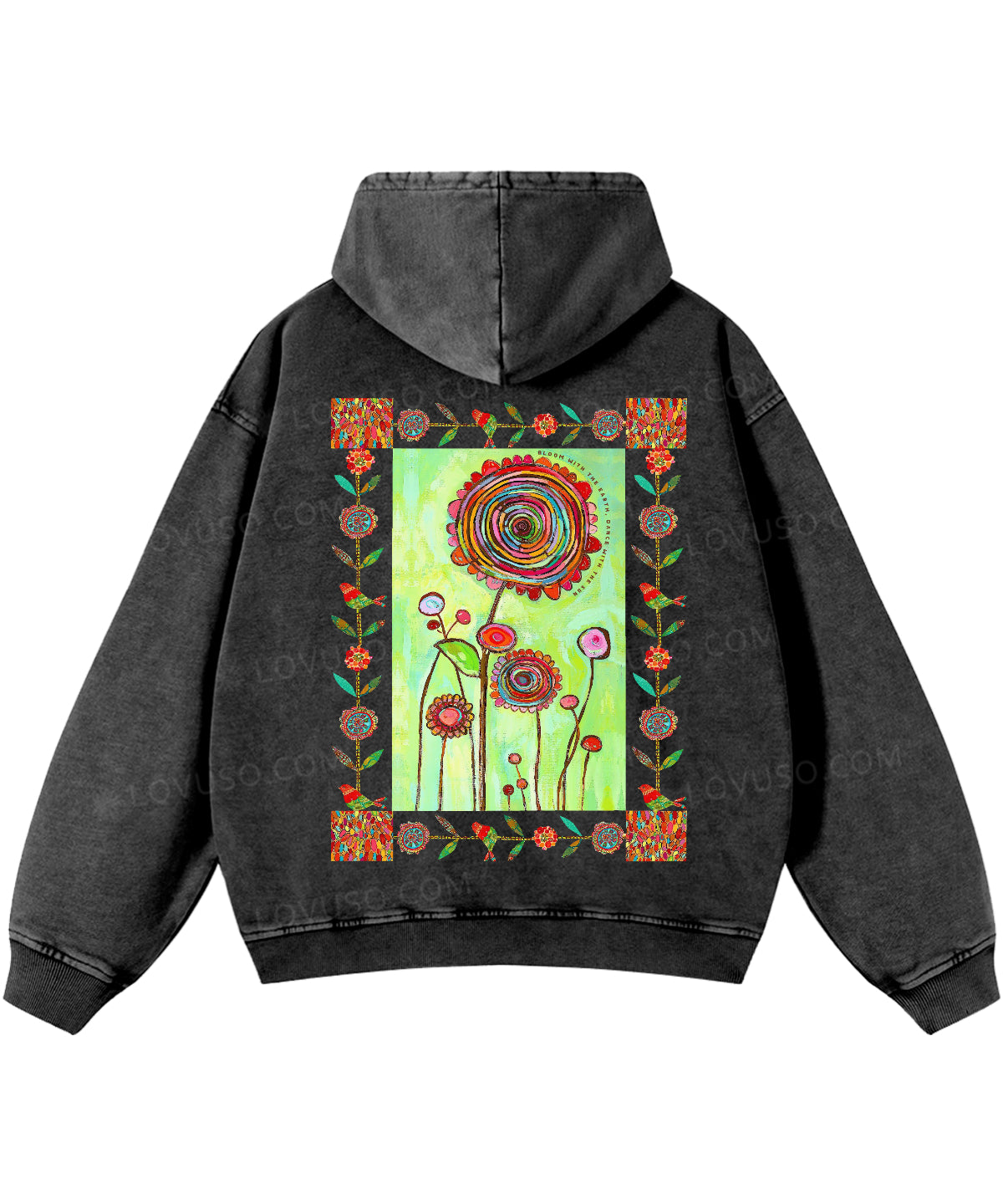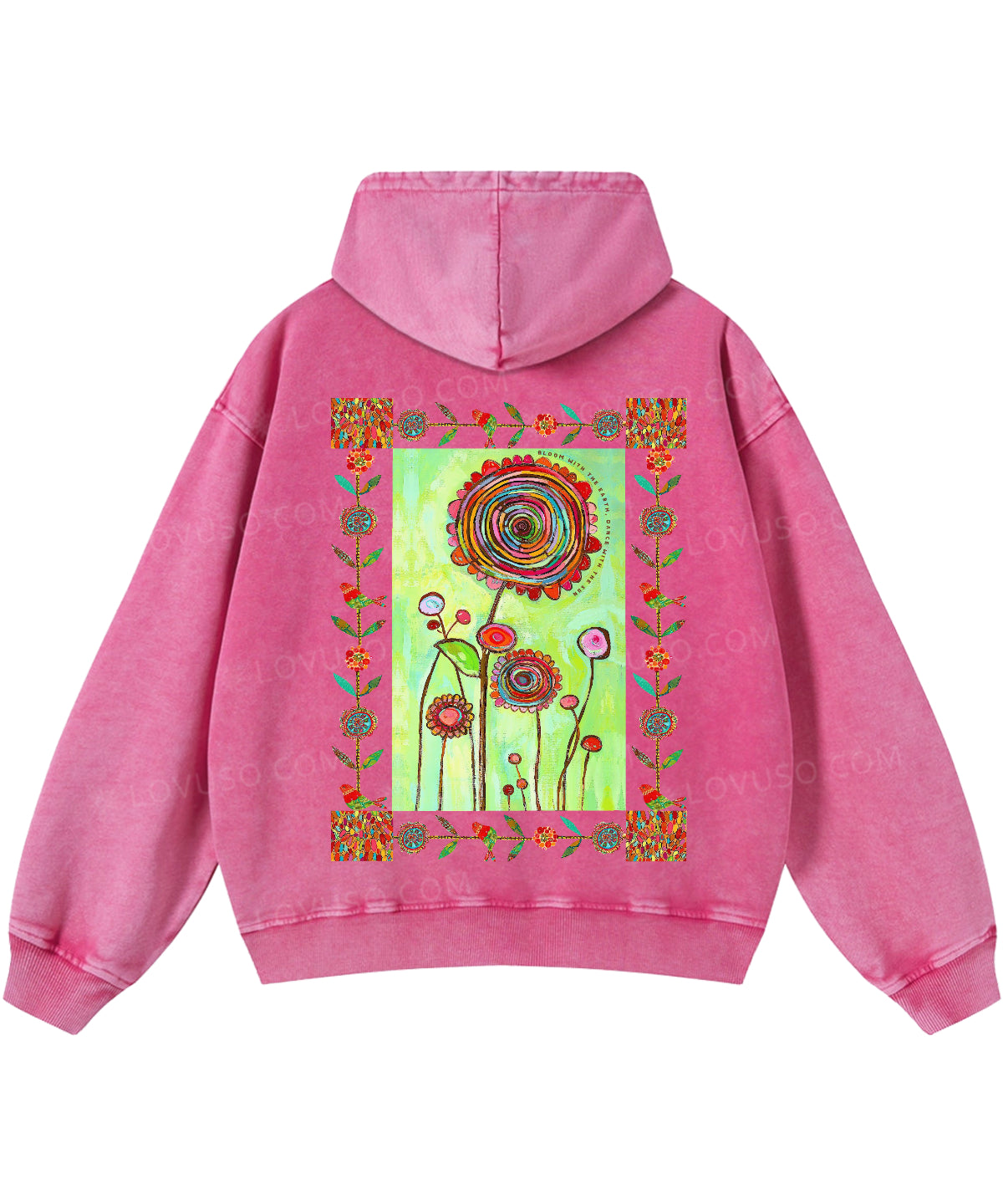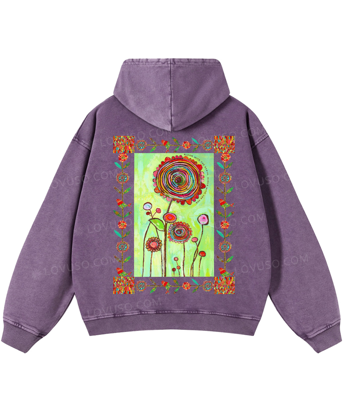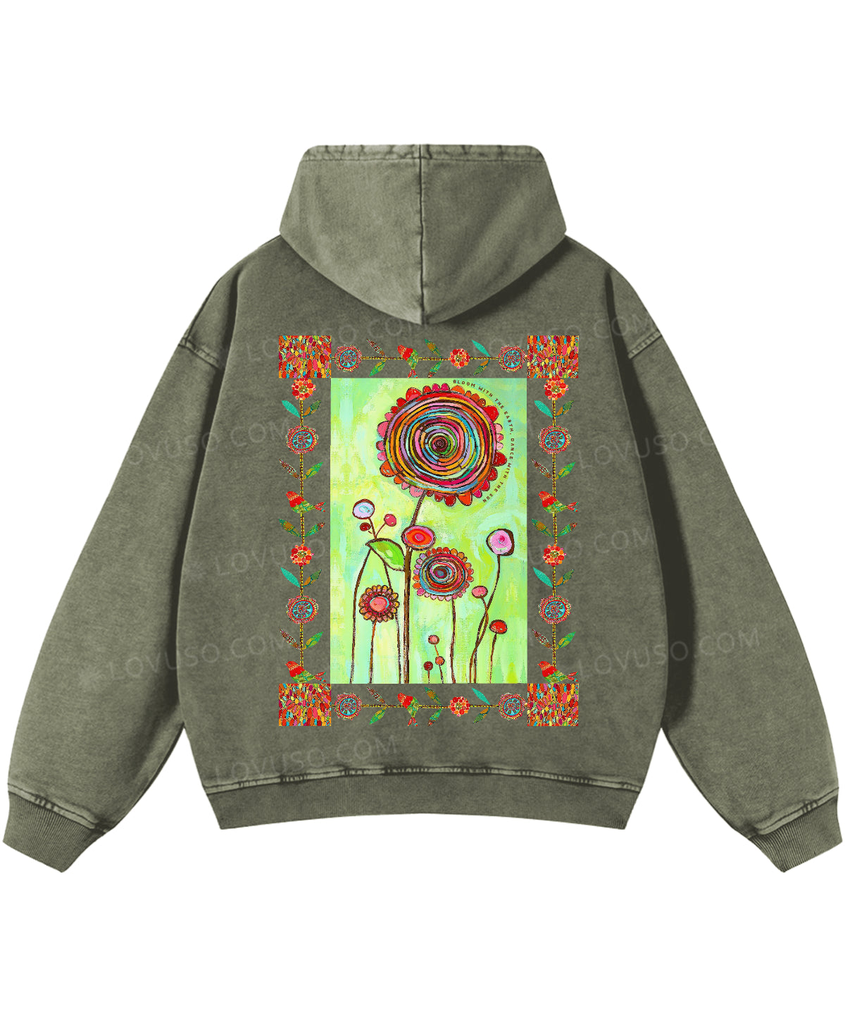 Retro Bloom With The Earth Dance With The Sun Double Sided Washed Hoodie