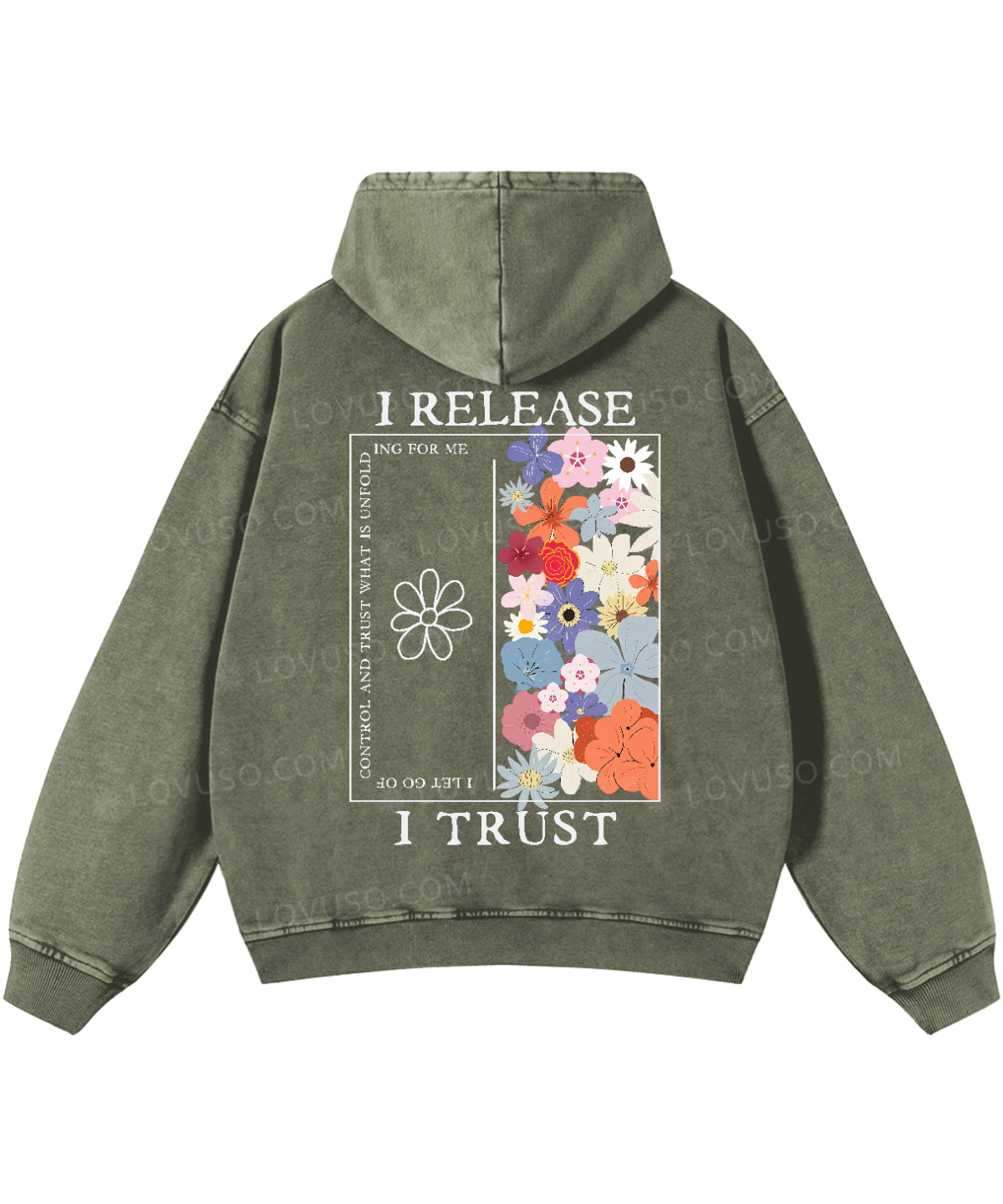 Retro Flower I Release I Trust Double Sided Washed Hoodie