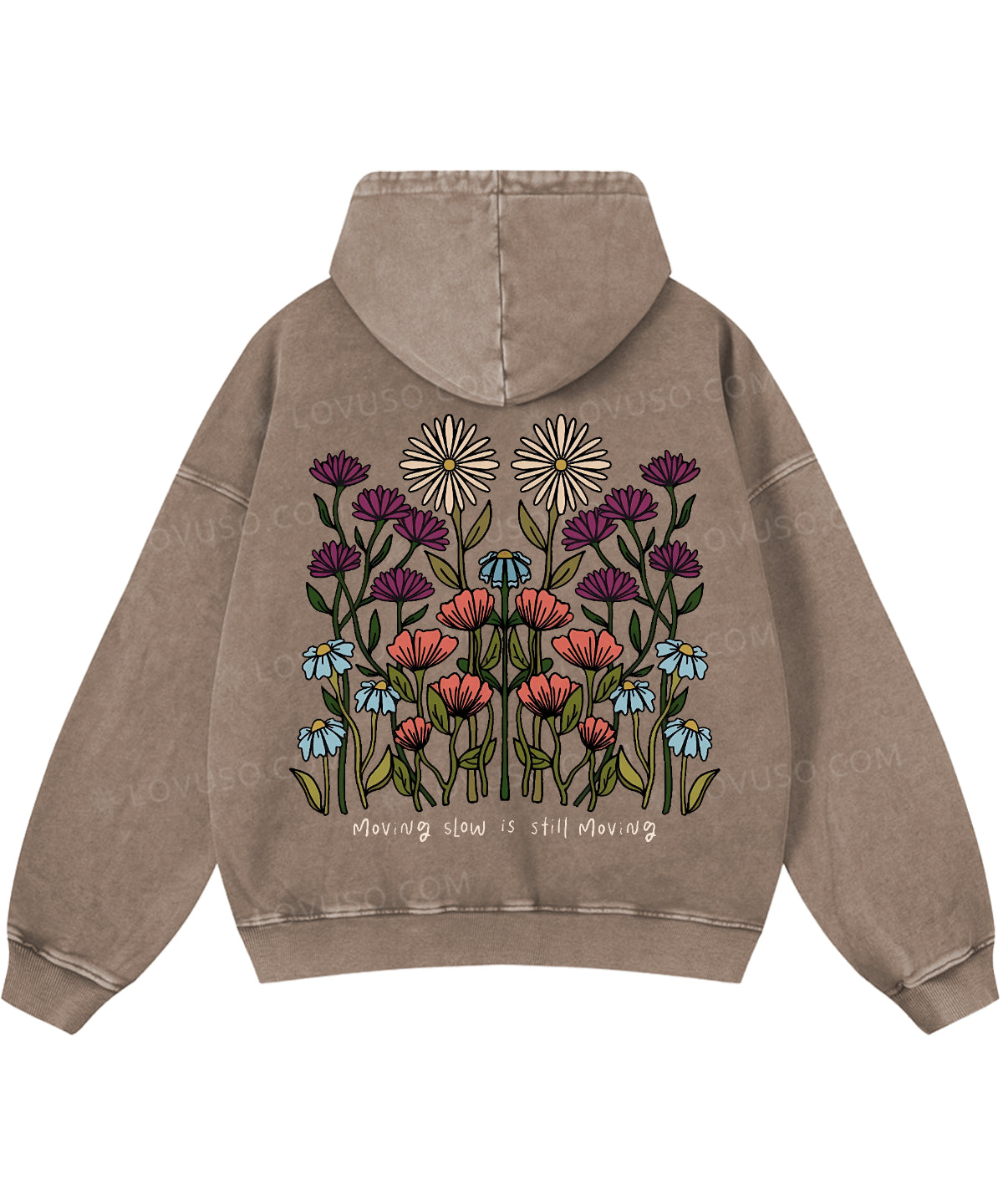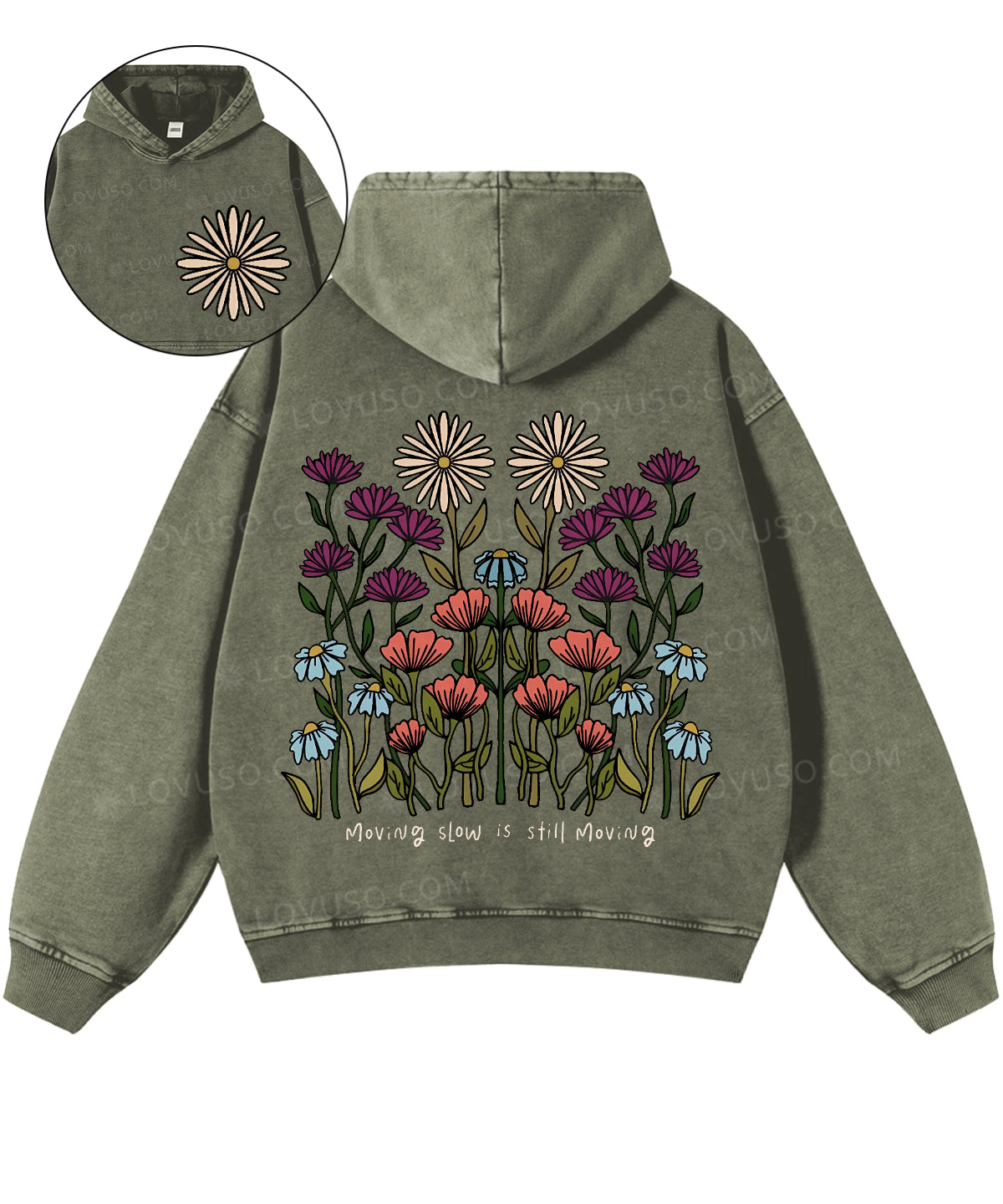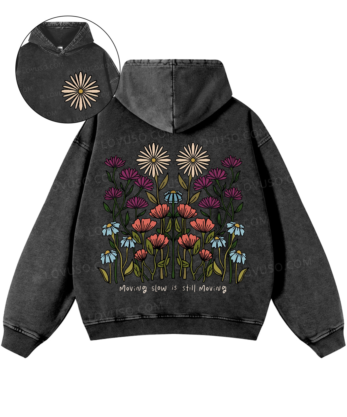 Retro Flower Moving Slow Is Still Moving Double Sided Washed Hoodie