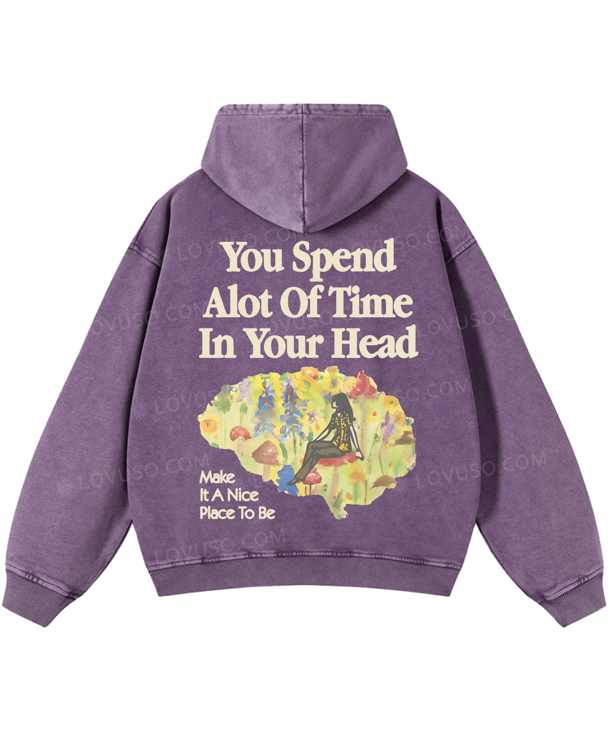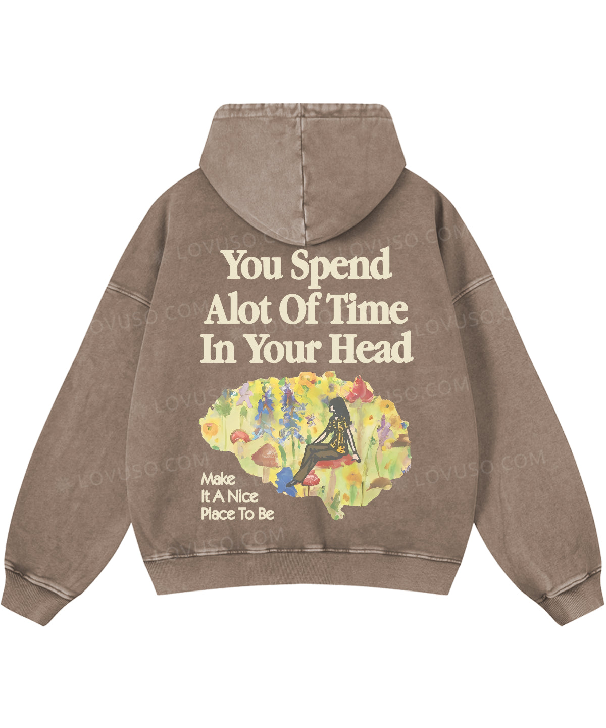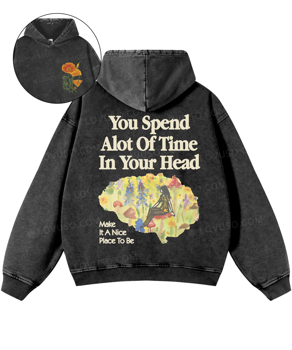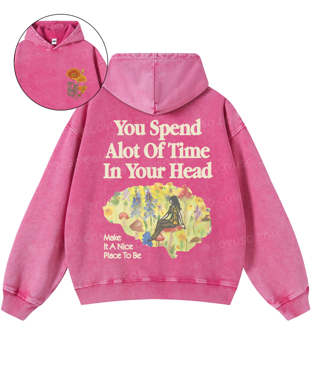 Retro Flower You Spend Alot Of Time In Your Head Double Sided Washed Hoodie
