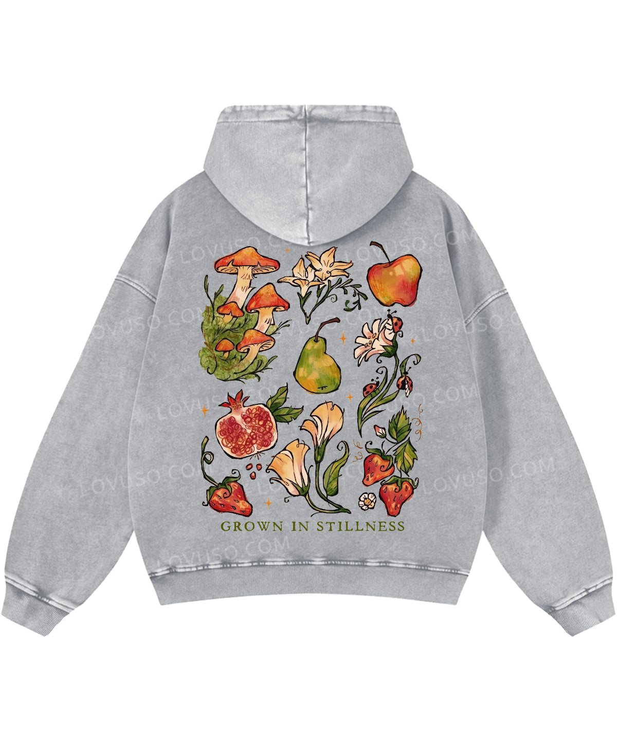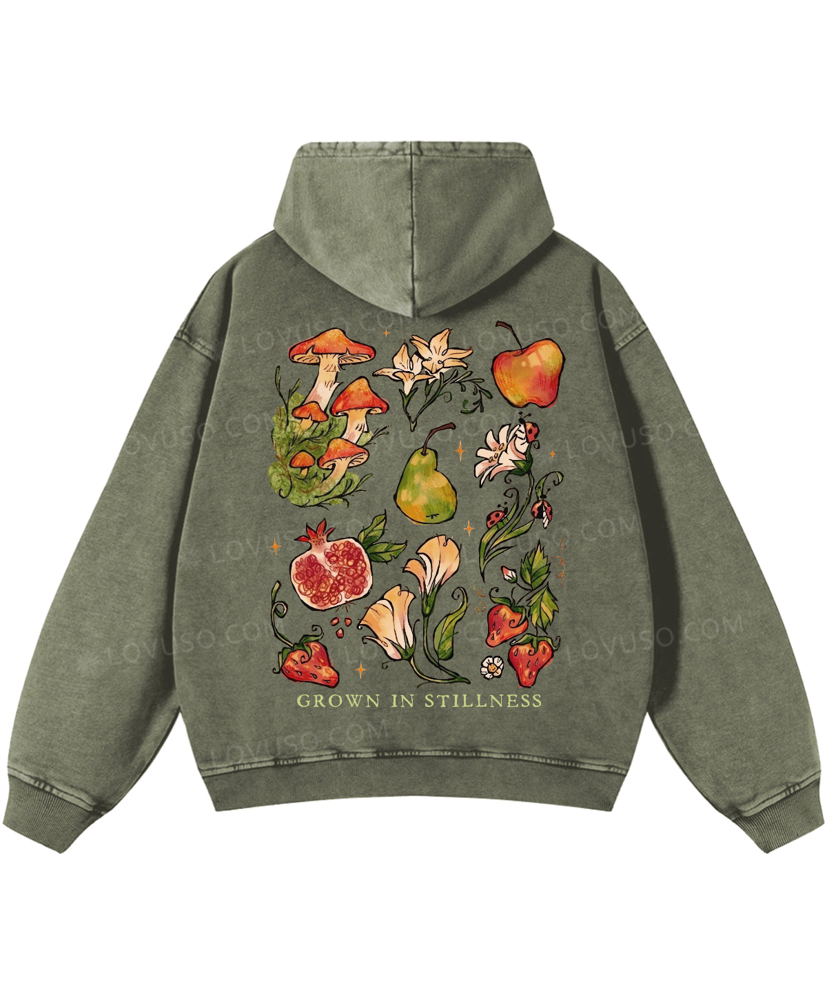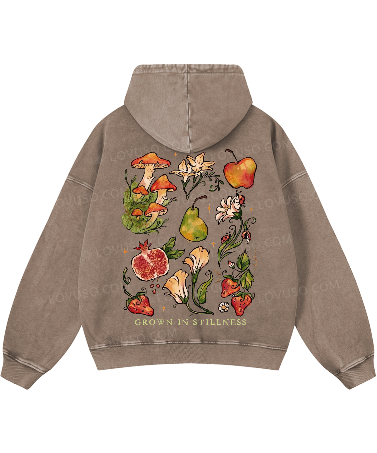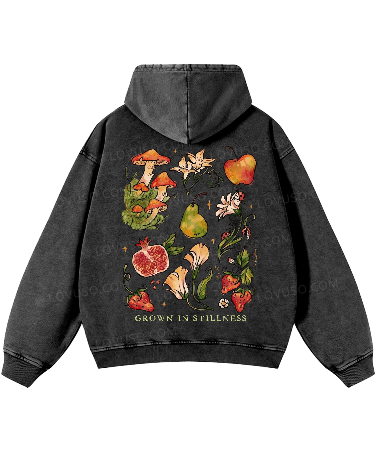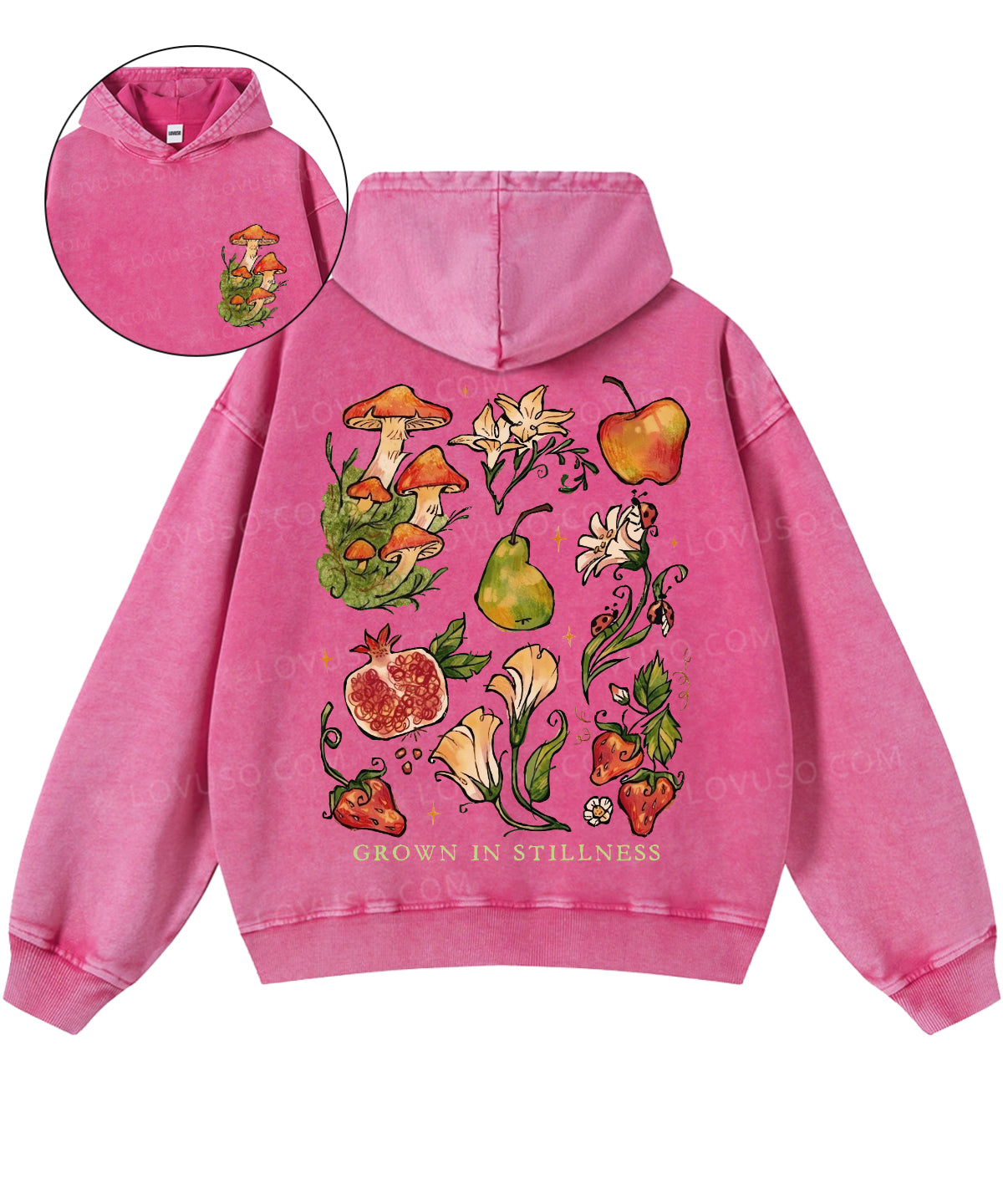Retro Mushroom Grown In Stillness Double Sided Washed Hoodie