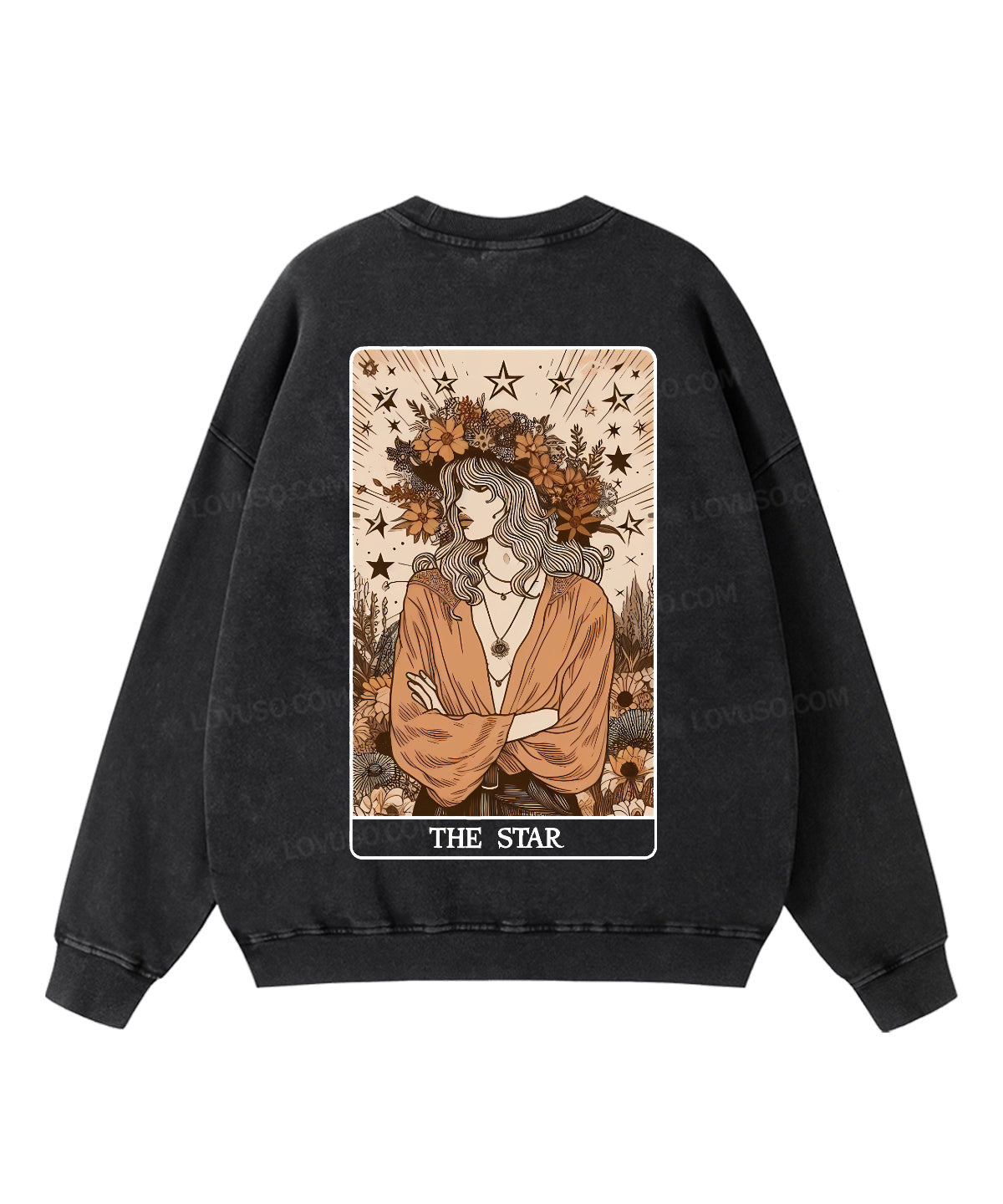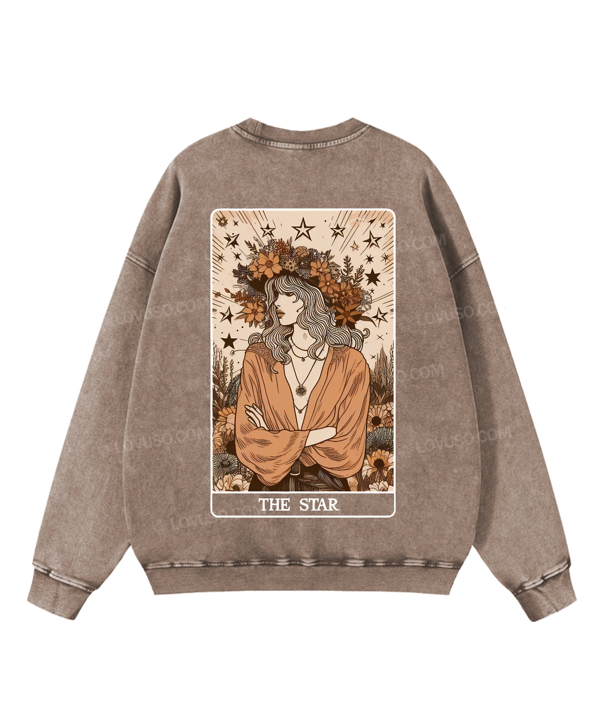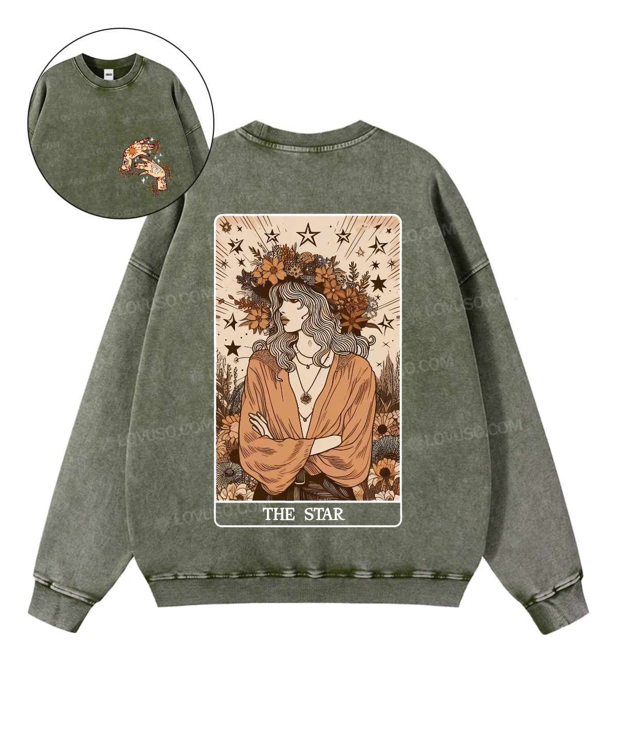 Retro Tarot Aesthetic The Star Double Sided Washed Sweatshirt