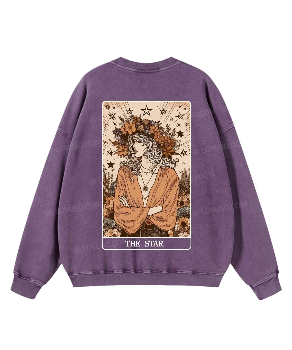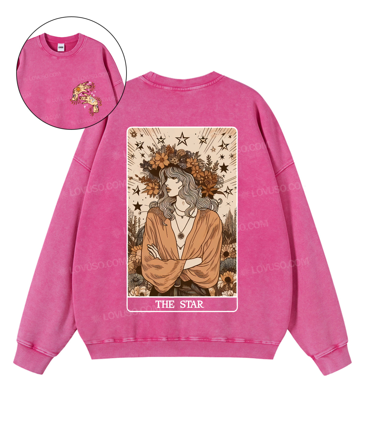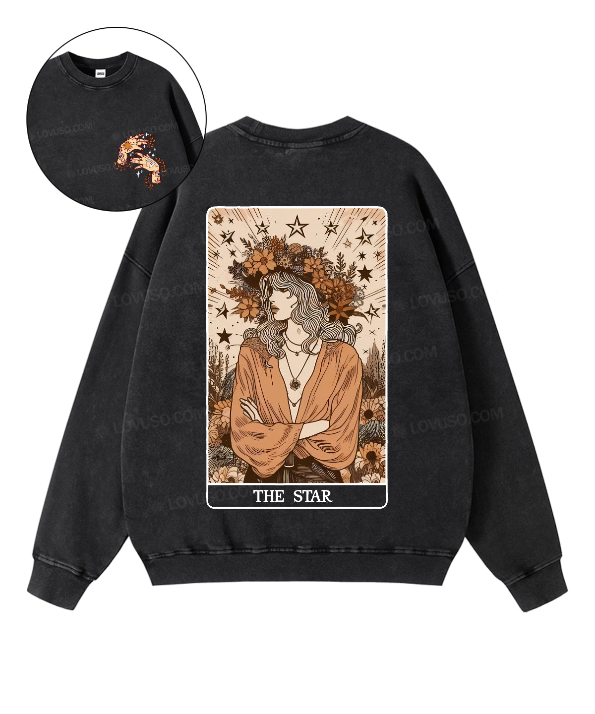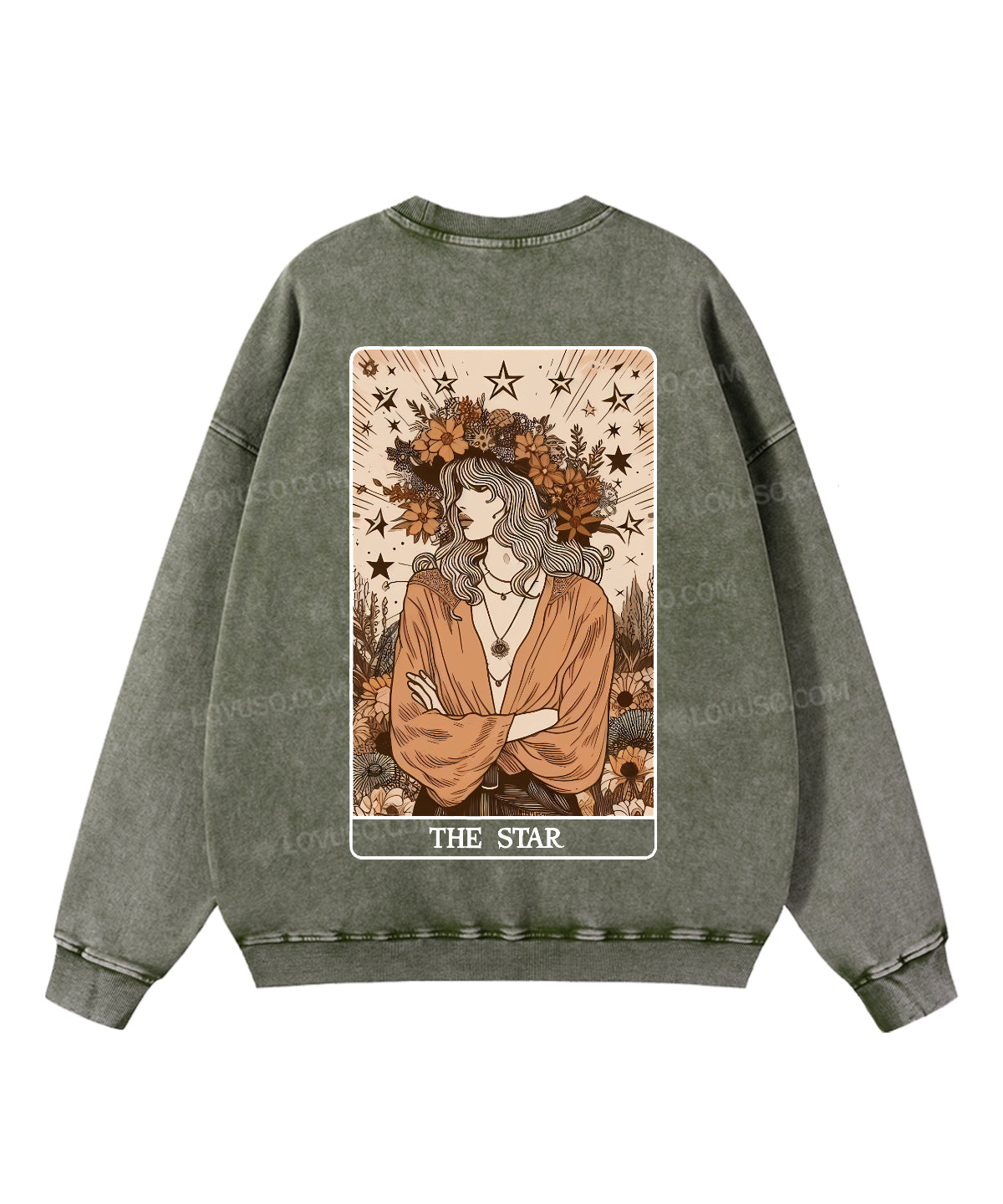 Retro Tarot Aesthetic The Star Double Sided Washed Sweatshirt