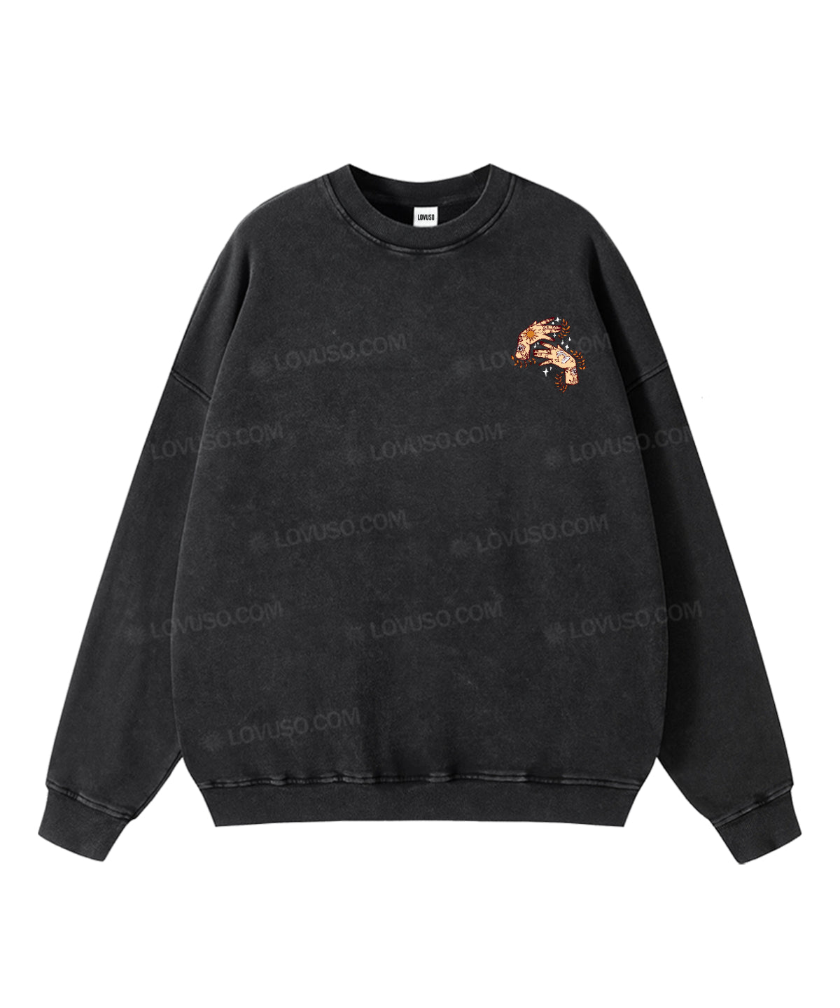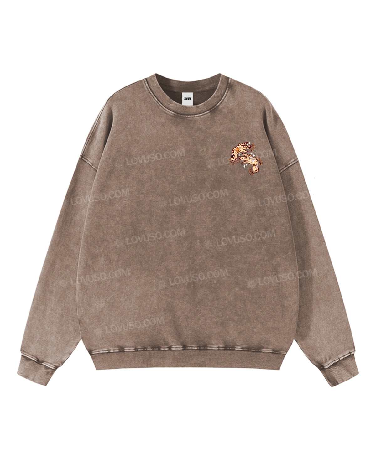 Washed for a naturally lived-in feel, this Lovuso crewneck sweatshirt carries the comfort of something familiar — soft, grounding, and quietly expressive. The classic crew neckline creates a calm inner space, offering a gentle sense of safety and ease, as if the world slows down when you slip it on. With its worn-in texture and relaxed silhouette, it’s designed for slow days, creative flow, and moments of returning to yourself.