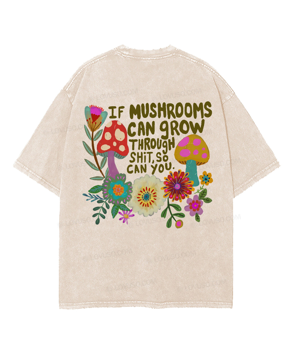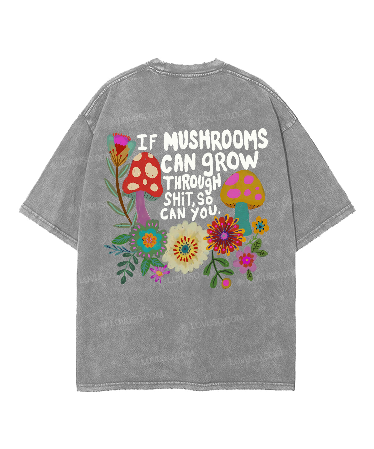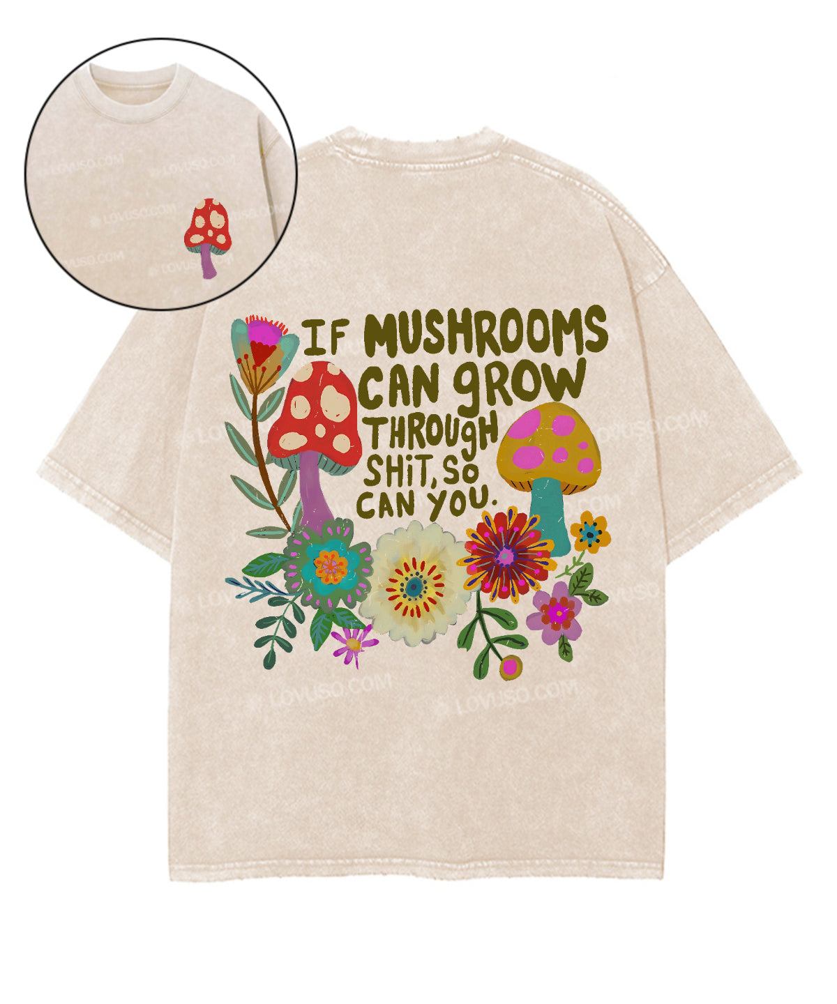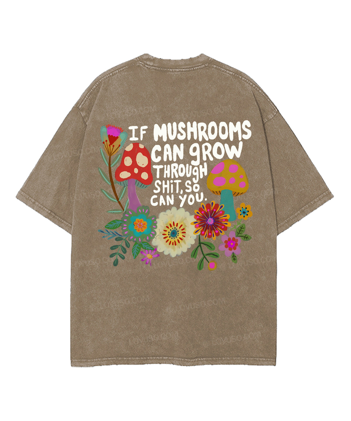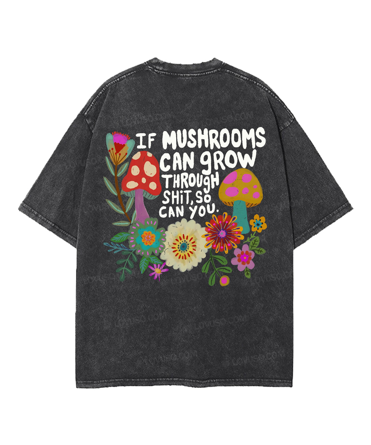 If Mushrooms Can Grow Through Shit So Can You Double Sided Washed T-shirt