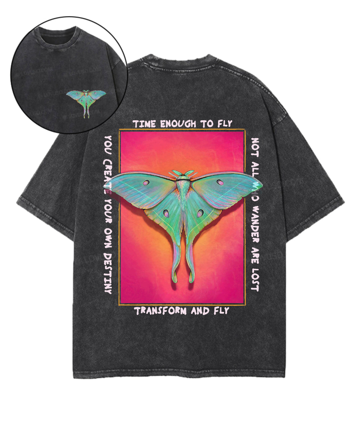 Mystic Moth Time Enough To Fly Double Sided Washed T-shirt