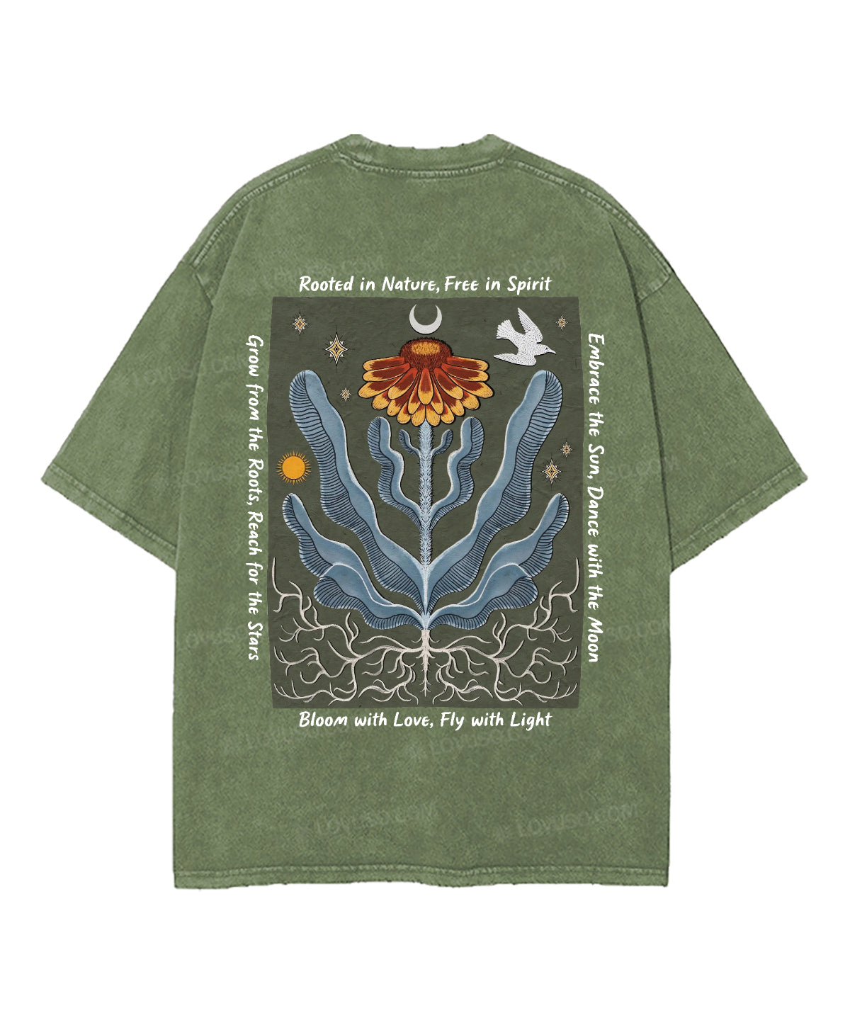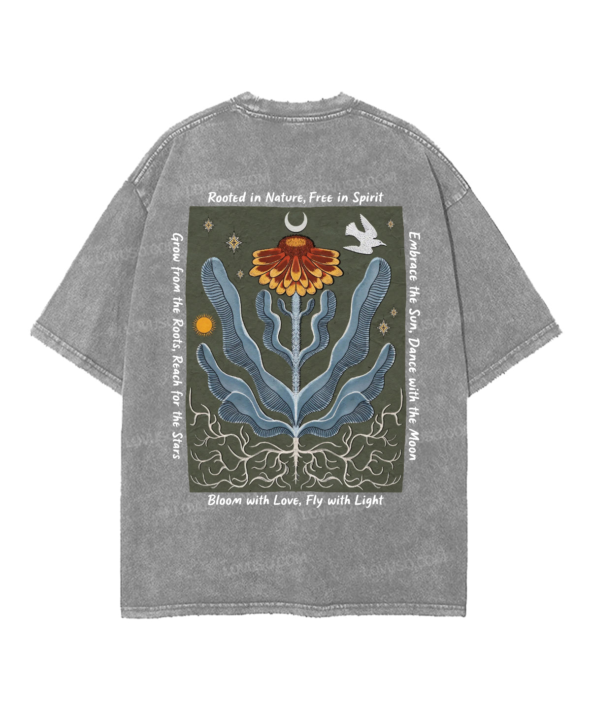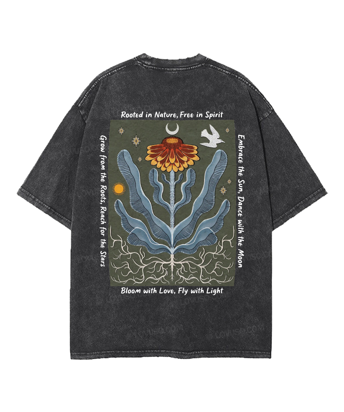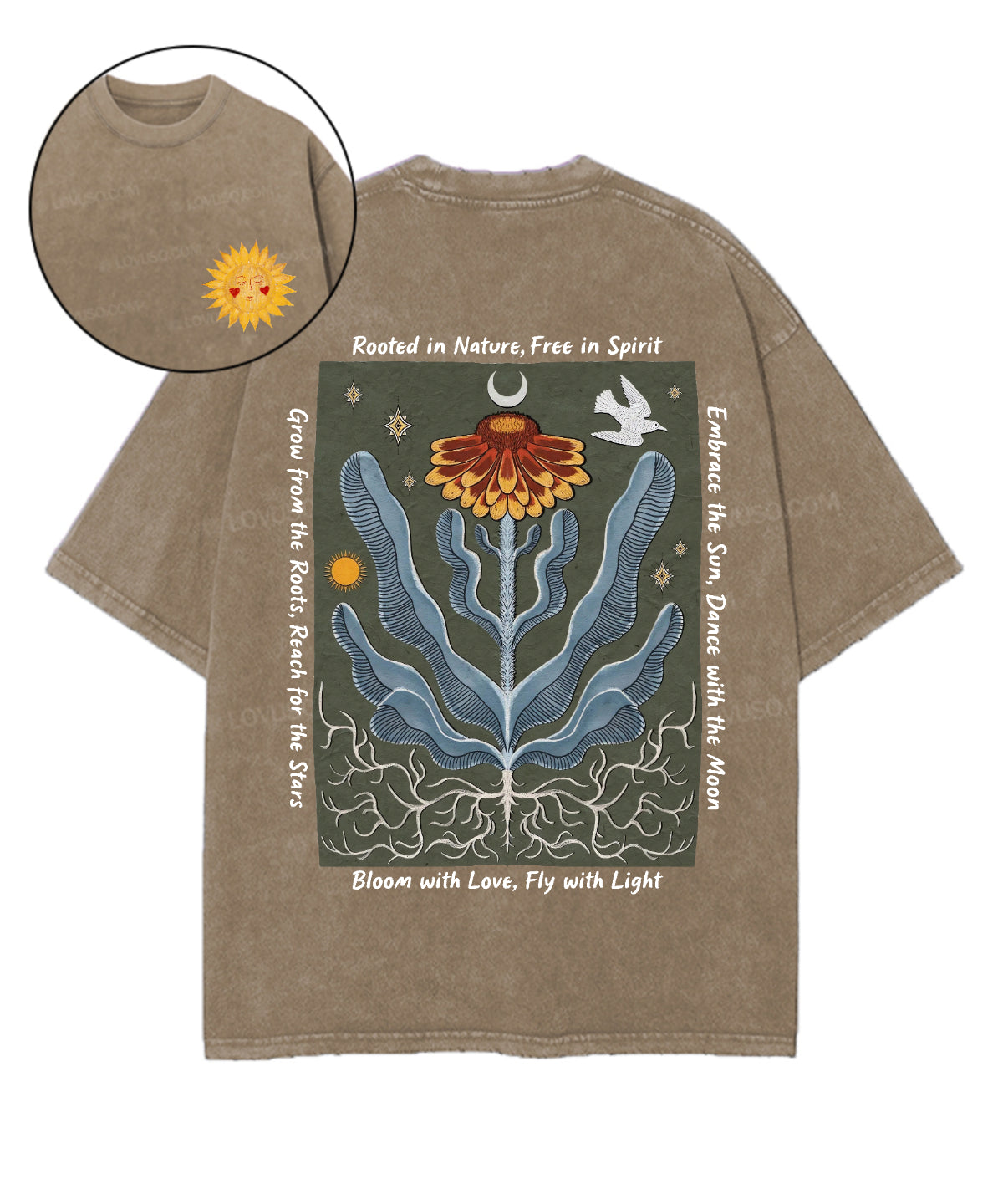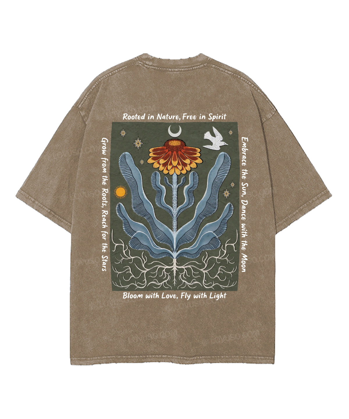 Retro Boho Rooted In Nature Free In Spirit Double Sided Washed T-shirt