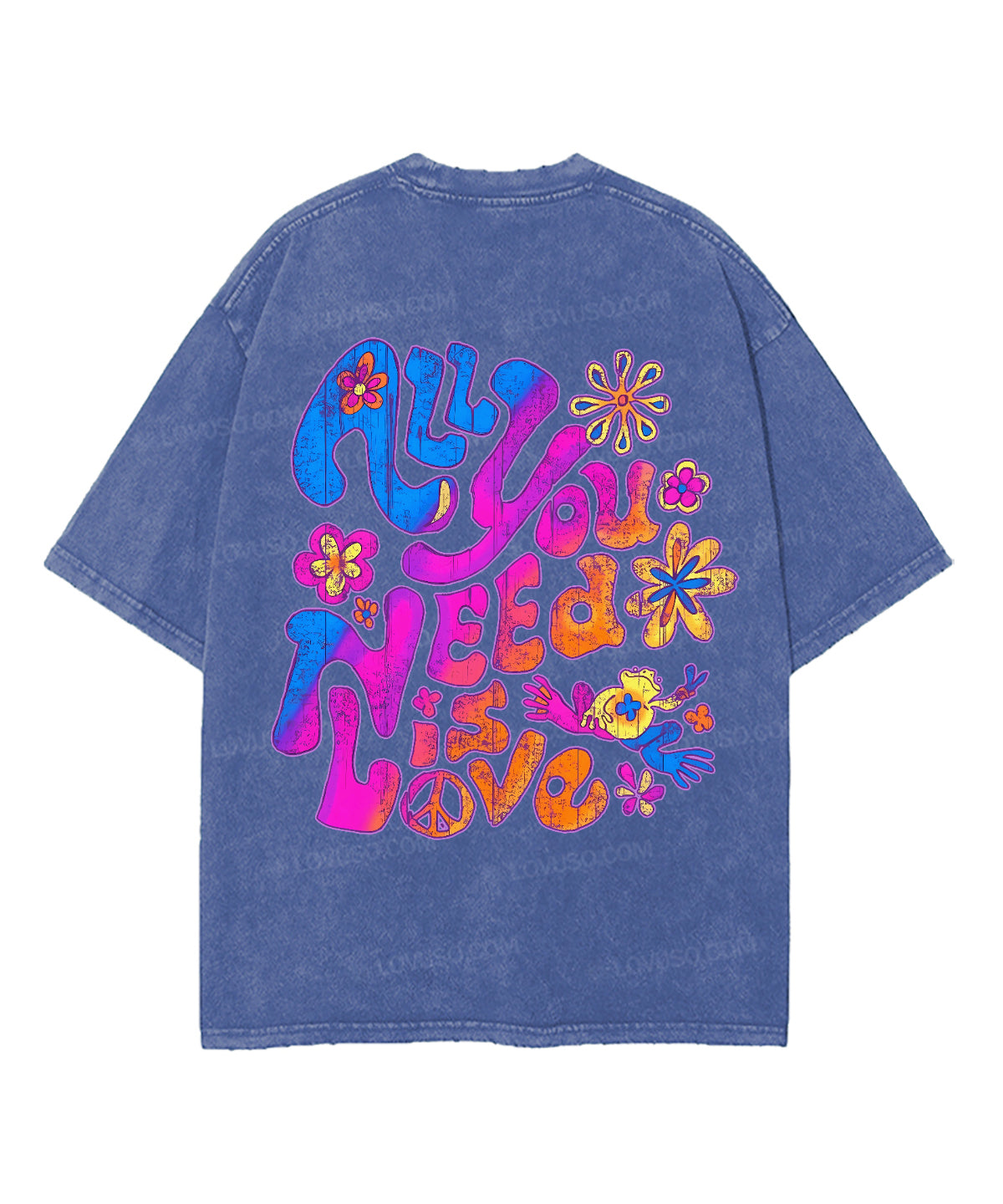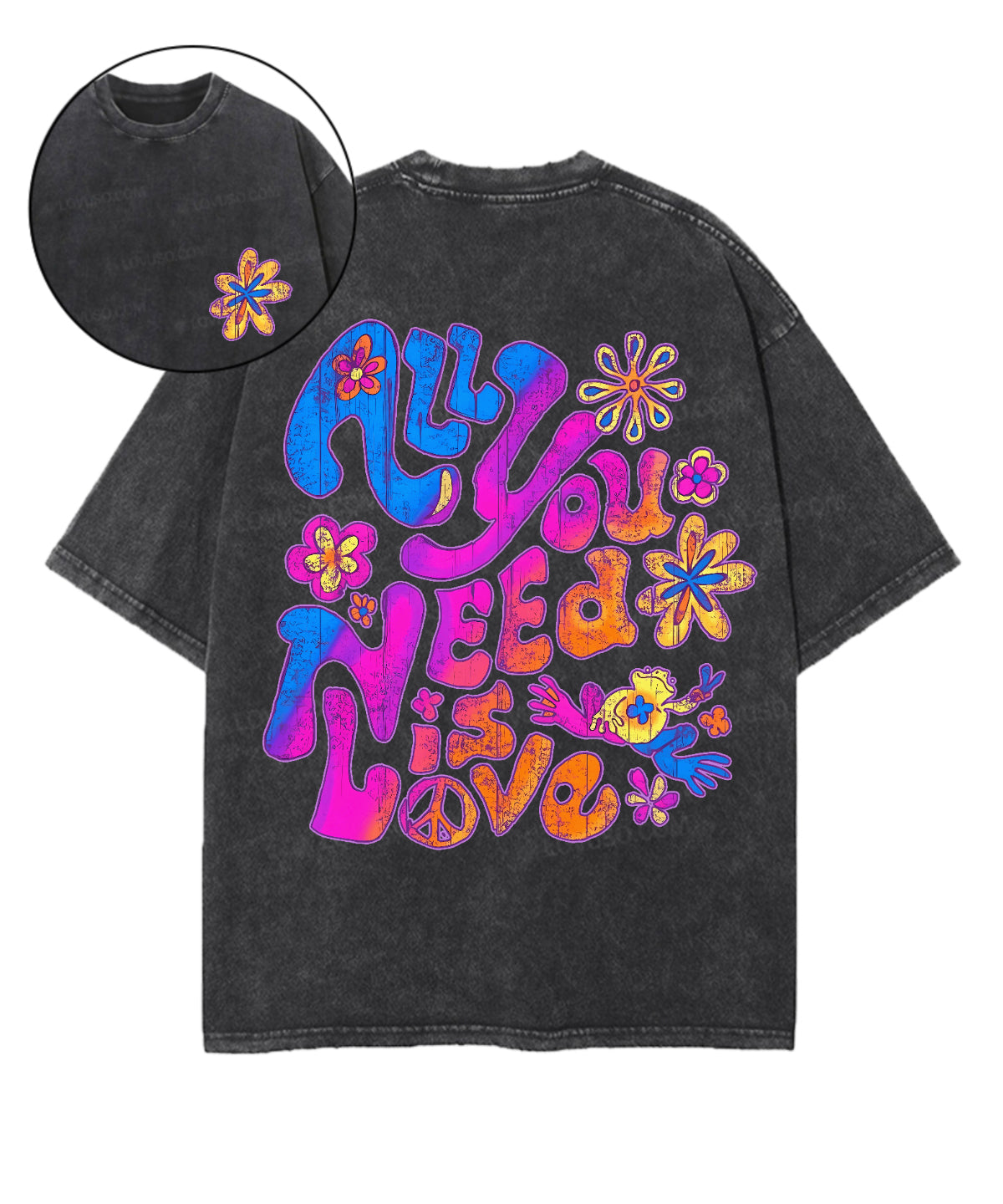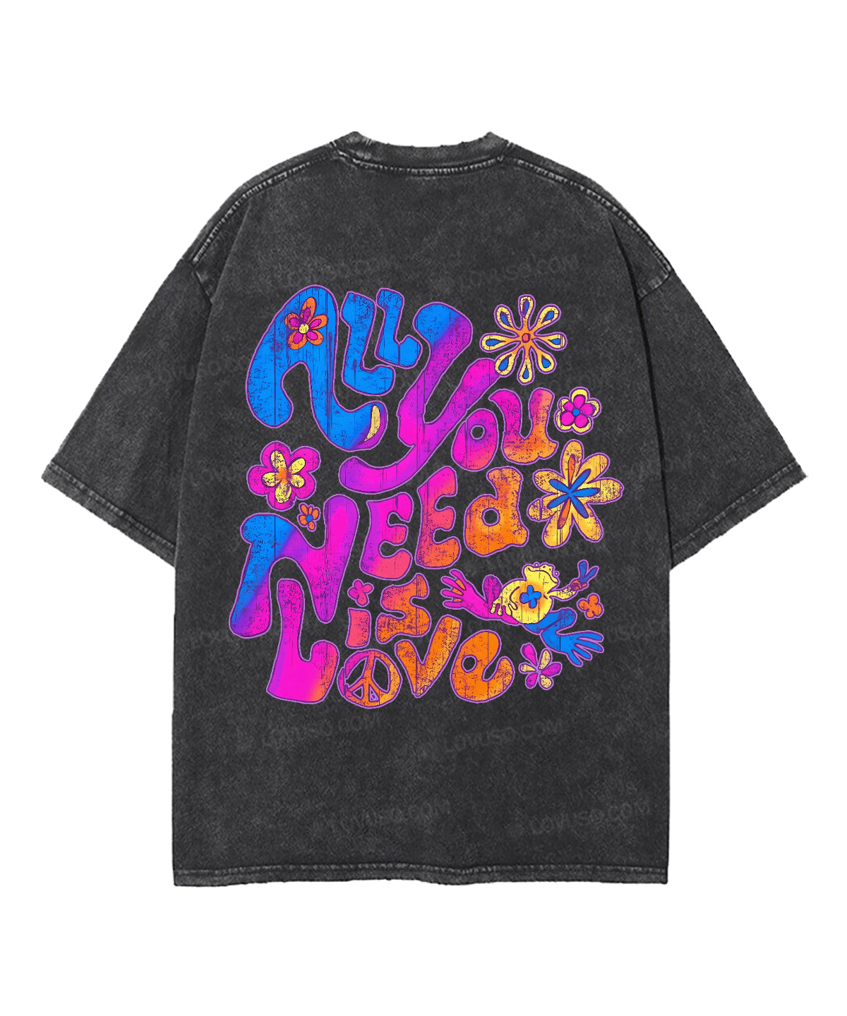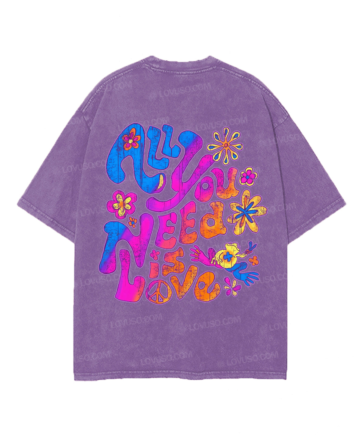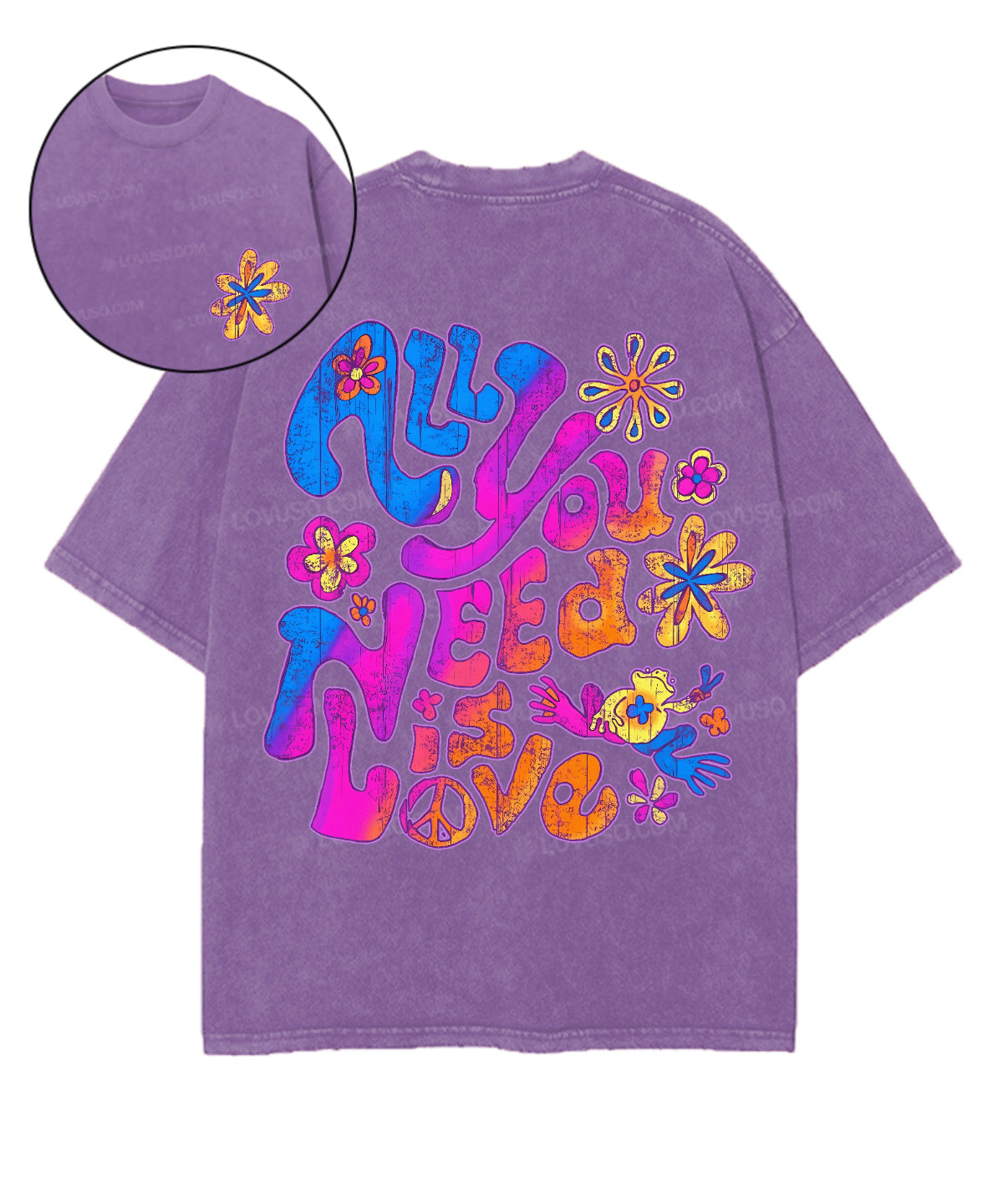 Retro Hippie All You Need Is Love Double Sided Washed T-shirt