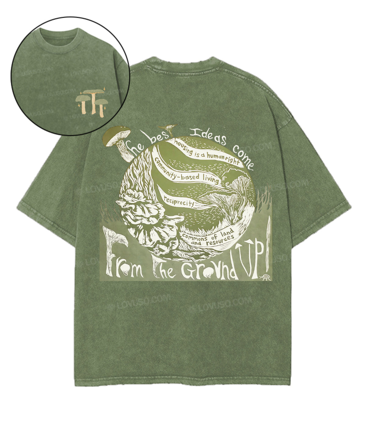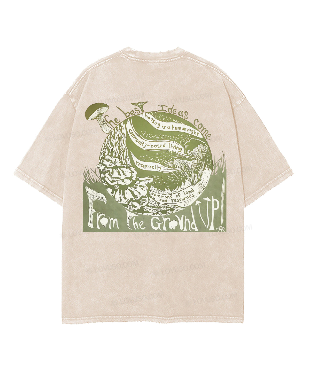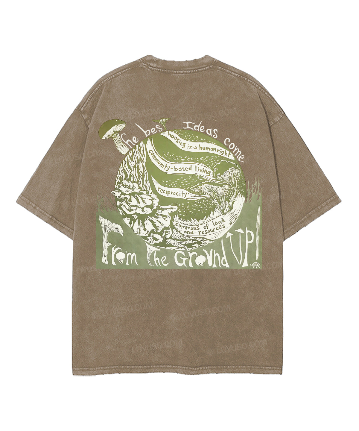 Retro Landscape Mushroon Double Sided Washed T-shirt