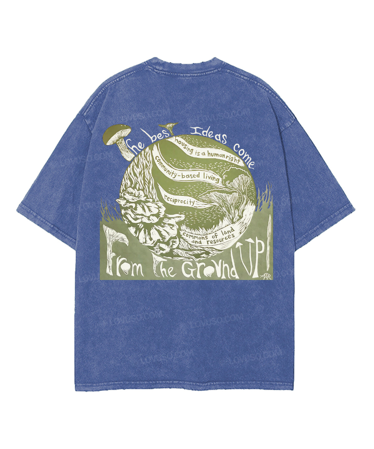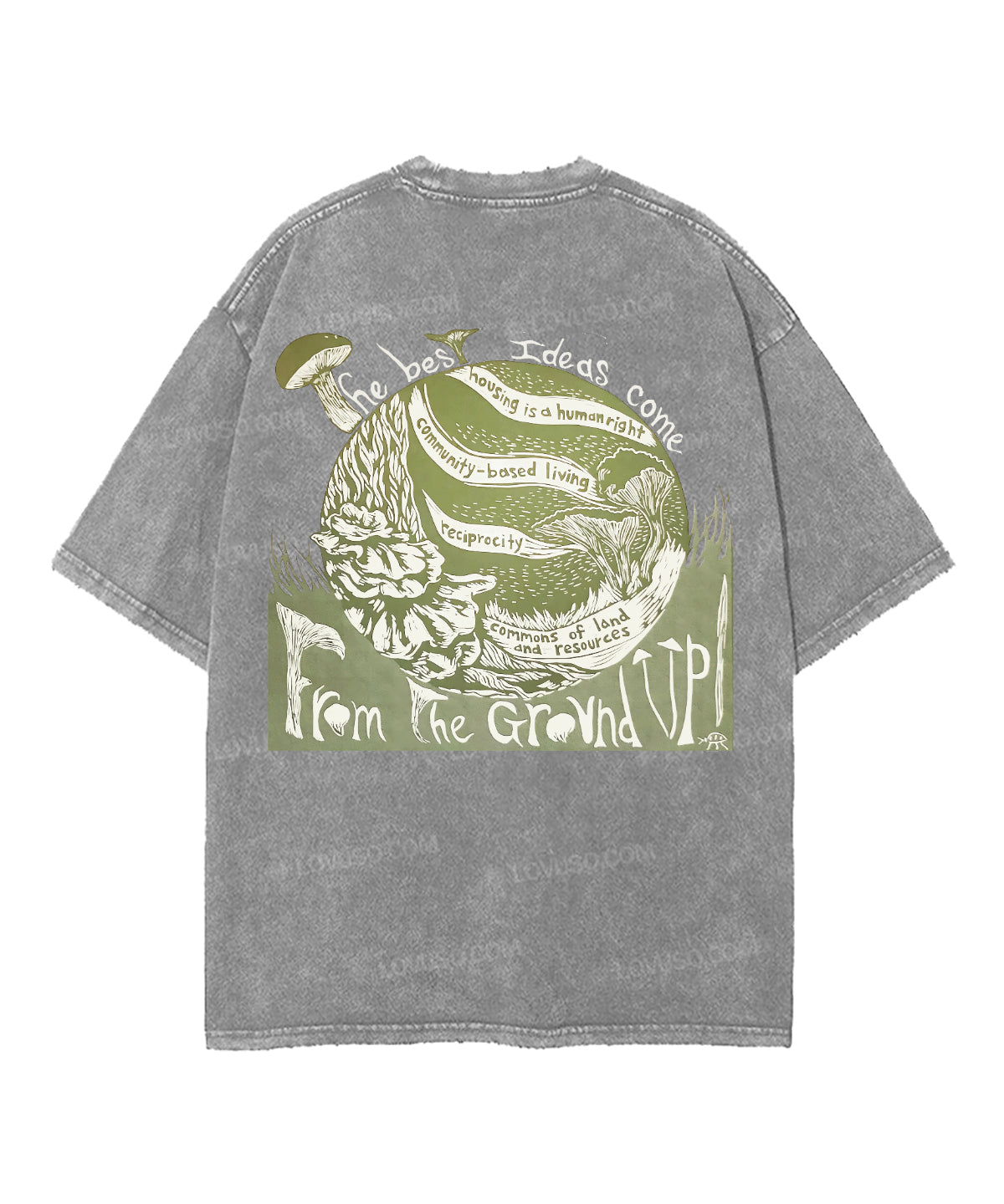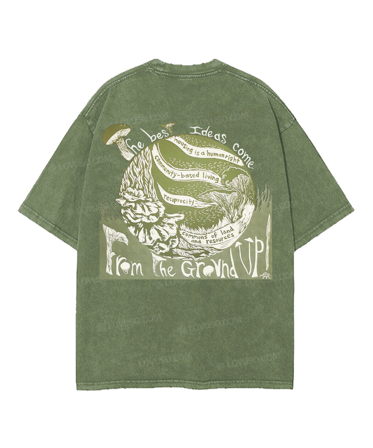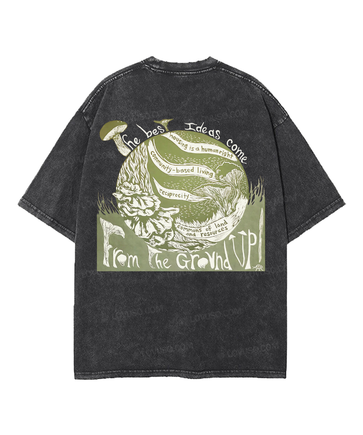 Retro Landscape Mushroon Double Sided Washed T-shirt