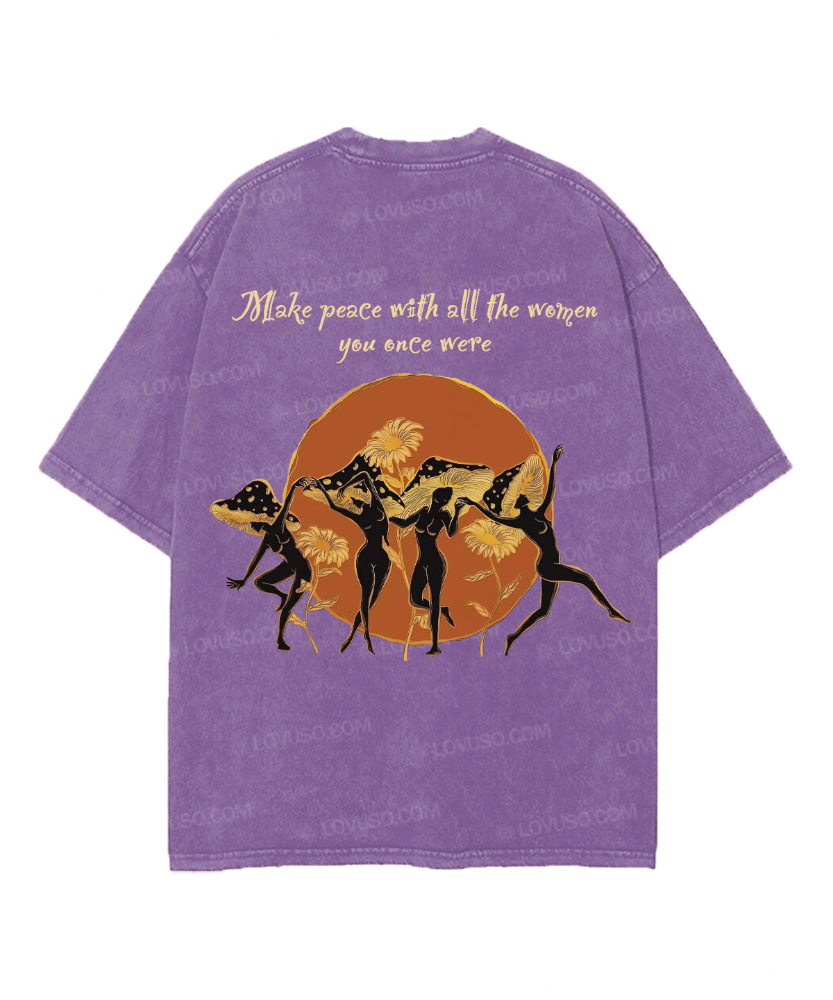 Funny Mushroom Dance Women Double Sided Washed T-shirt