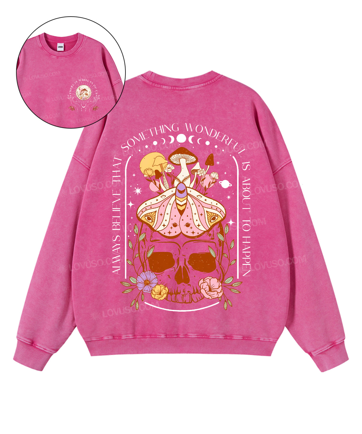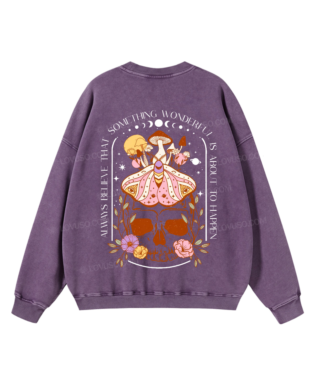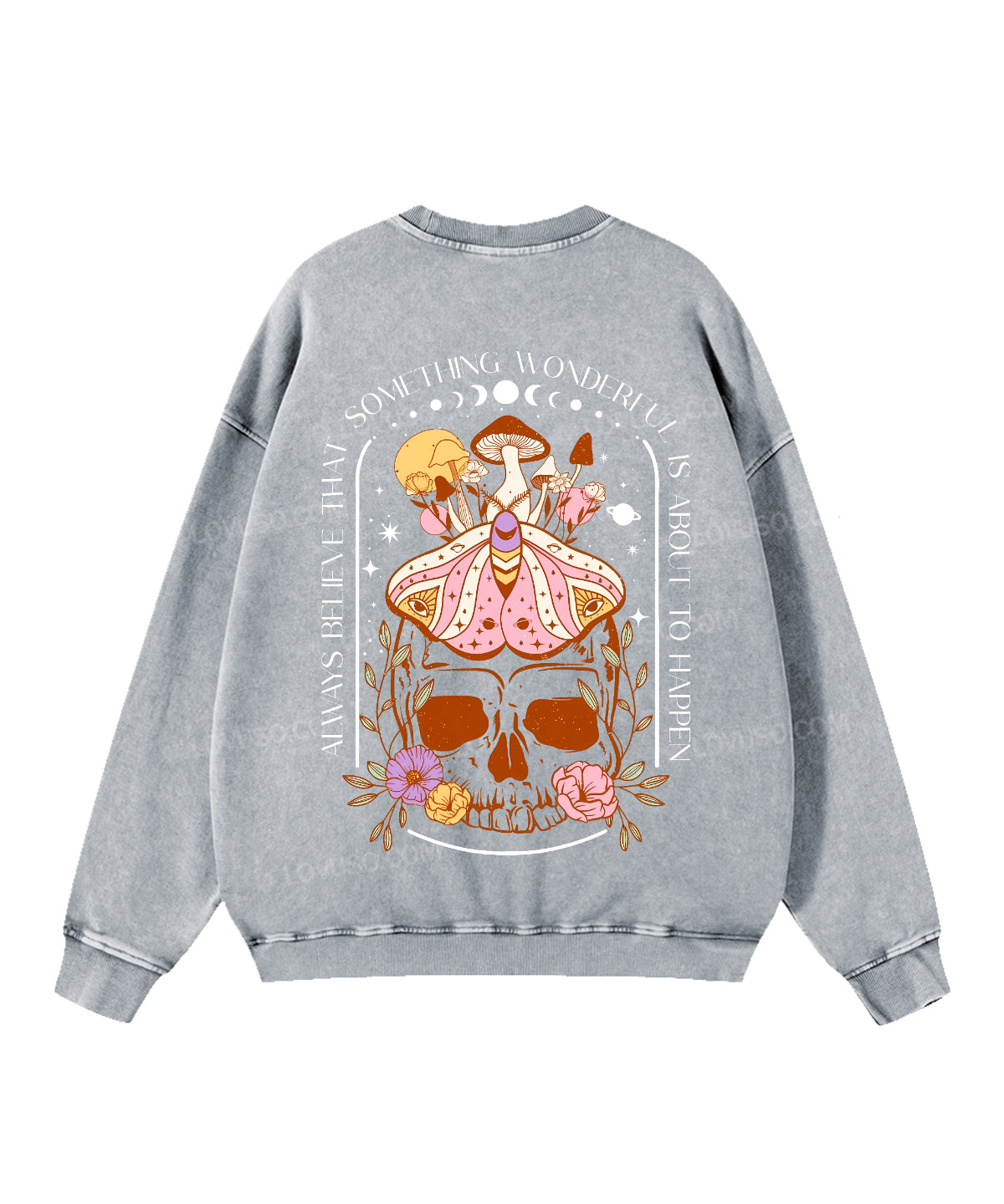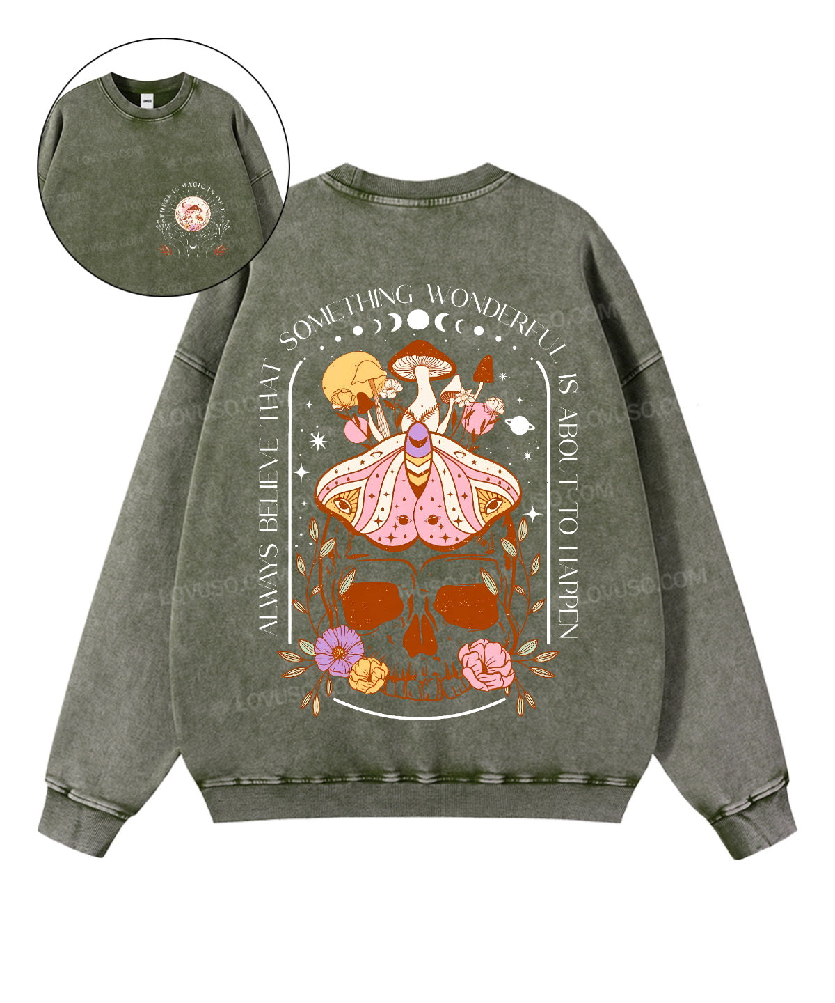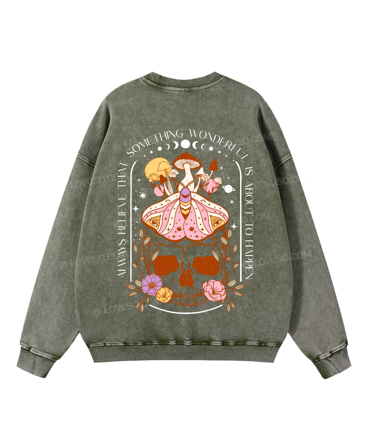 Mysic Always Believe That Something Wonderful Double Sided Washed Sweatshirt