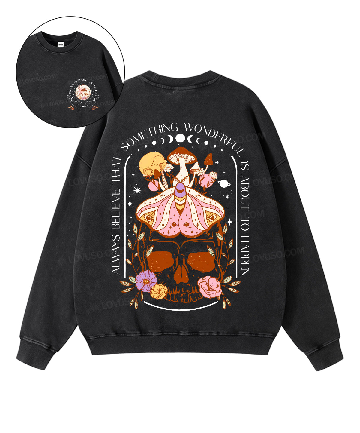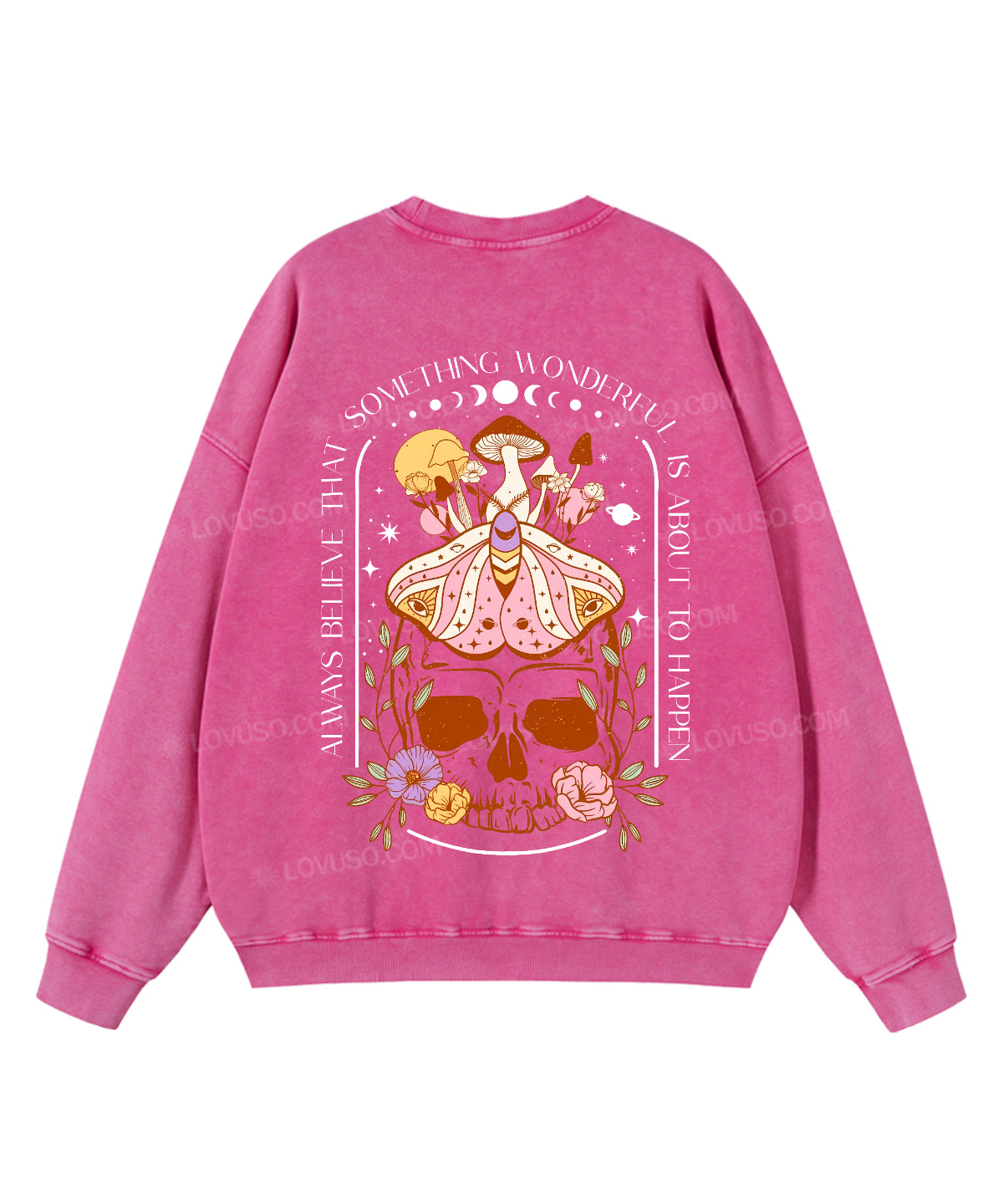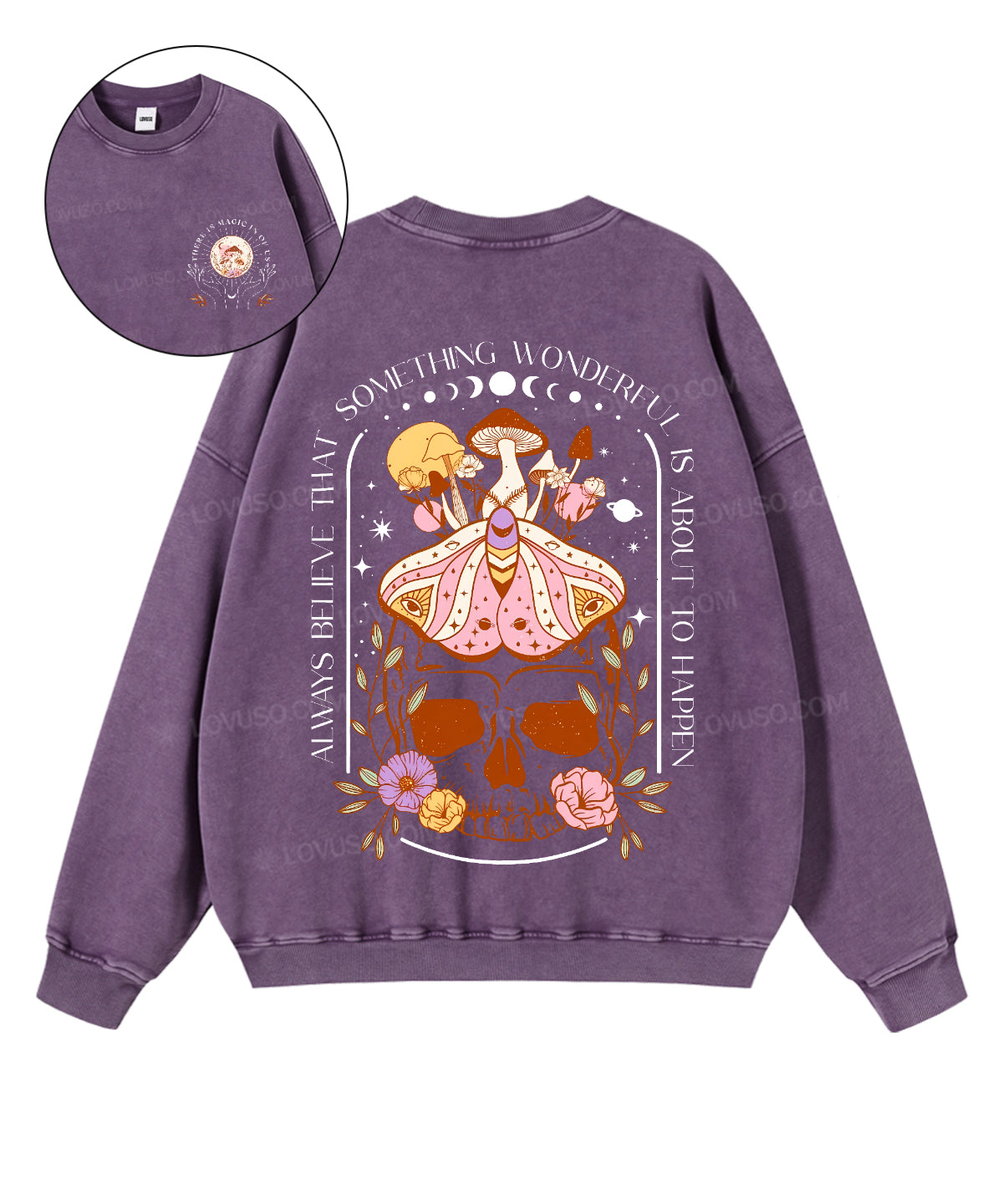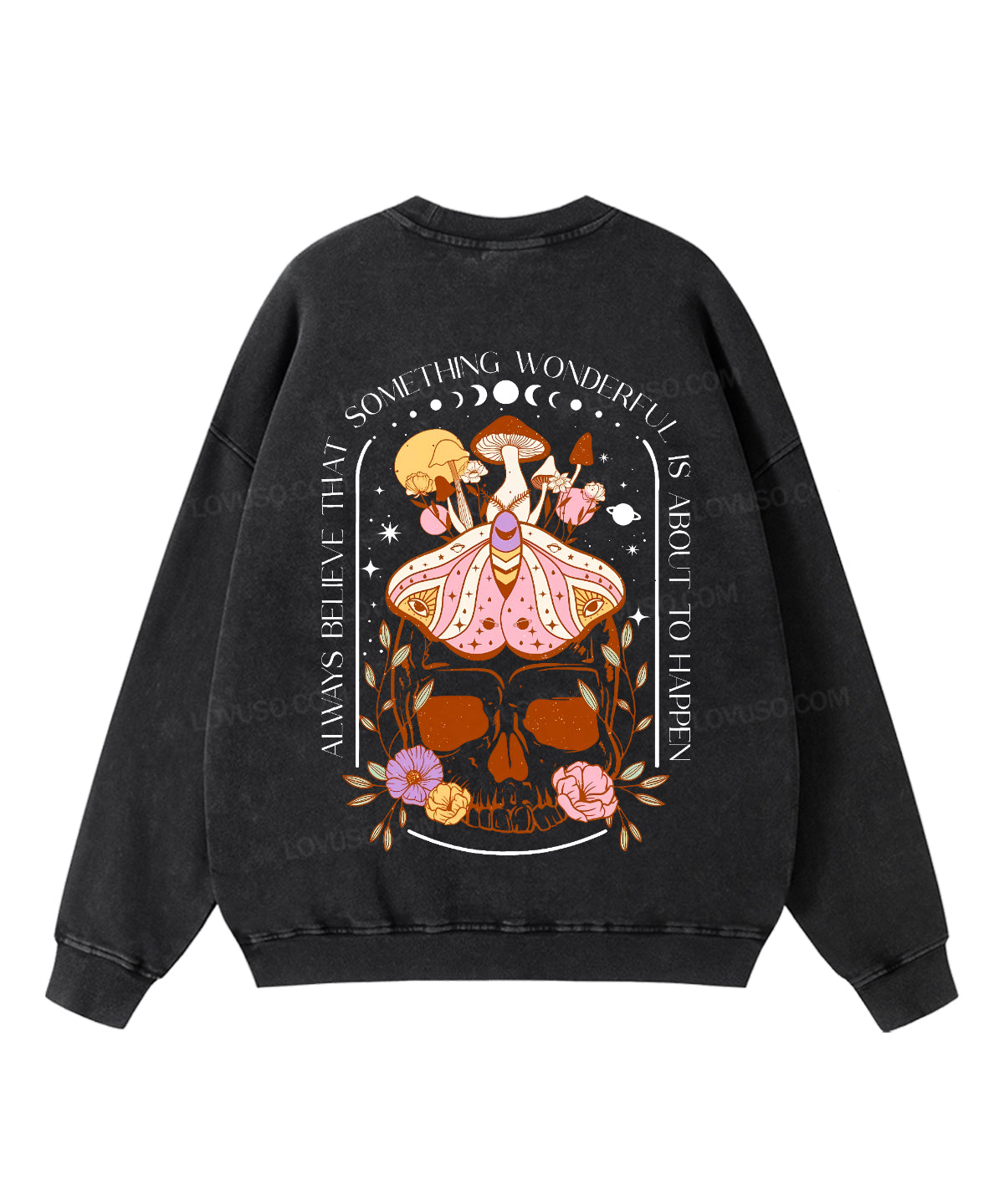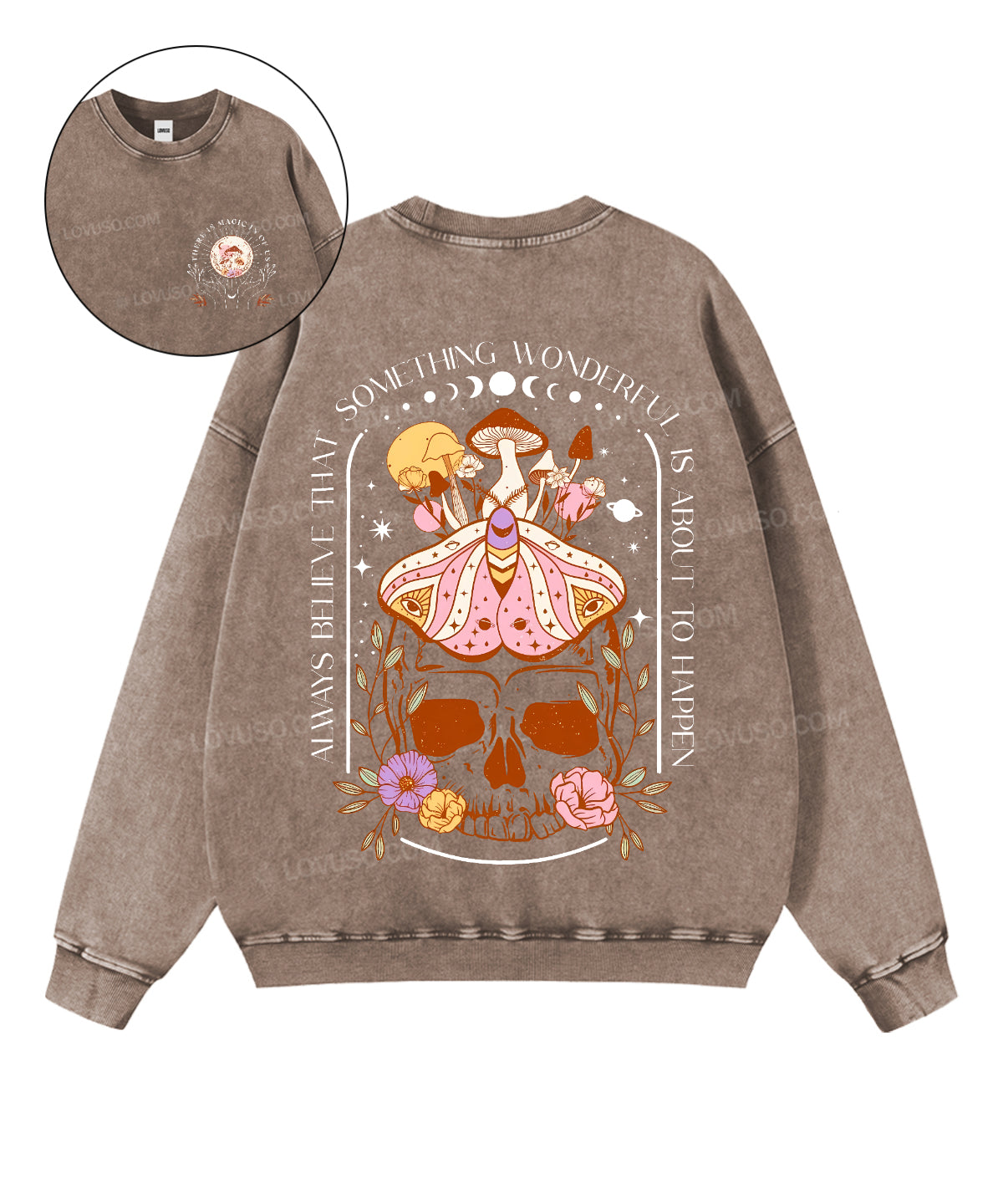 Mysic Always Believe That Something Wonderful Double Sided Washed Sweatshirt