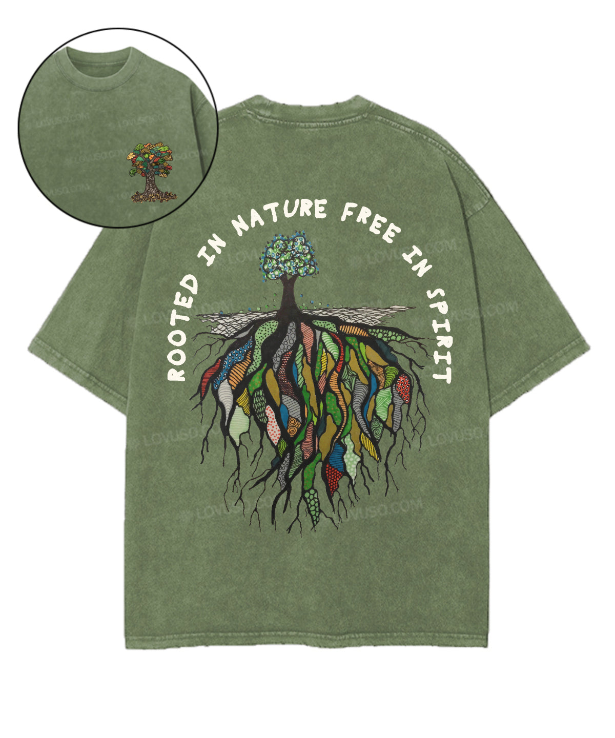 Mystic Rooted In Nature Free In Spirit Double Sided Washed T-shirt