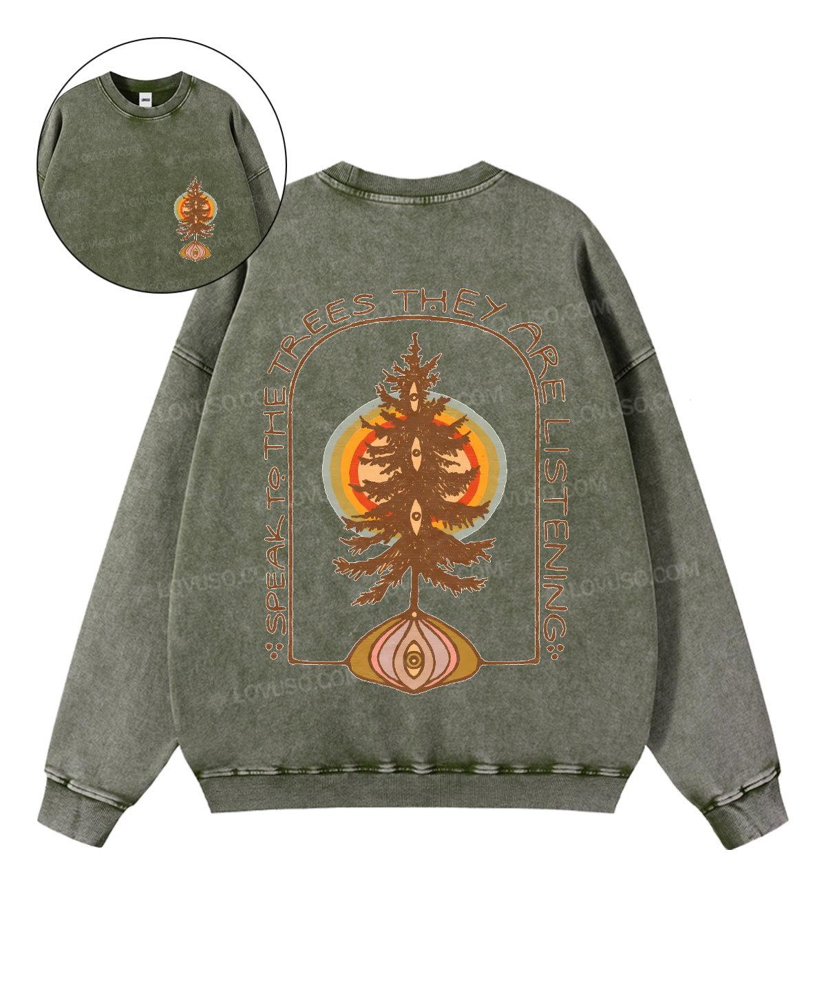 Mystic Speak To The Trees Double Sided Washed Sweatshirt