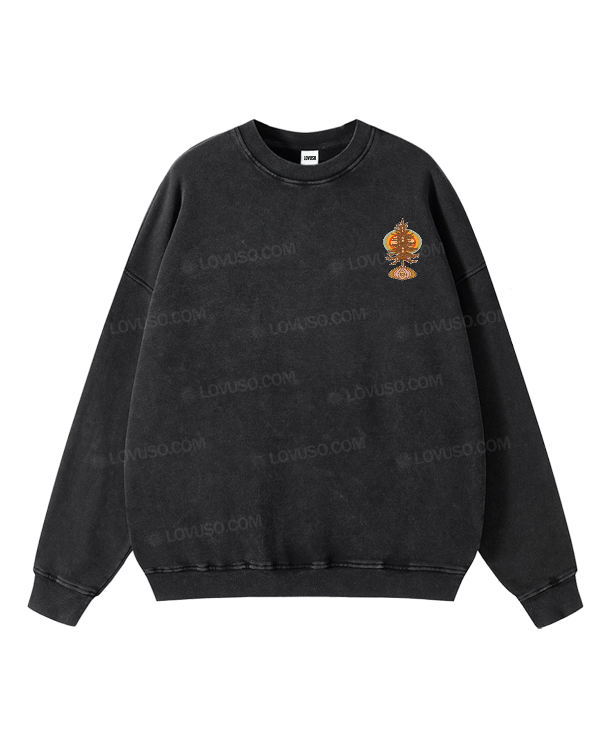 Washed for a naturally lived-in feel, this Lovuso crewneck sweatshirt carries the comfort of something familiar — soft, grounding, and quietly expressive. The classic crew neckline creates a calm inner space, offering a gentle sense of safety and ease, as if the world slows down when you slip it on. With its worn-in texture and relaxed silhouette, it’s designed for slow days, creative flow, and moments of returning to yourself.