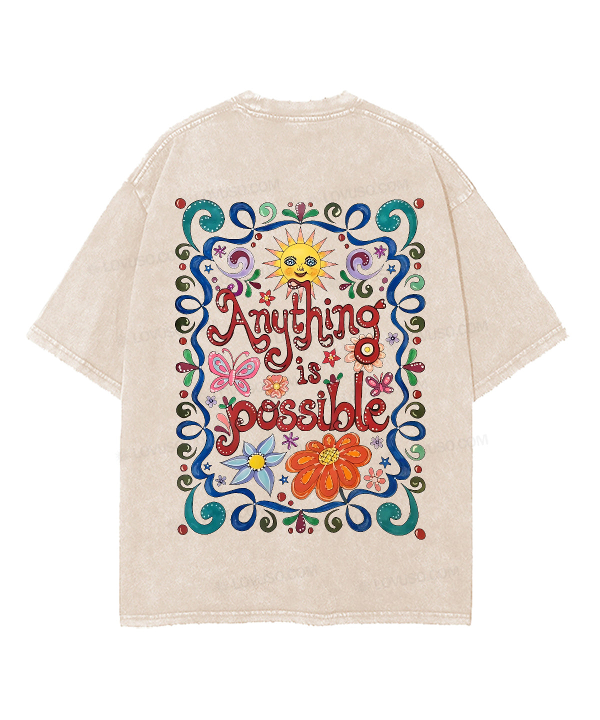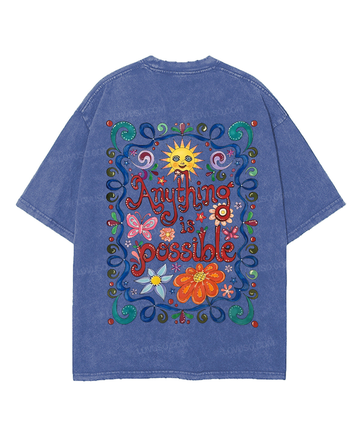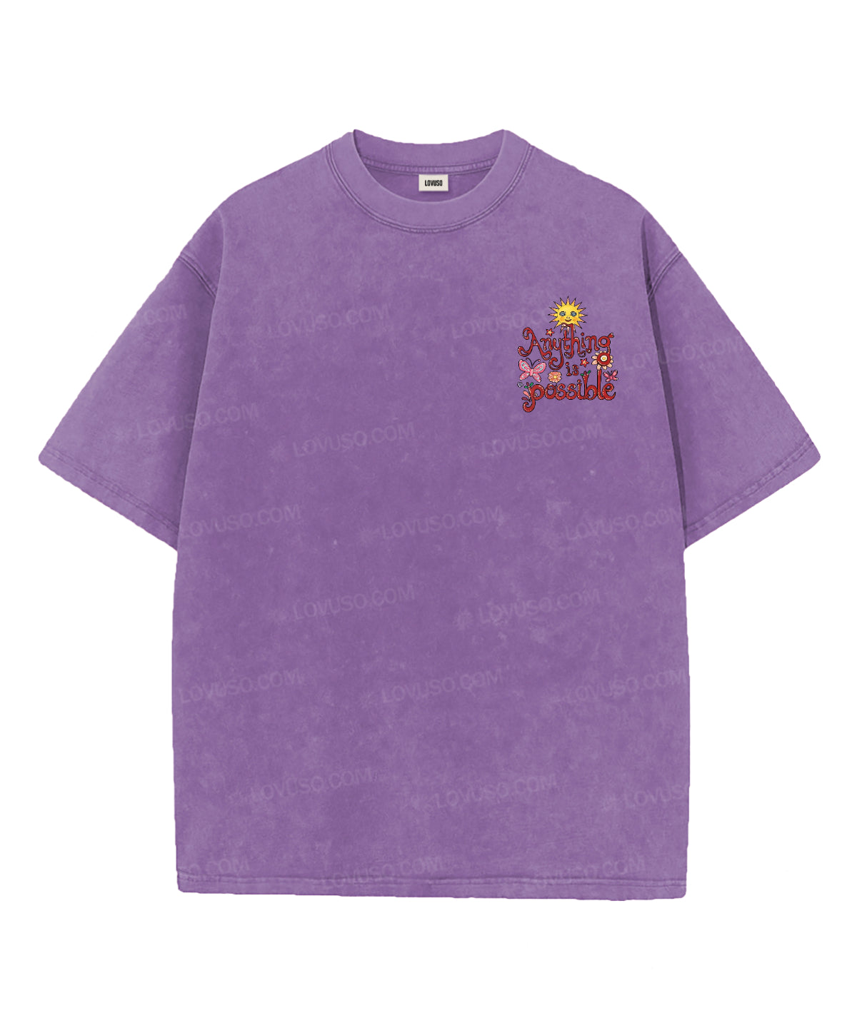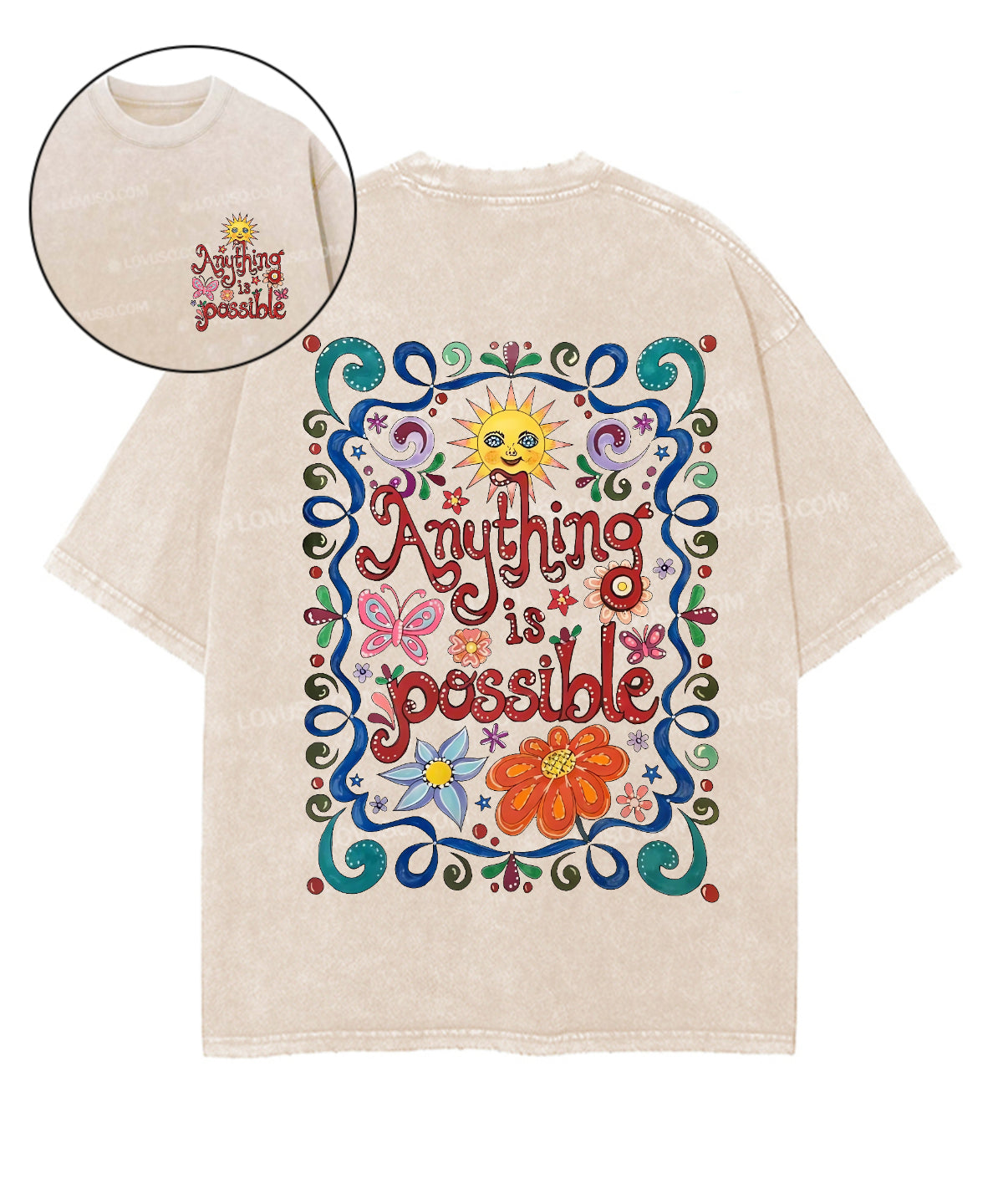 Retro Hippie Anything Is Possible Double Sided Washed T-shirt
