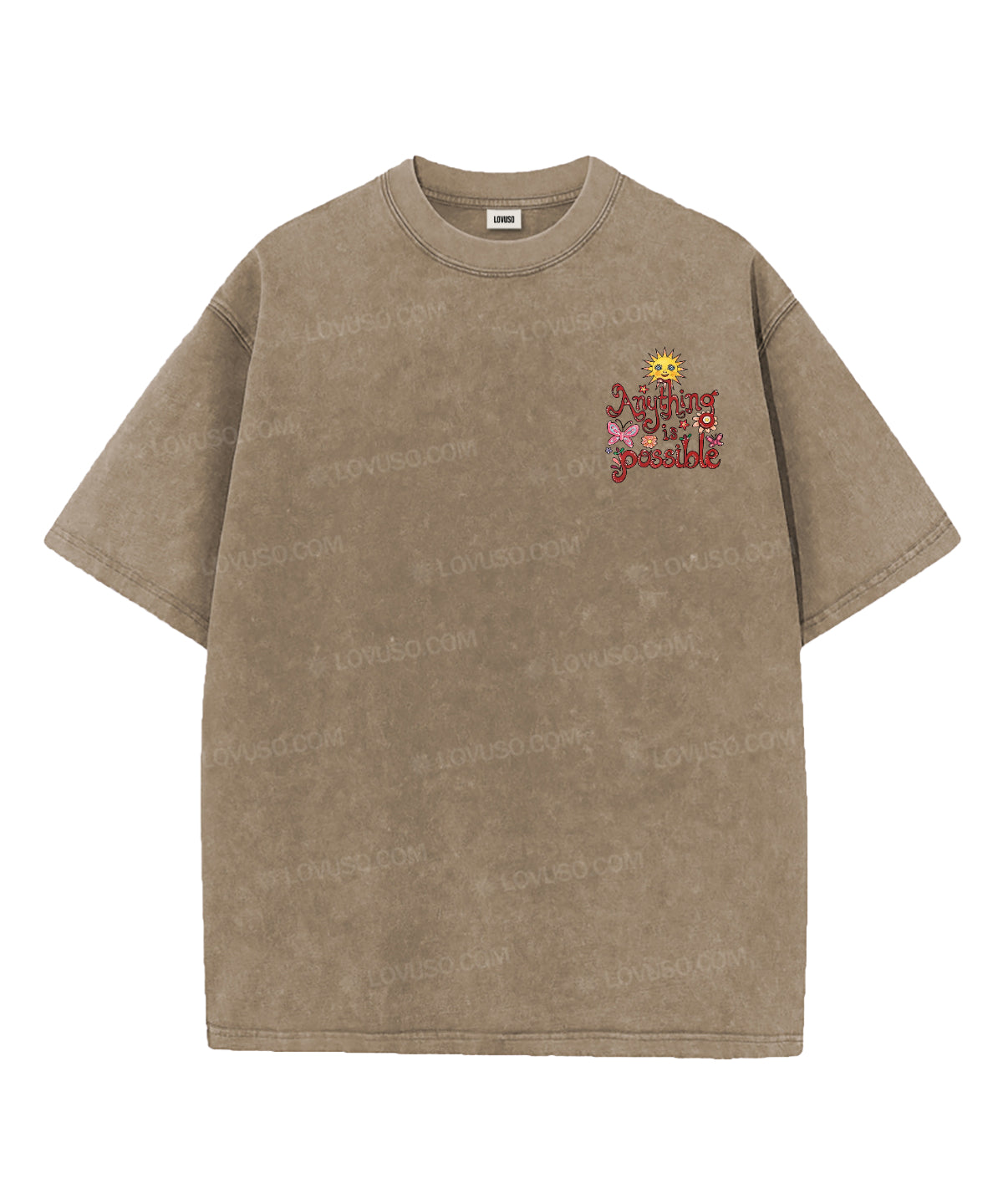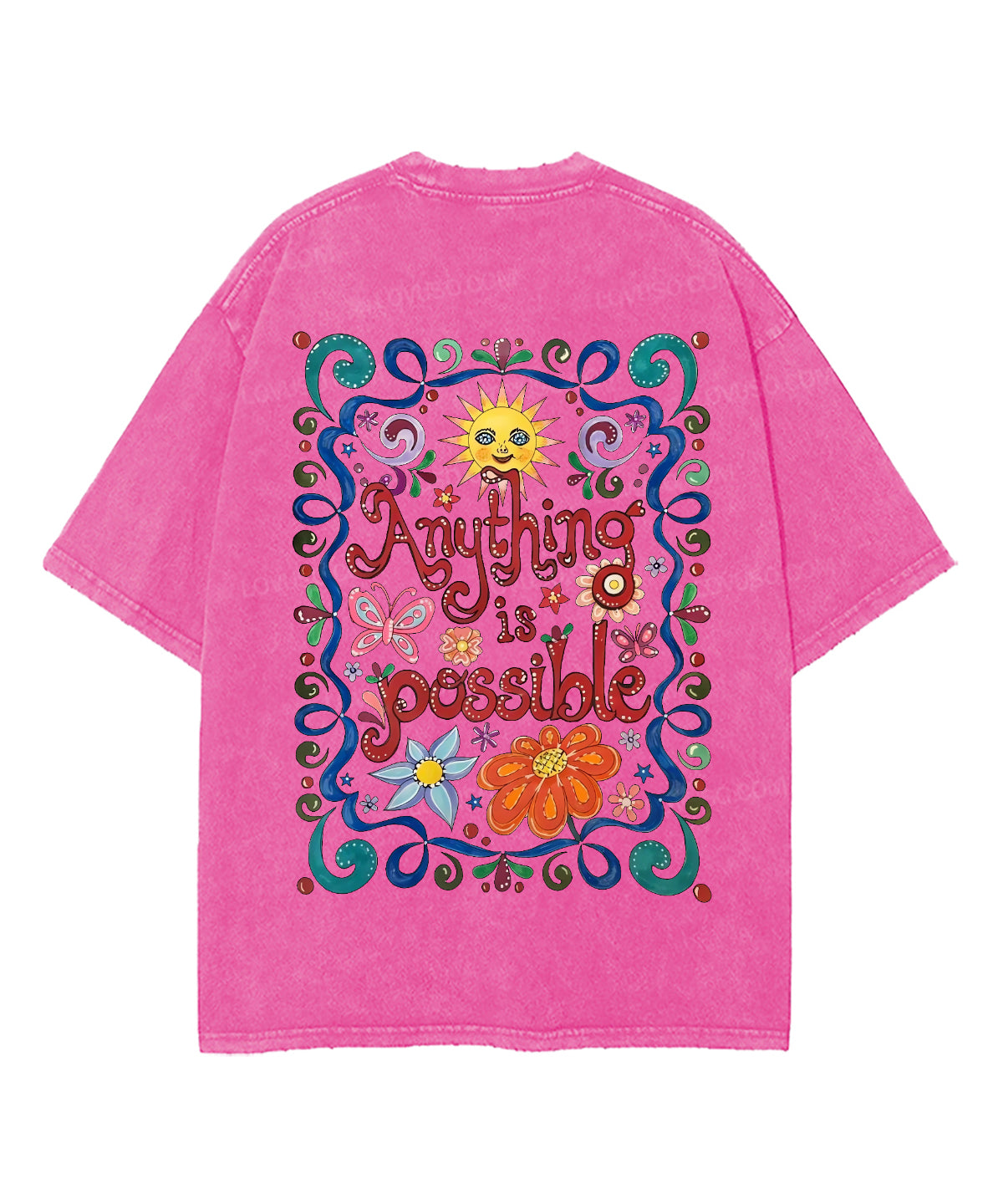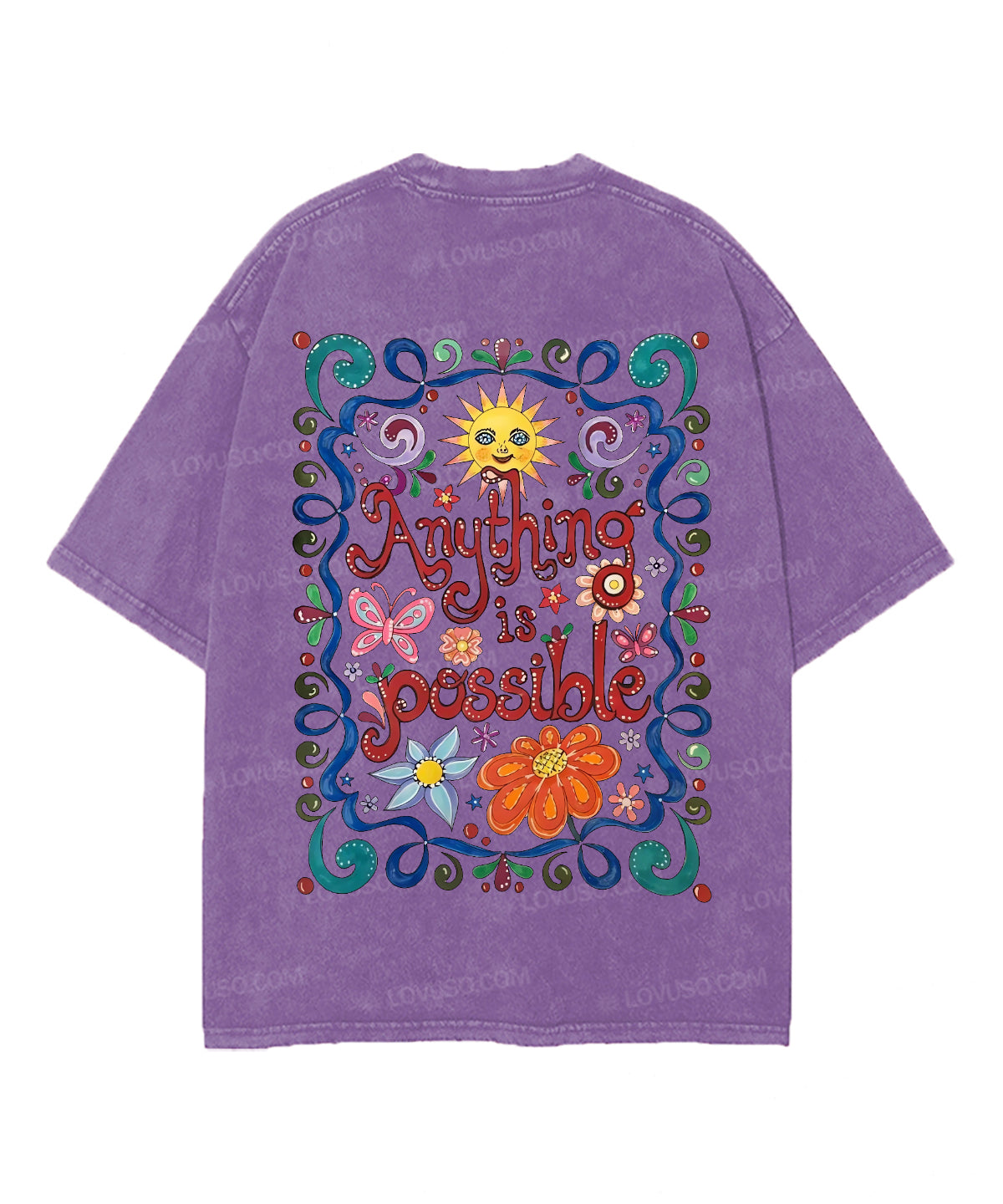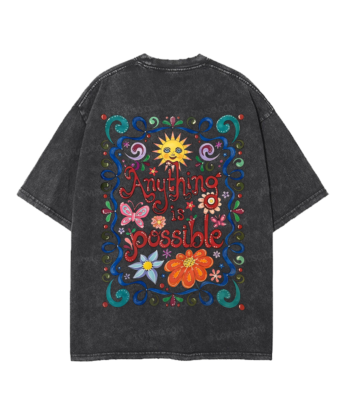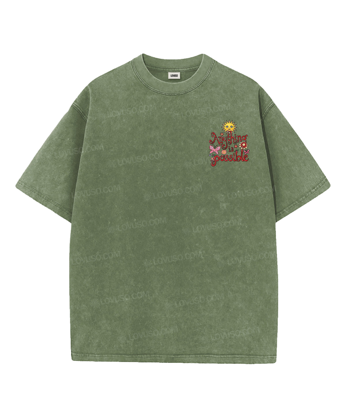Retro Hippie Anything Is Possible Double Sided Washed T-shirt