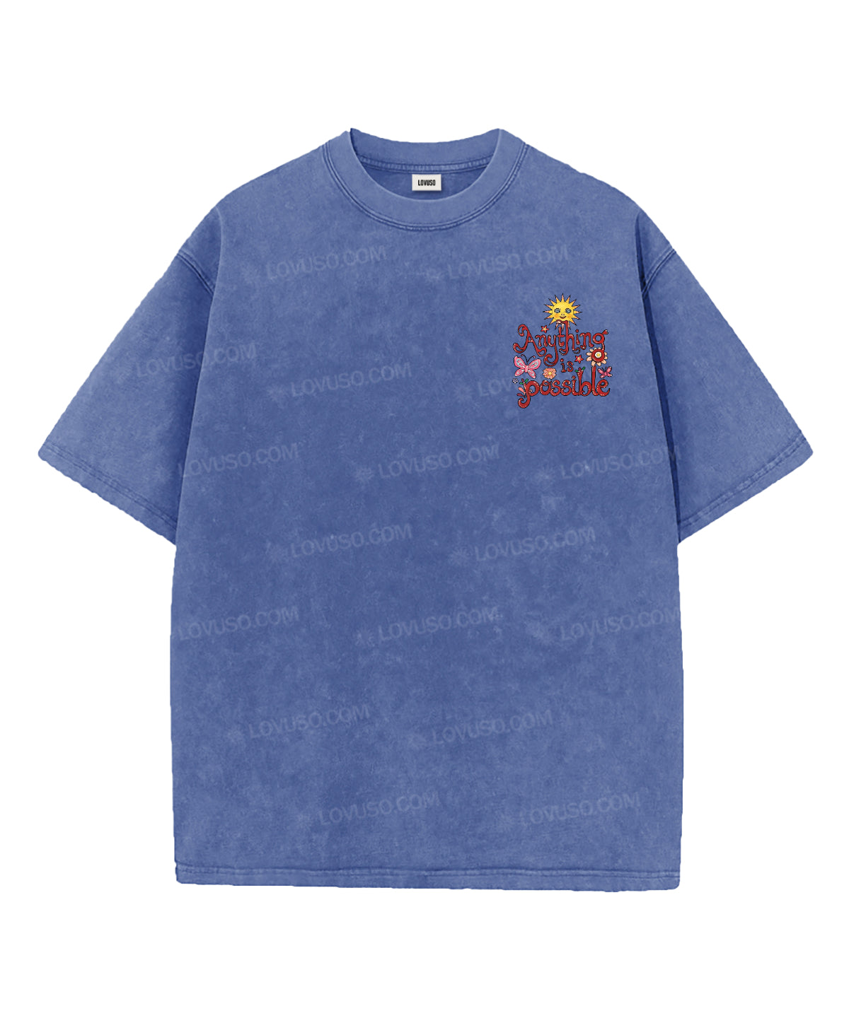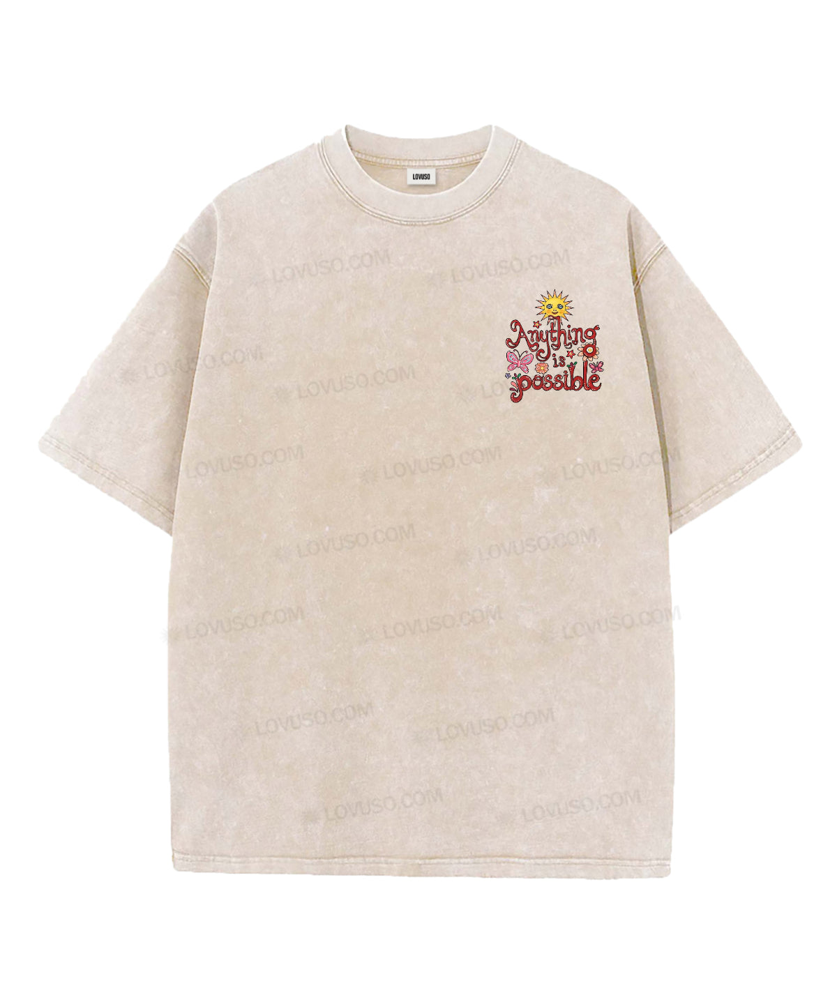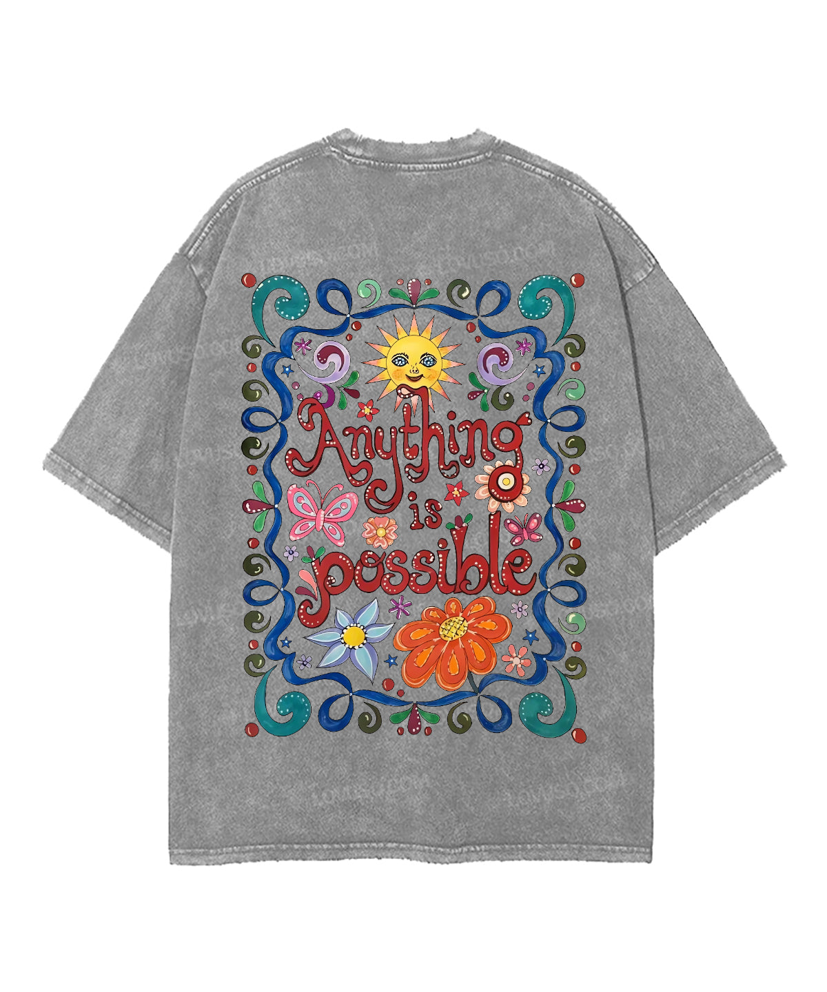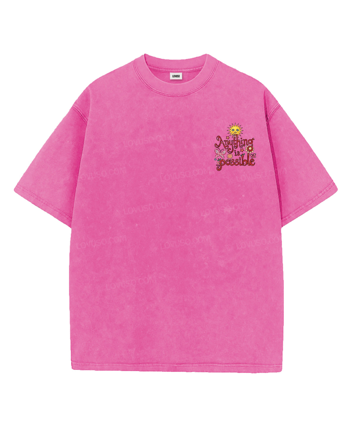 Retro Hippie Anything Is Possible Double Sided Washed T-shirt