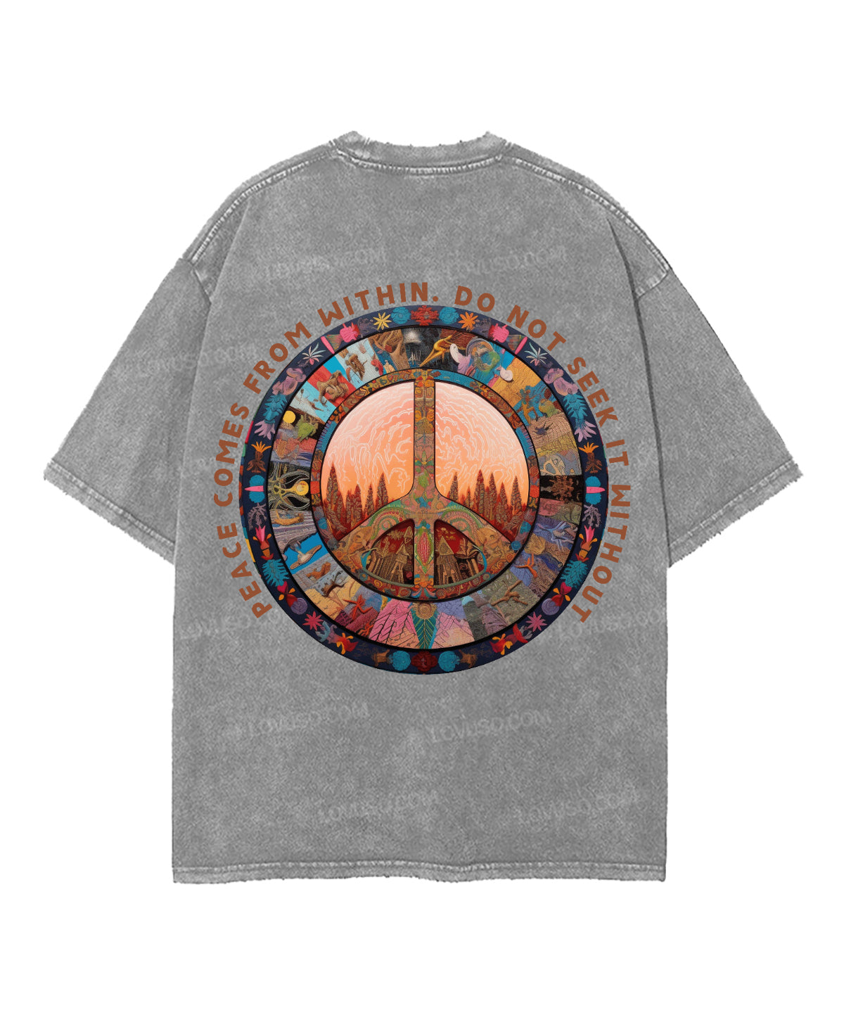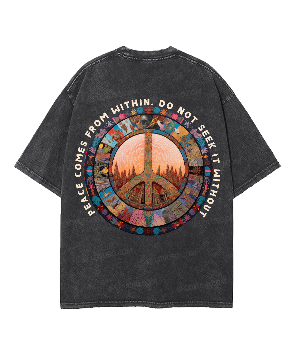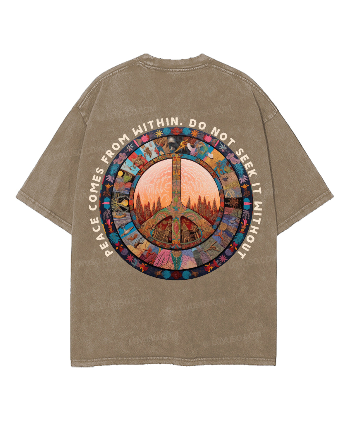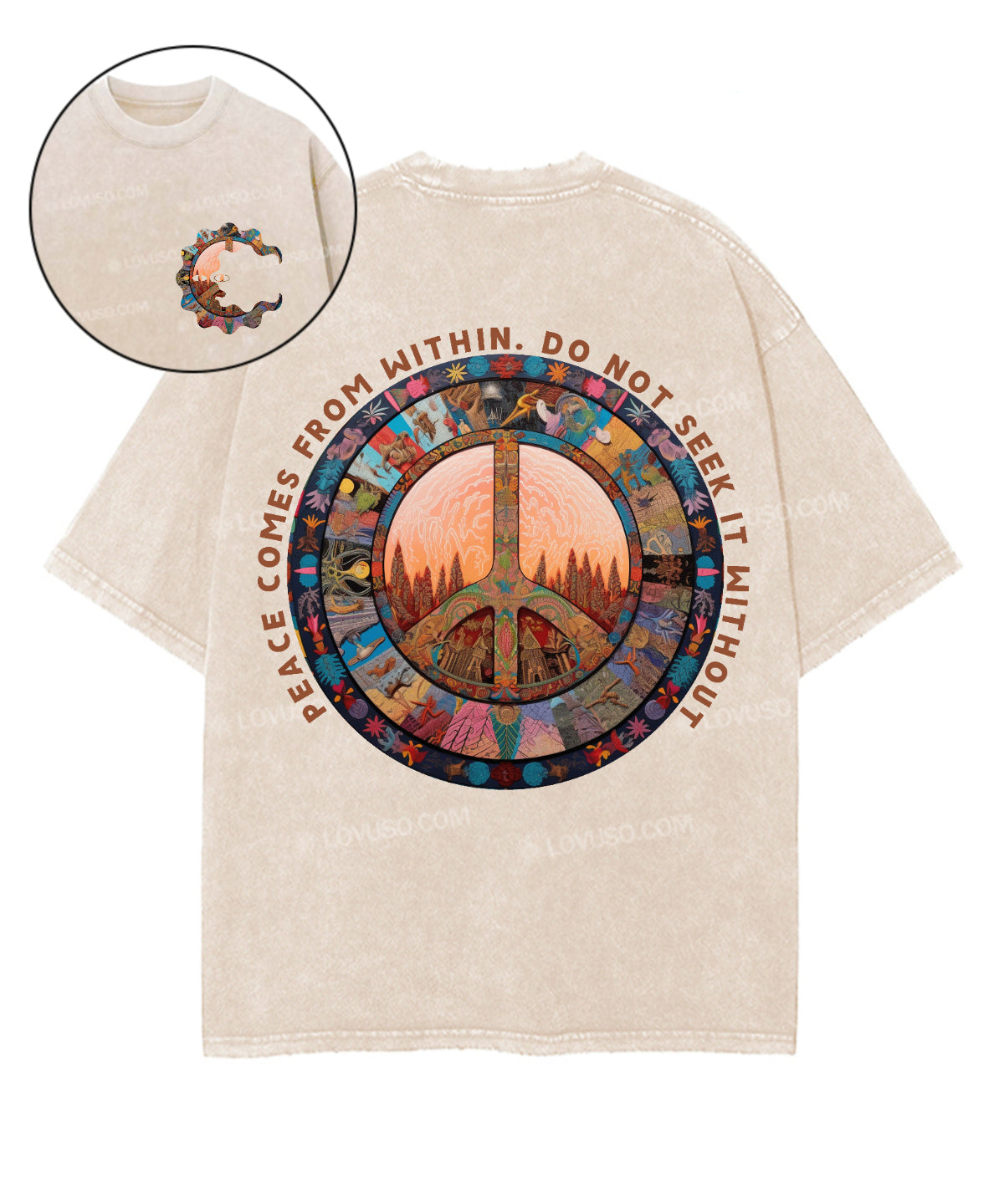 Retro Hippie Peace Comes From Within Do Not Seek It Without Double Sided Washed T-shirt