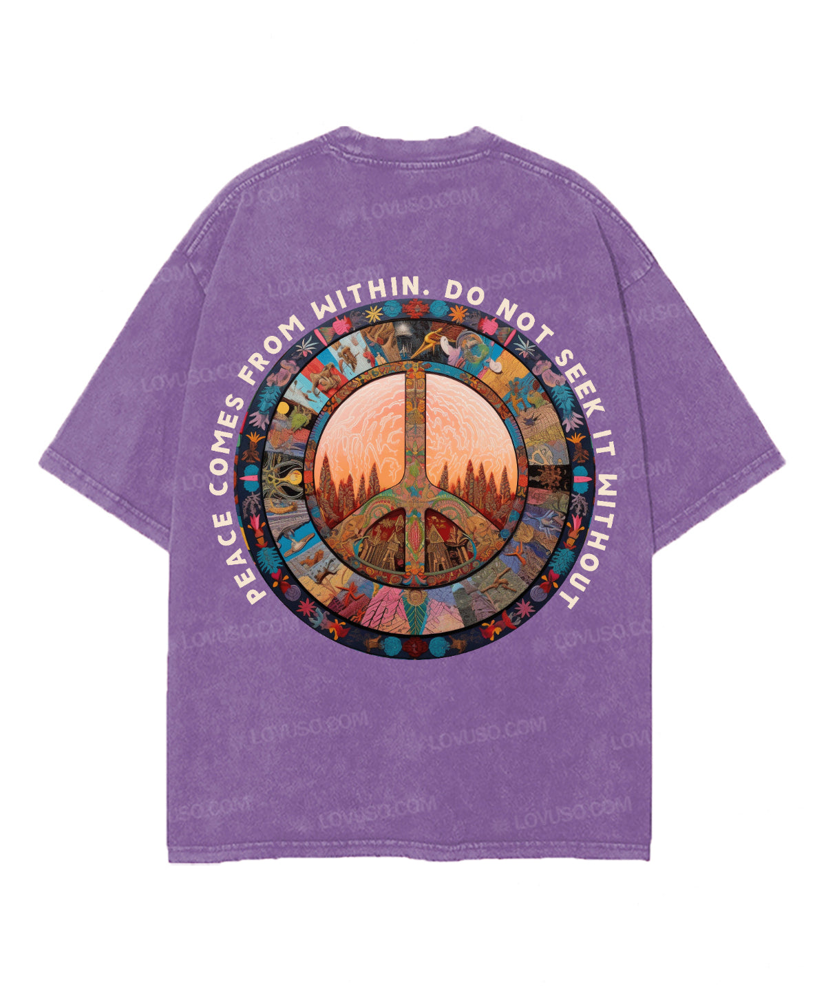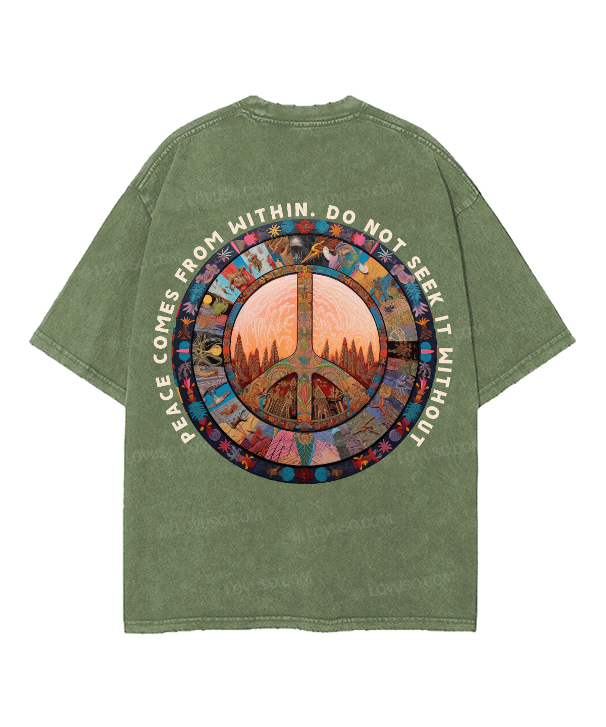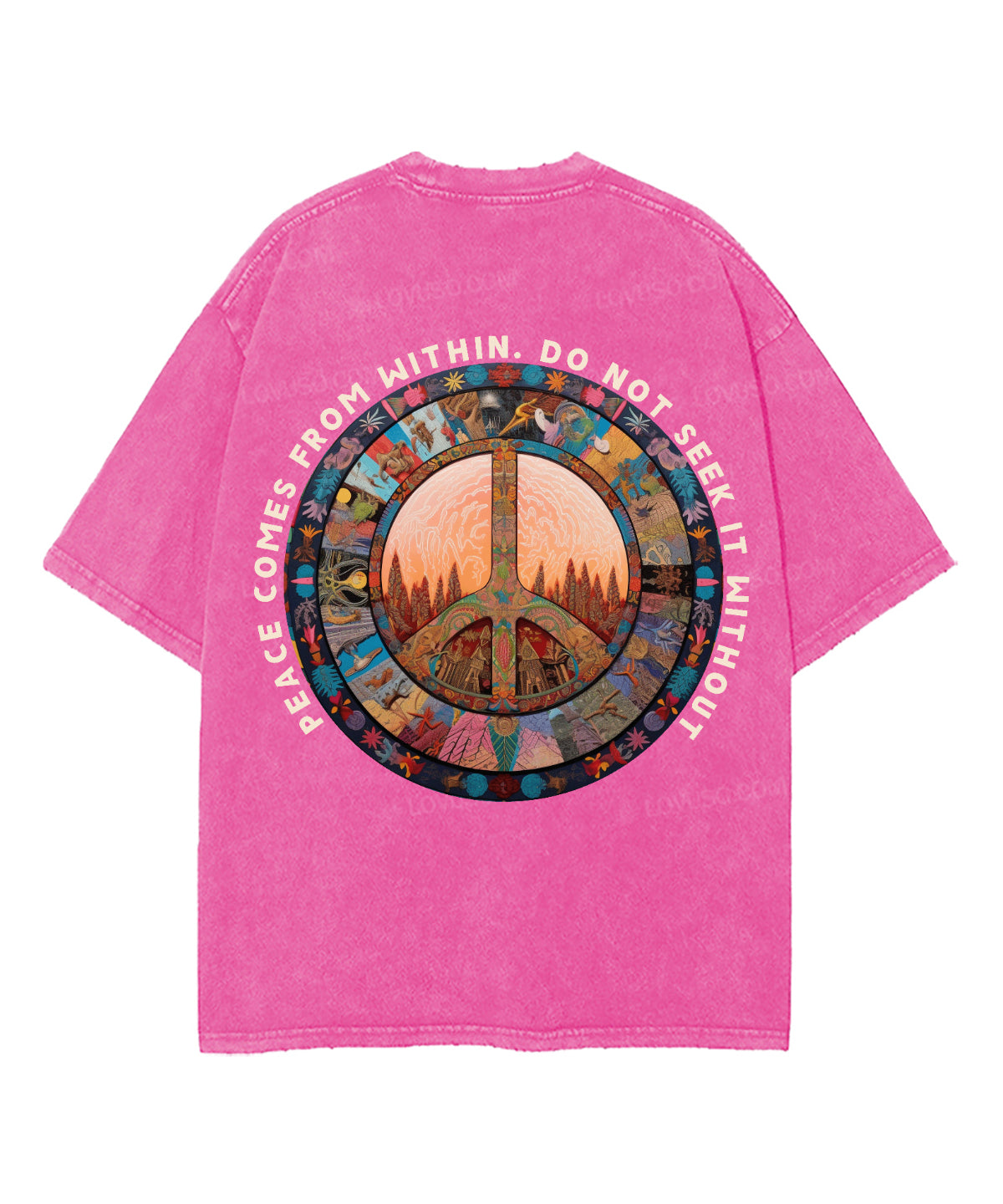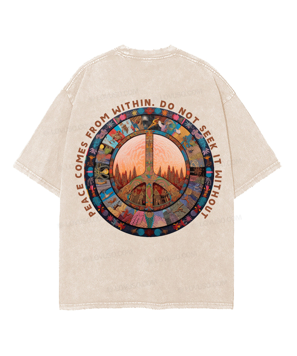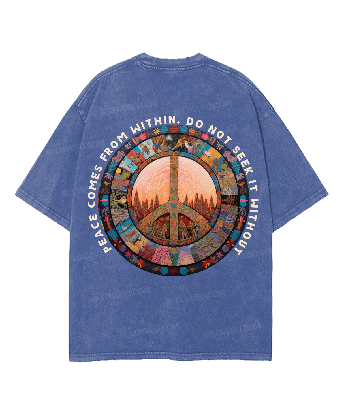 Retro Hippie Peace Comes From Within Do Not Seek It Without Double Sided Washed T-shirt