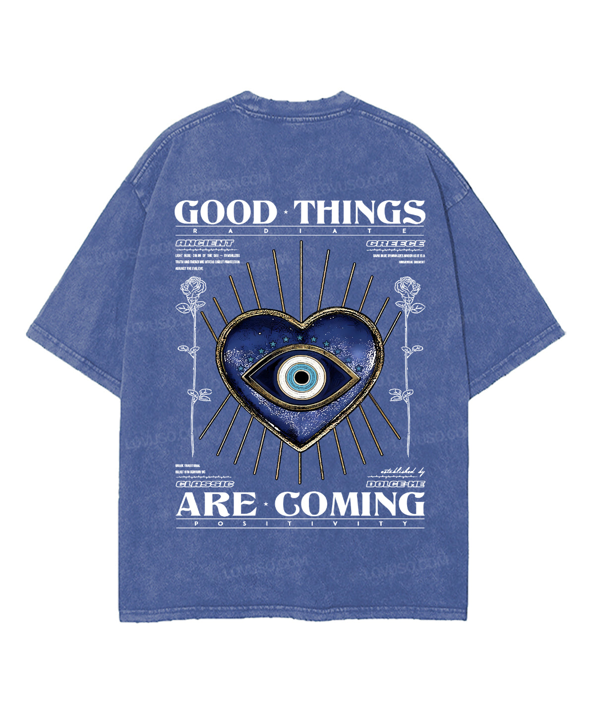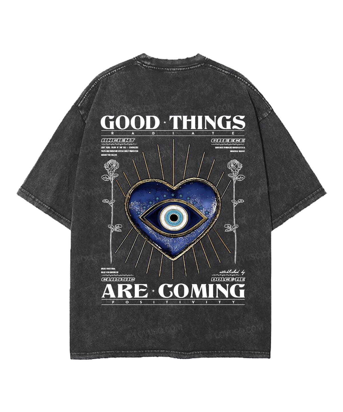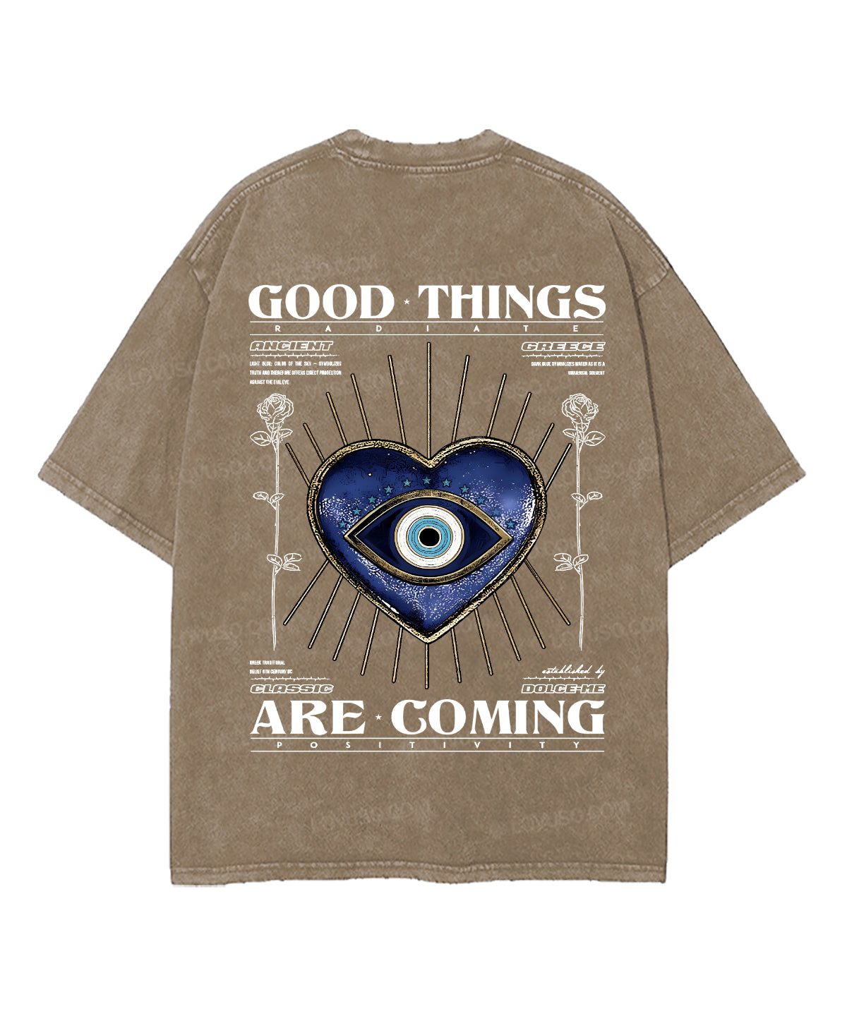 Spiritual Third Eye Good Things Are Coming Double Sided Washed T-shirt