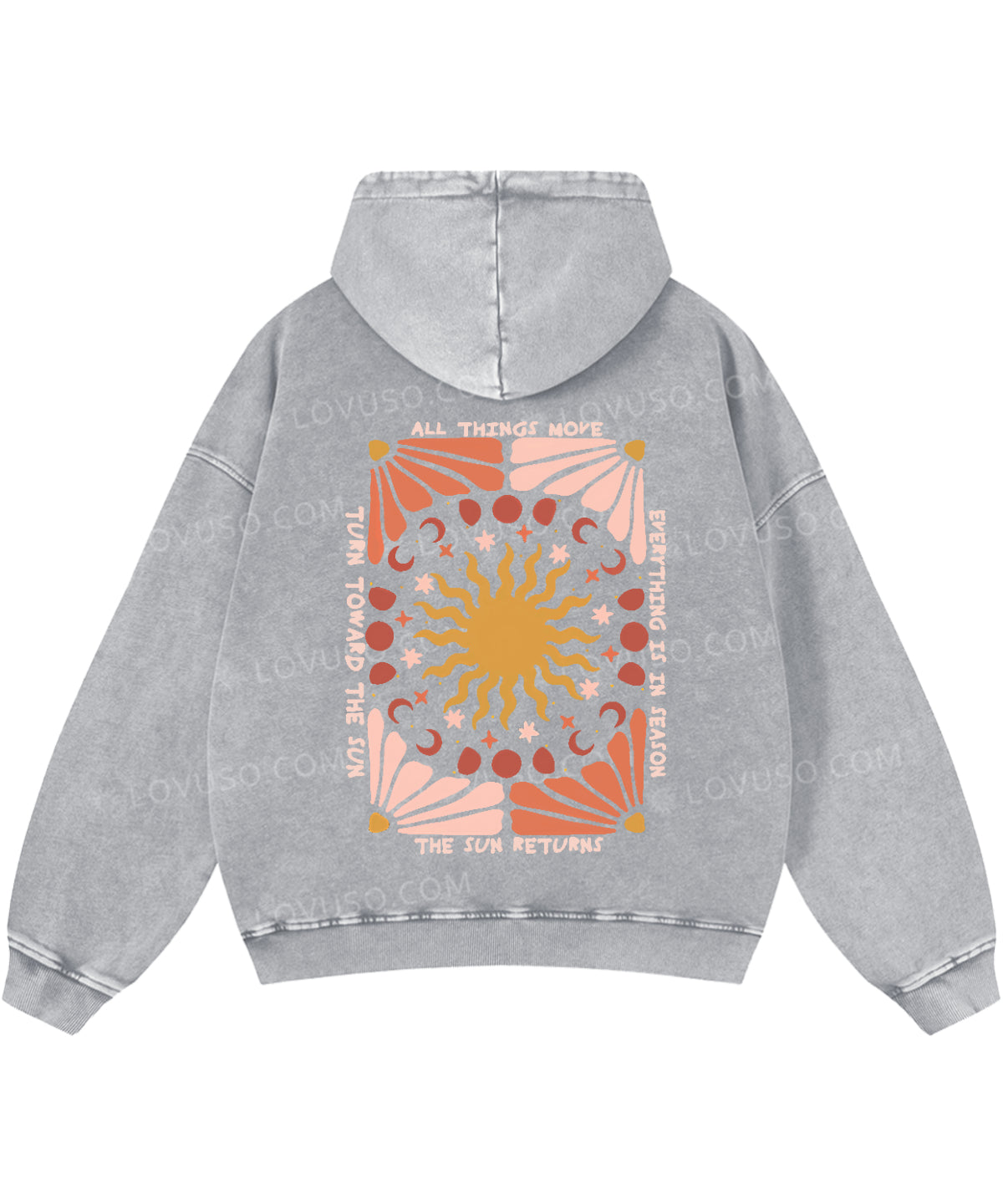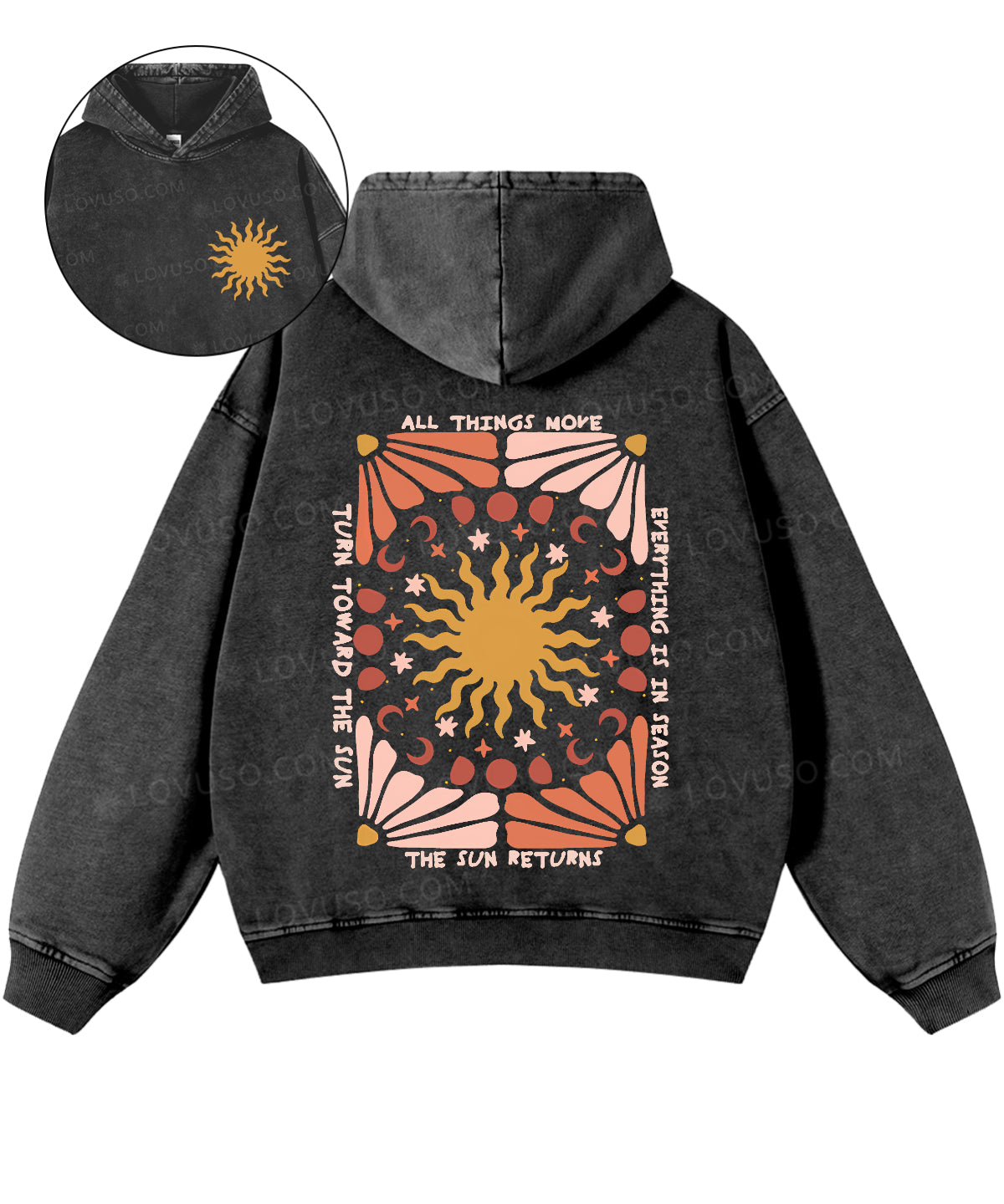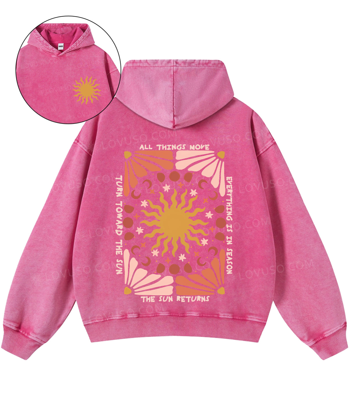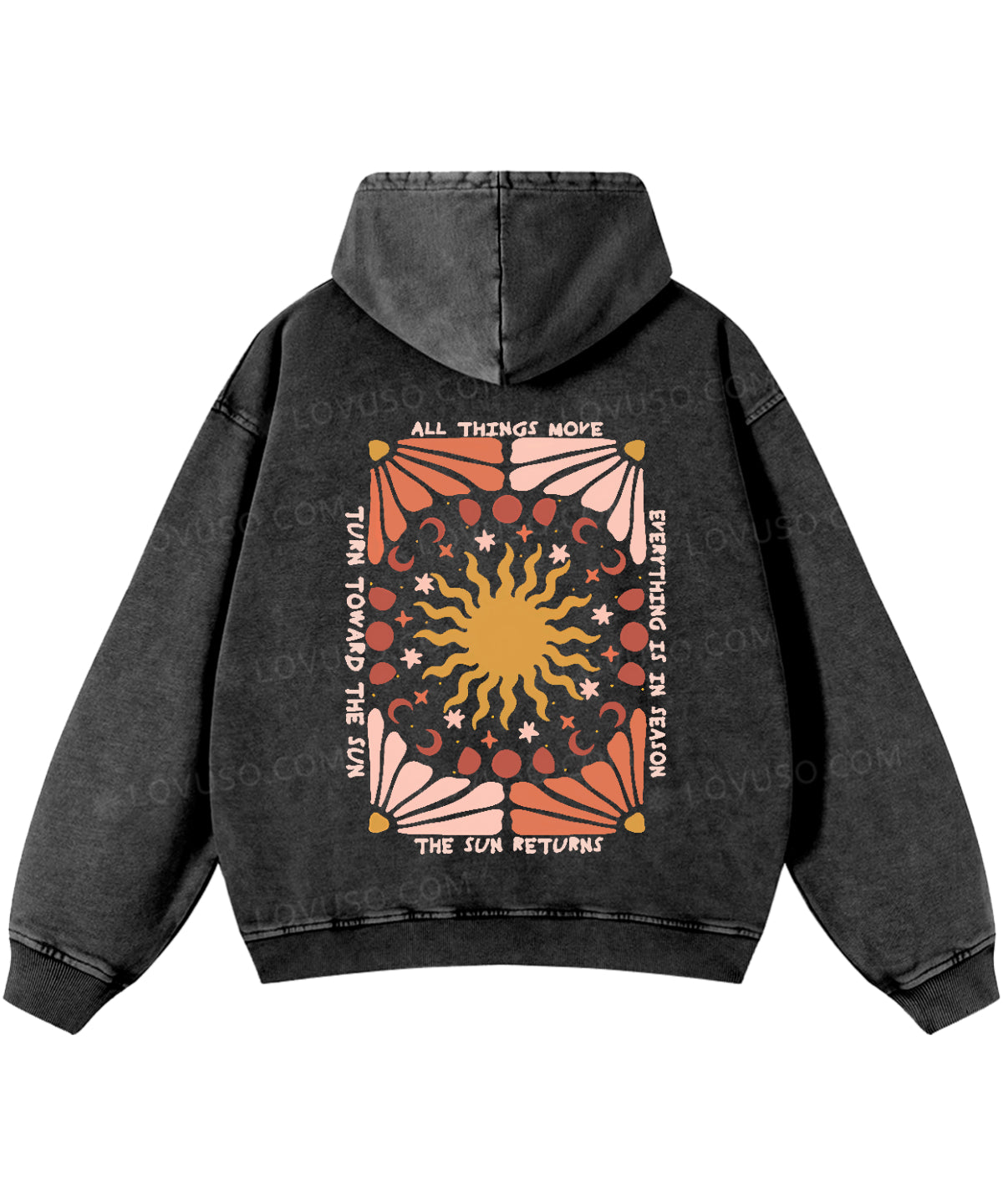 All Things Move The Sun Returns Double Sided Washed Hoodie