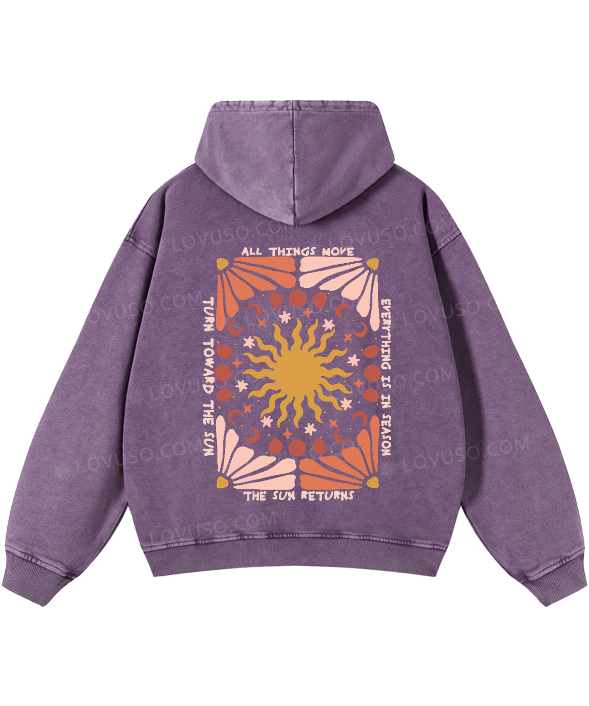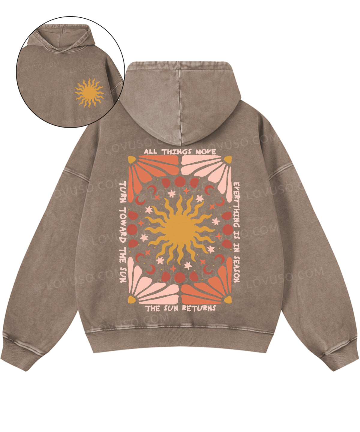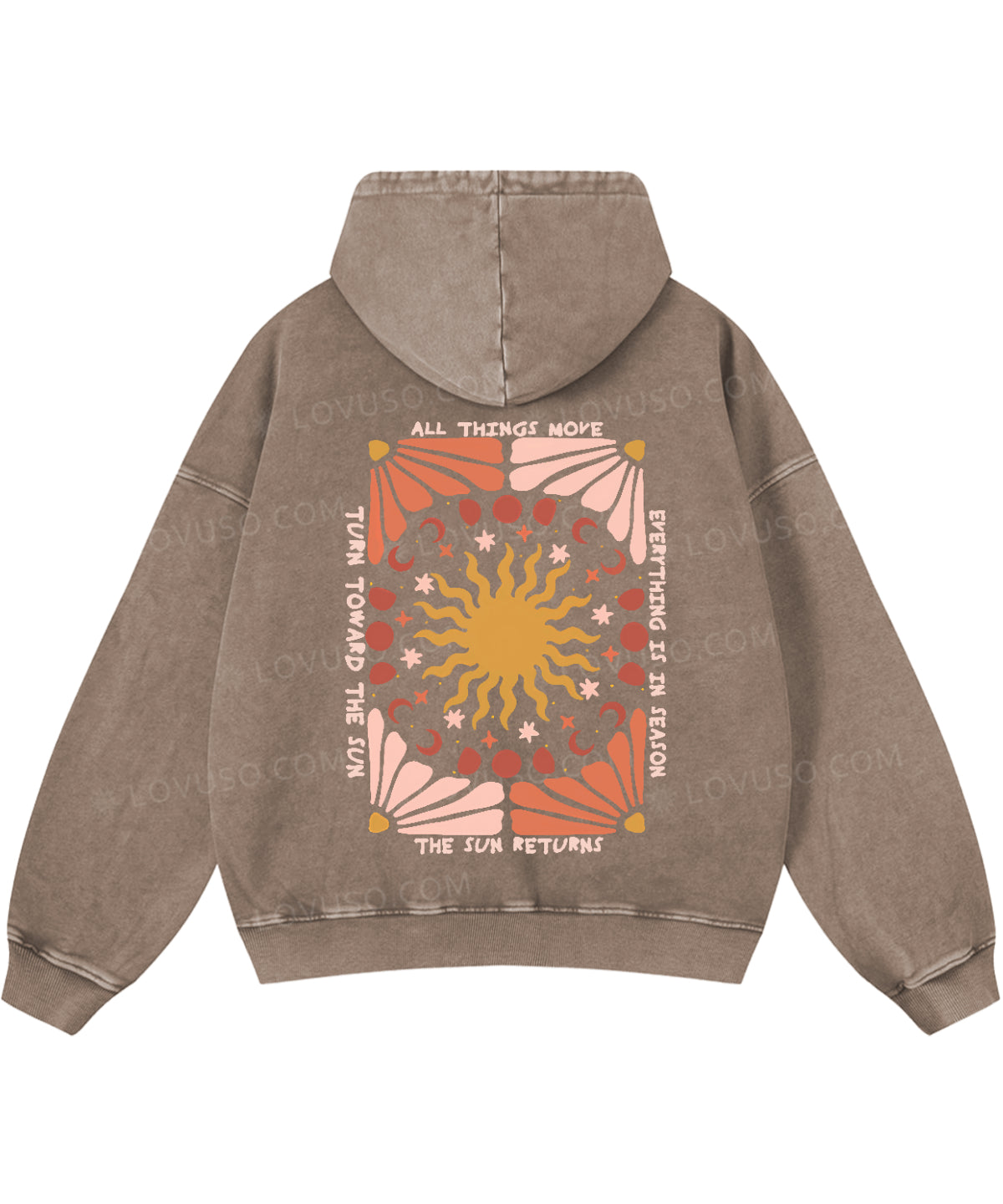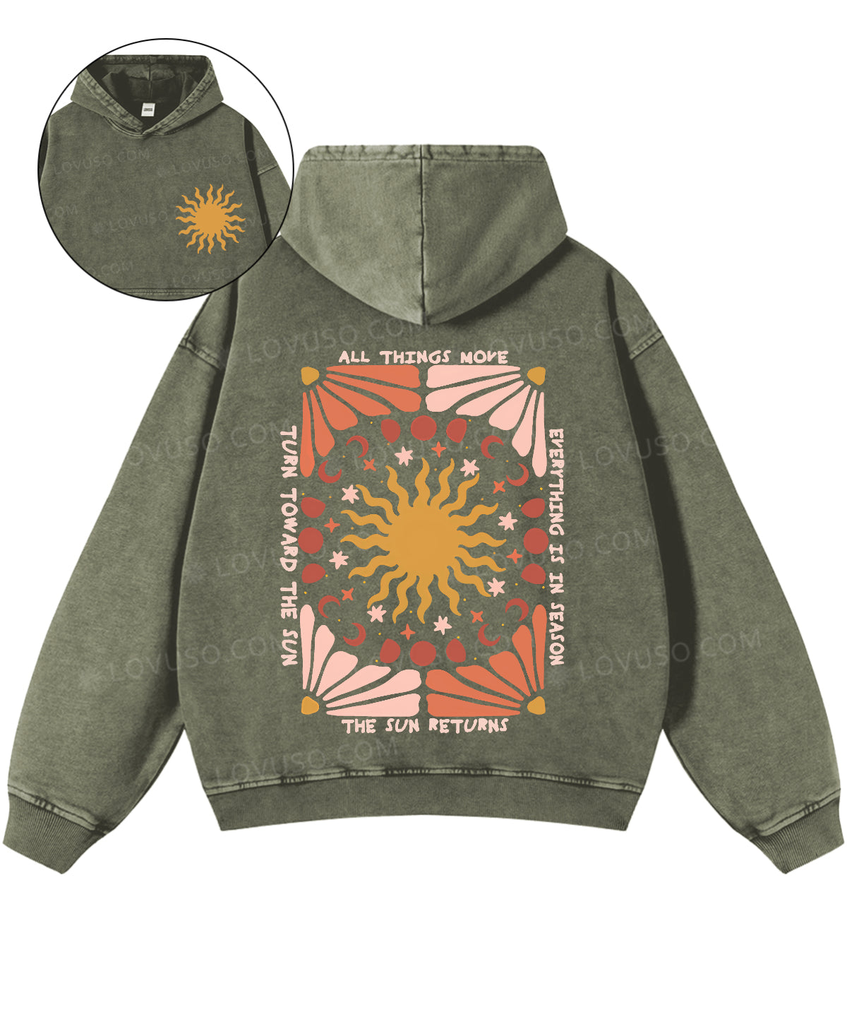 All Things Move The Sun Returns Double Sided Washed Hoodie