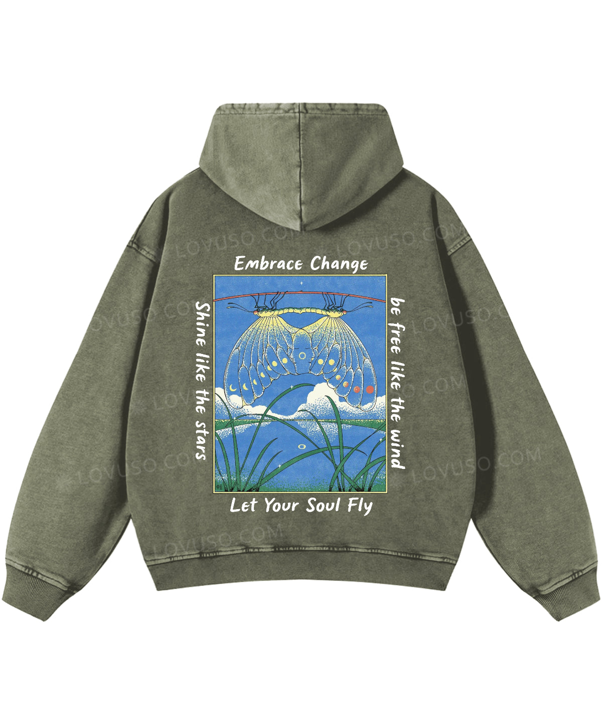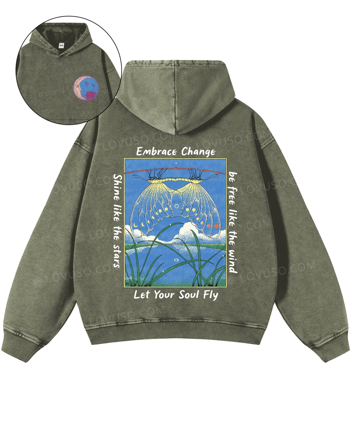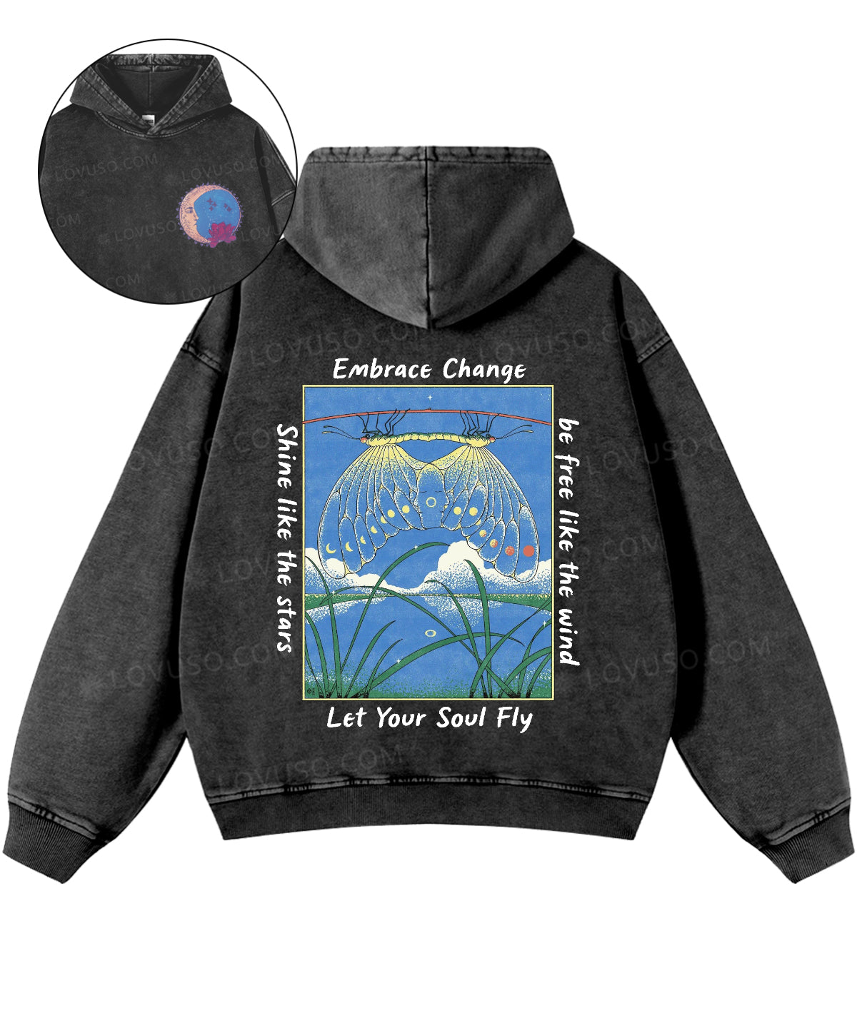 Let Your Soul Fly Double Sided Washed Hoodie