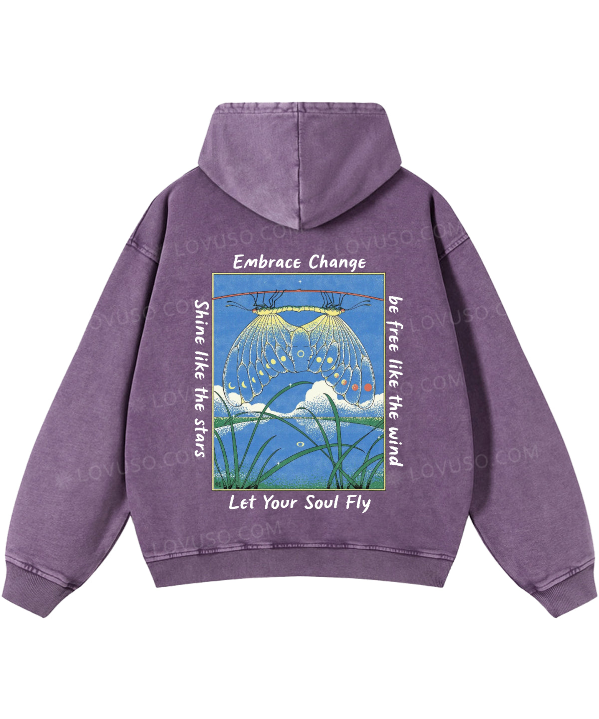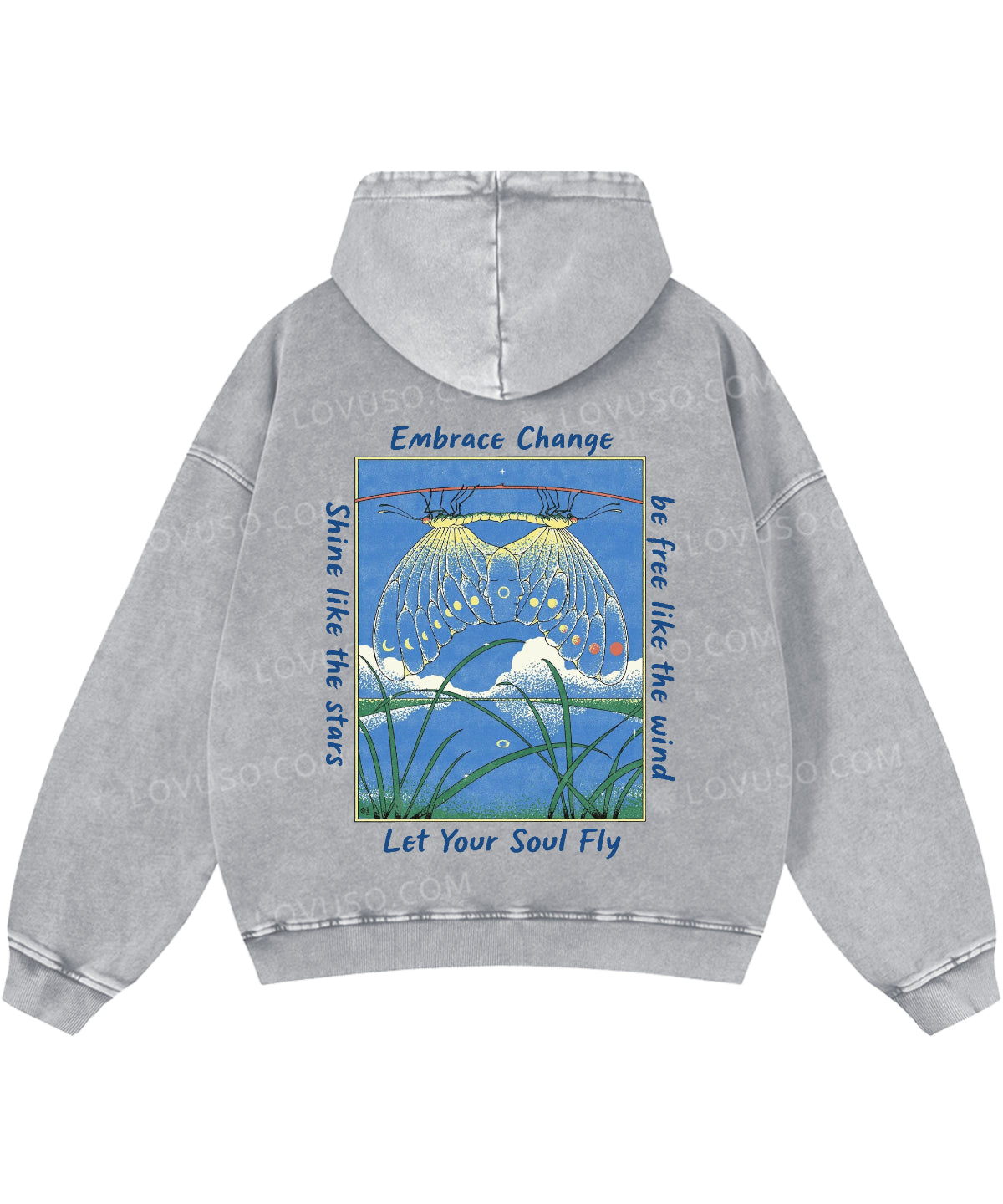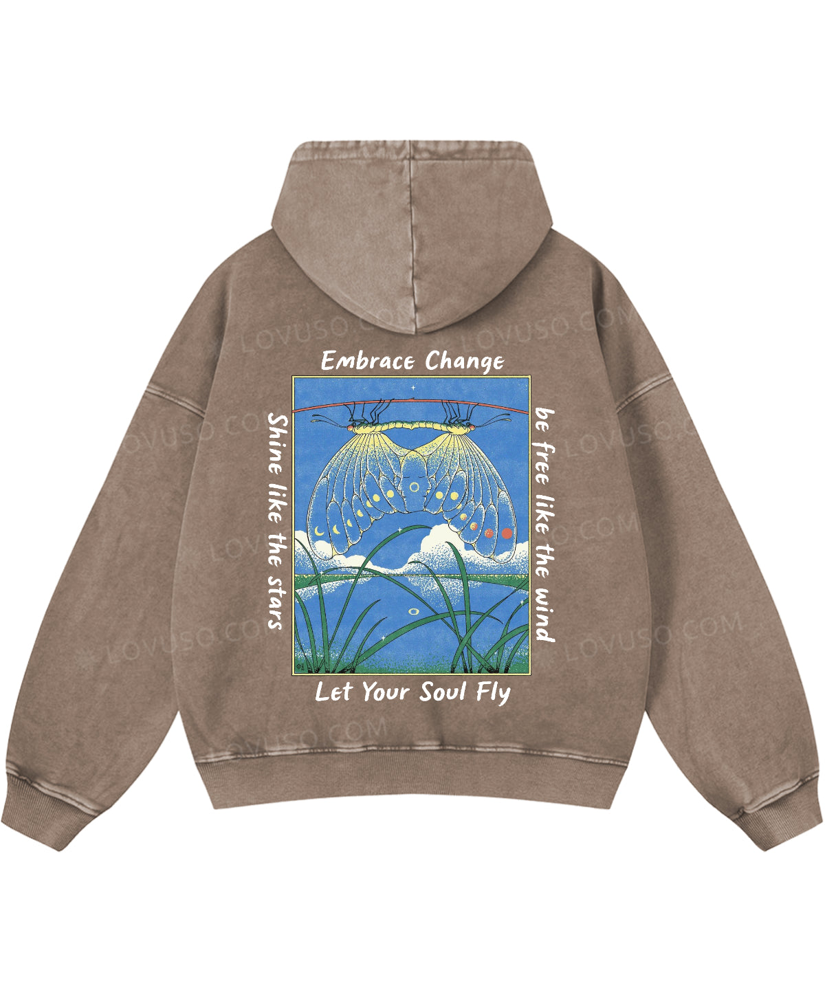 Let Your Soul Fly Double Sided Washed Hoodie