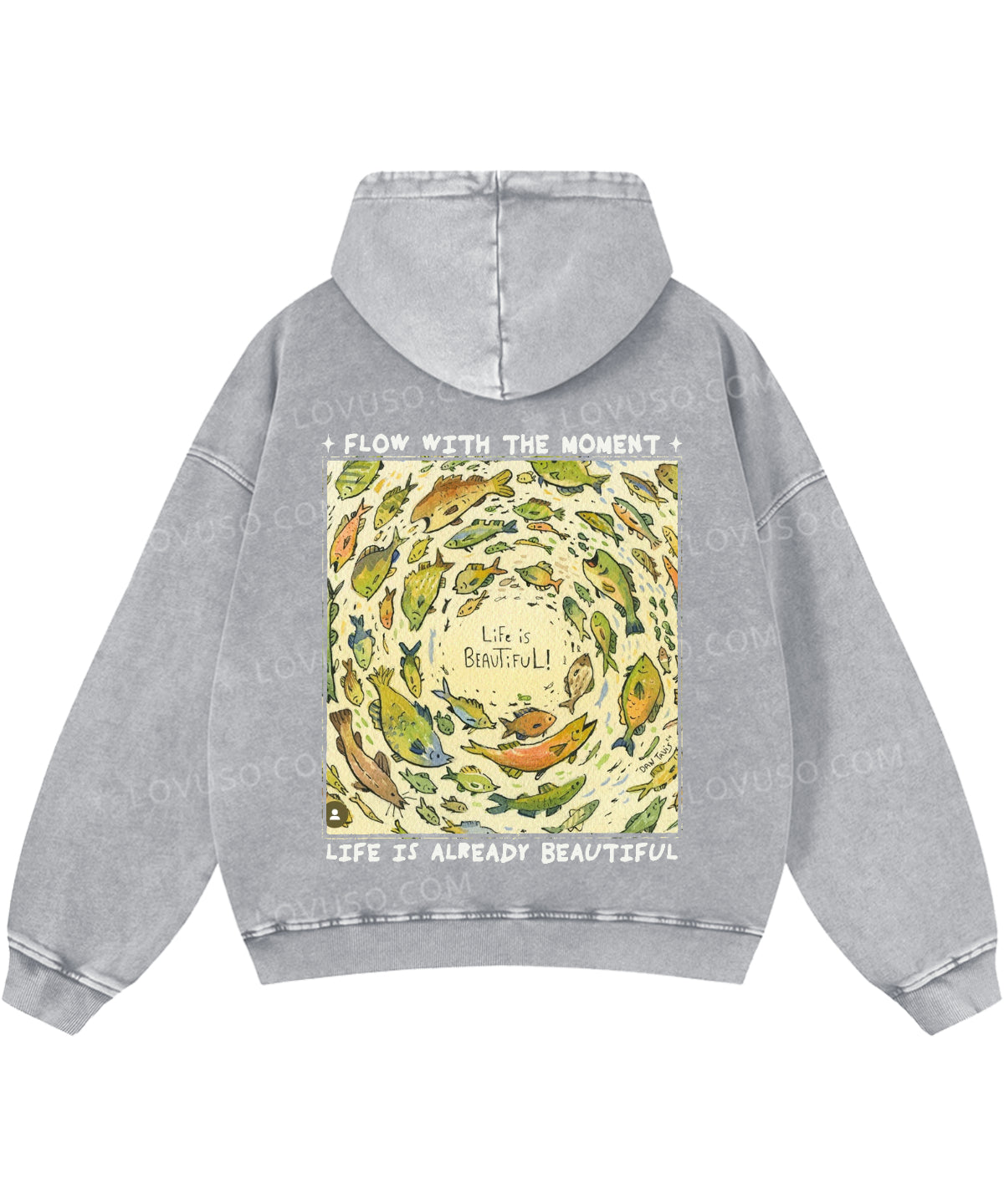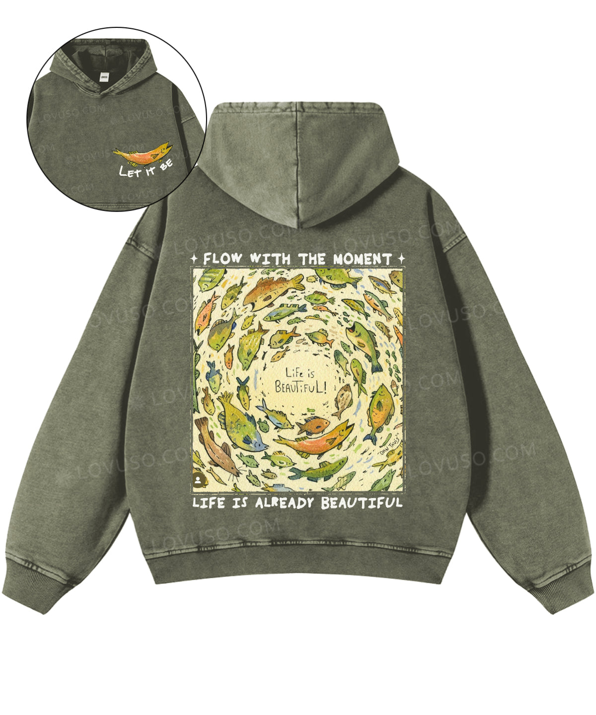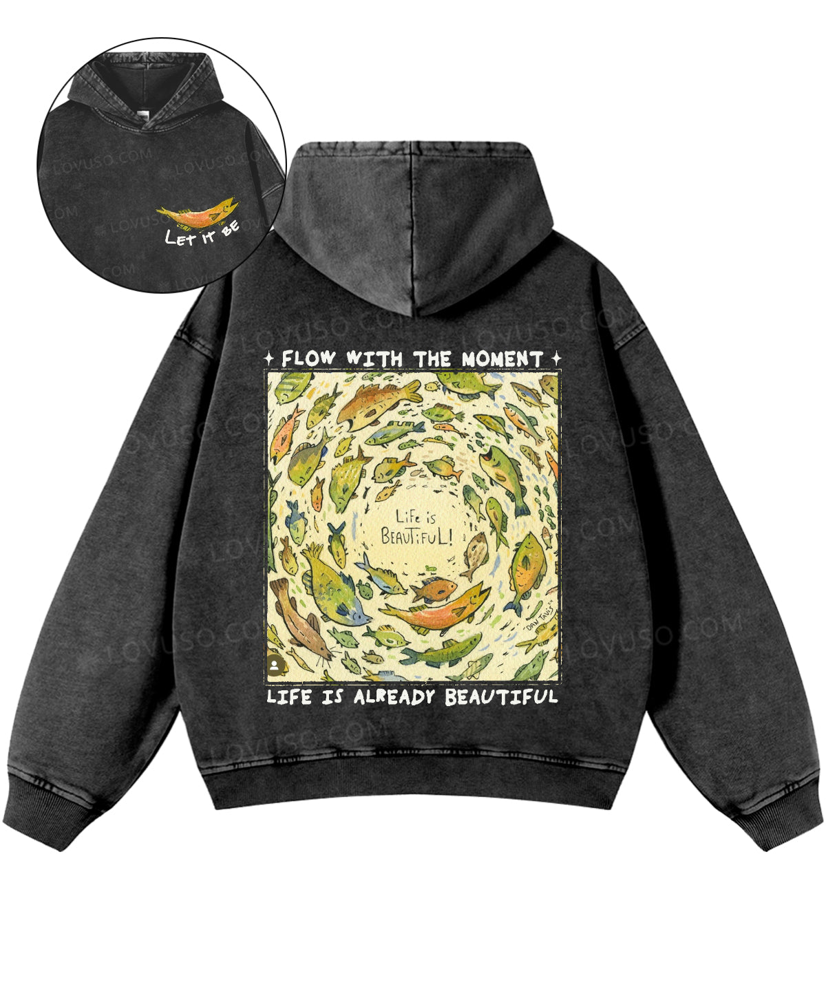 Life Is Beautiful Retro Fish Double Sided Washed Hoodie