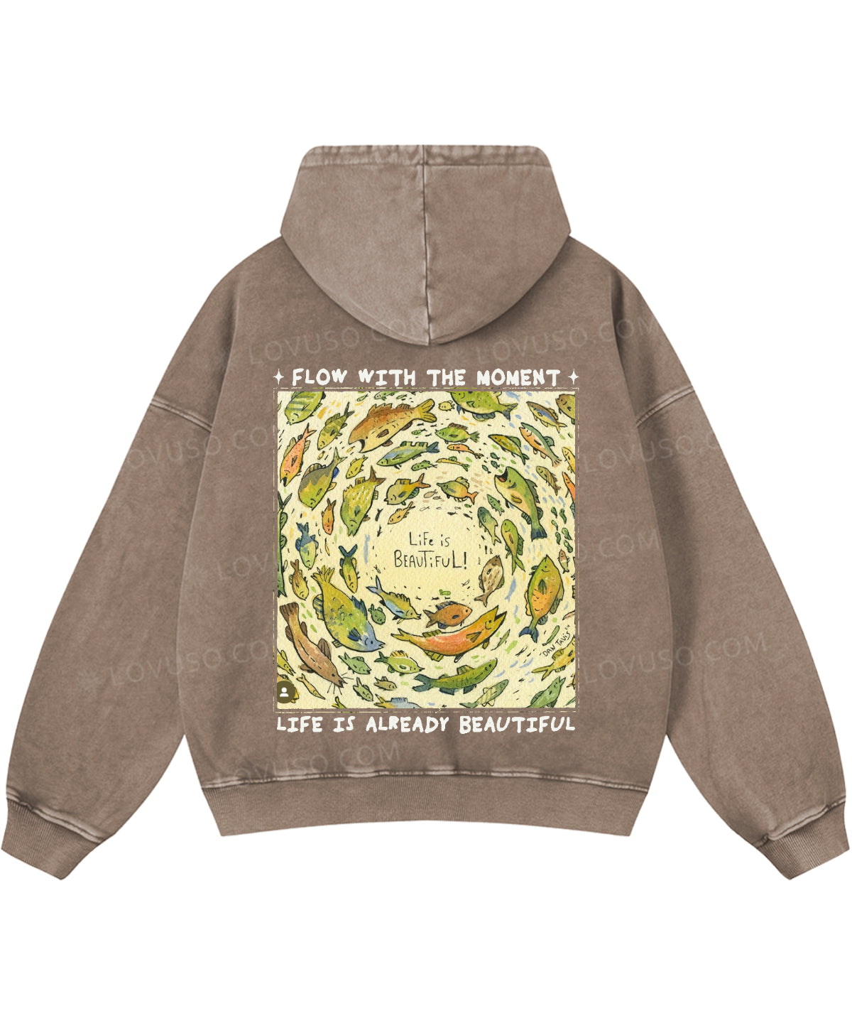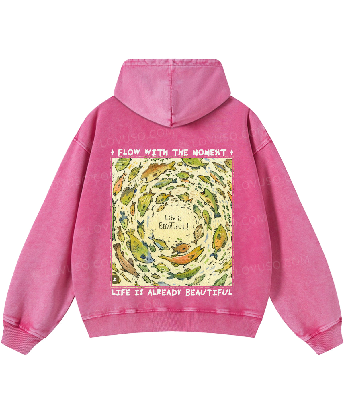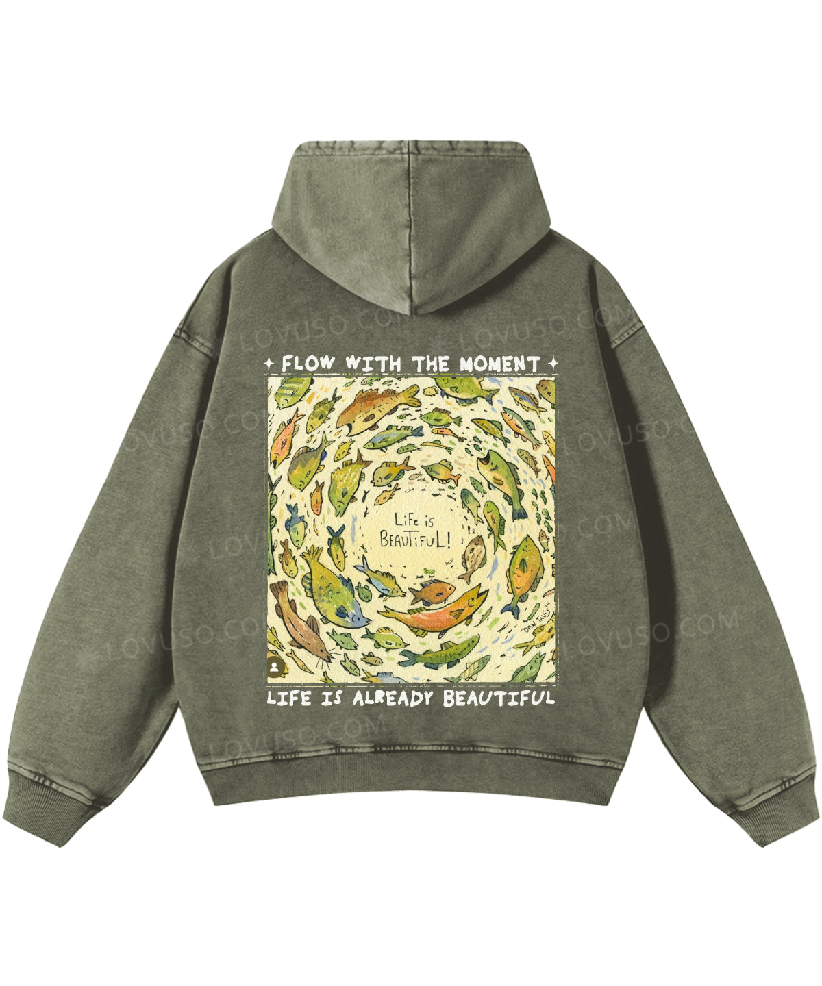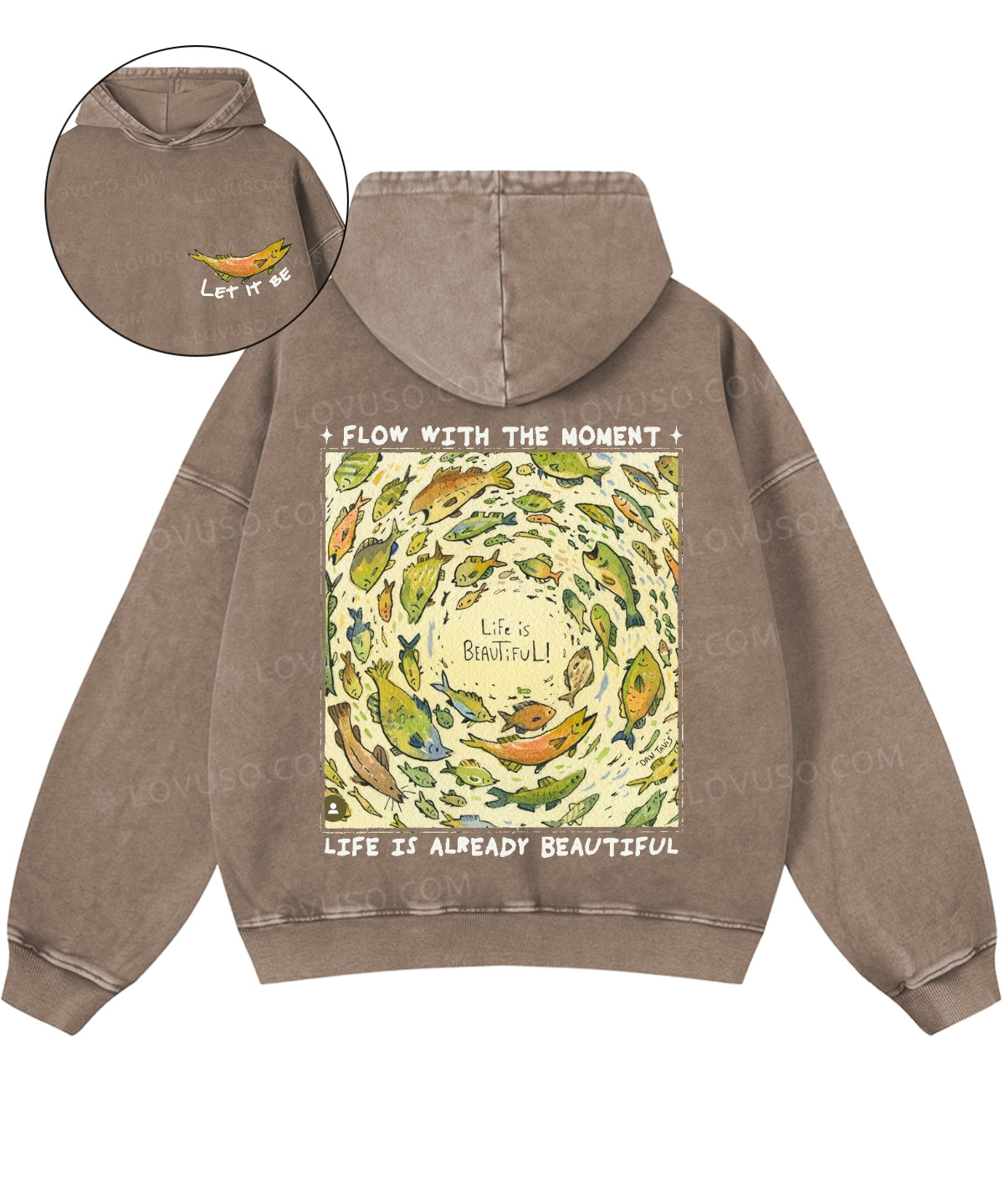 Life Is Beautiful Retro Fish Double Sided Washed Hoodie