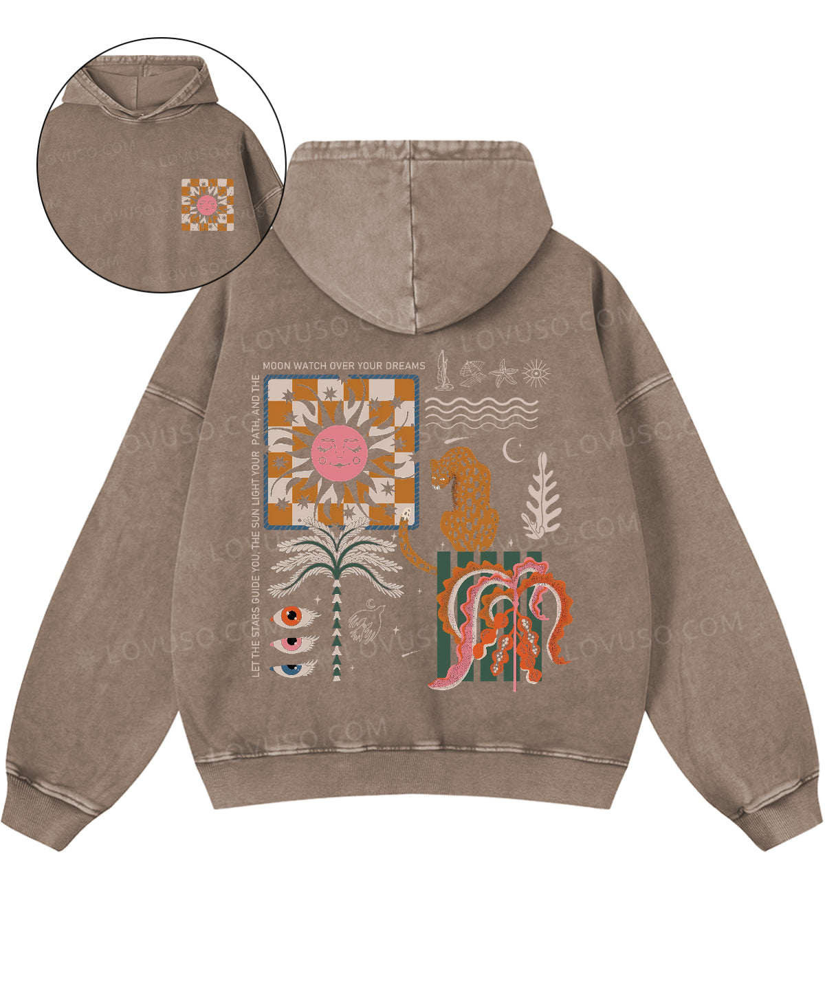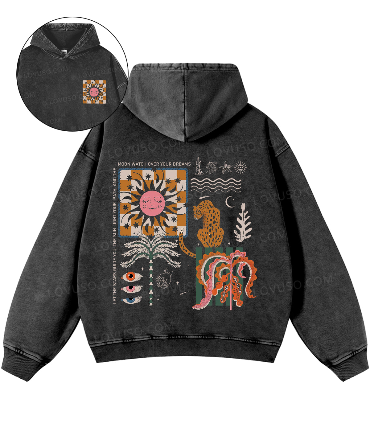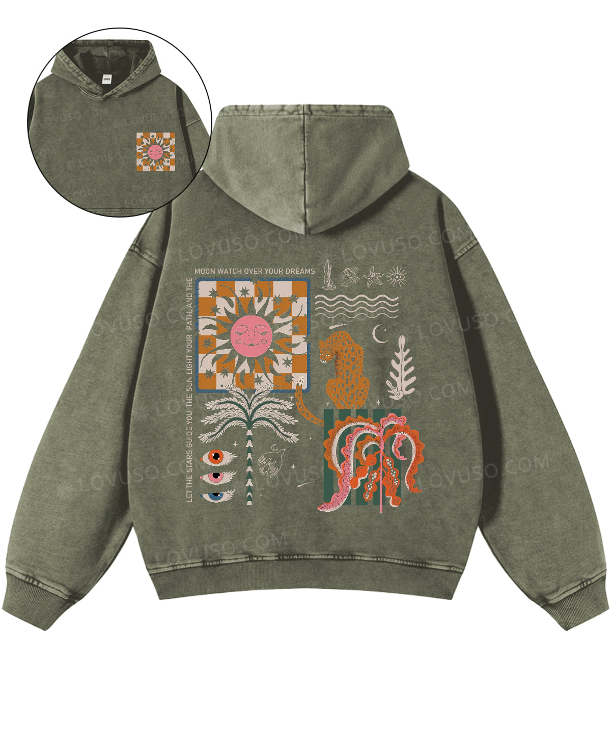 Moon Watch Over Your Dream Double Sided Washed Hoodie