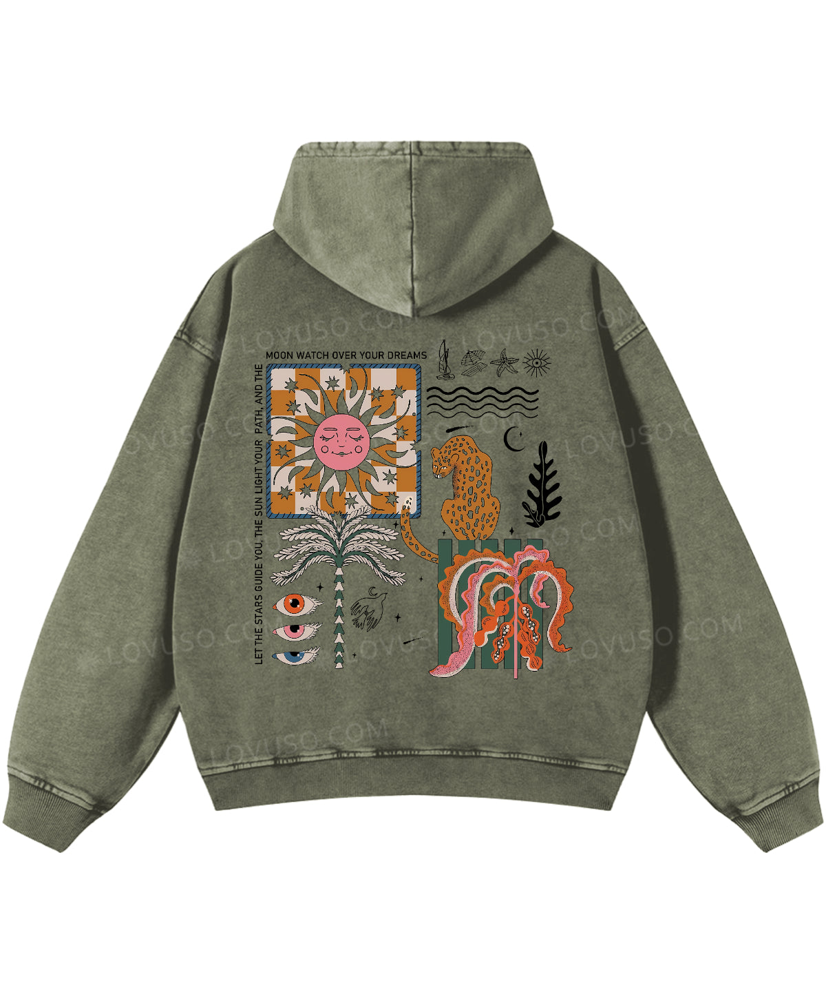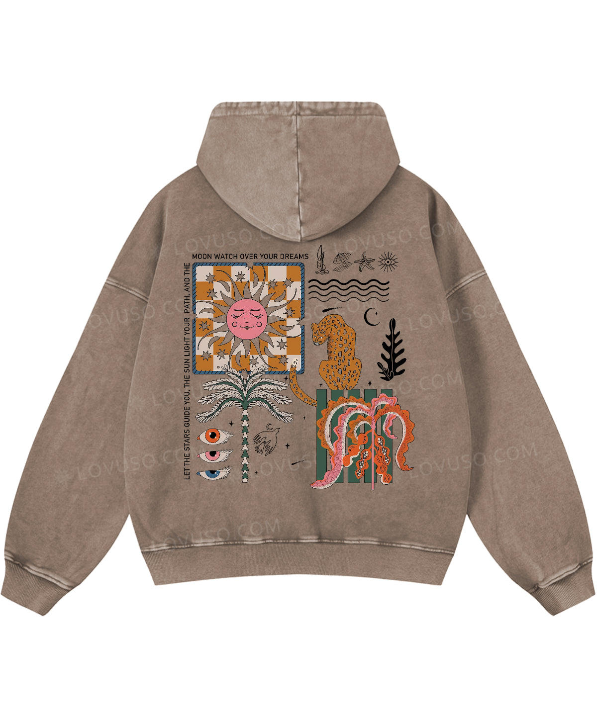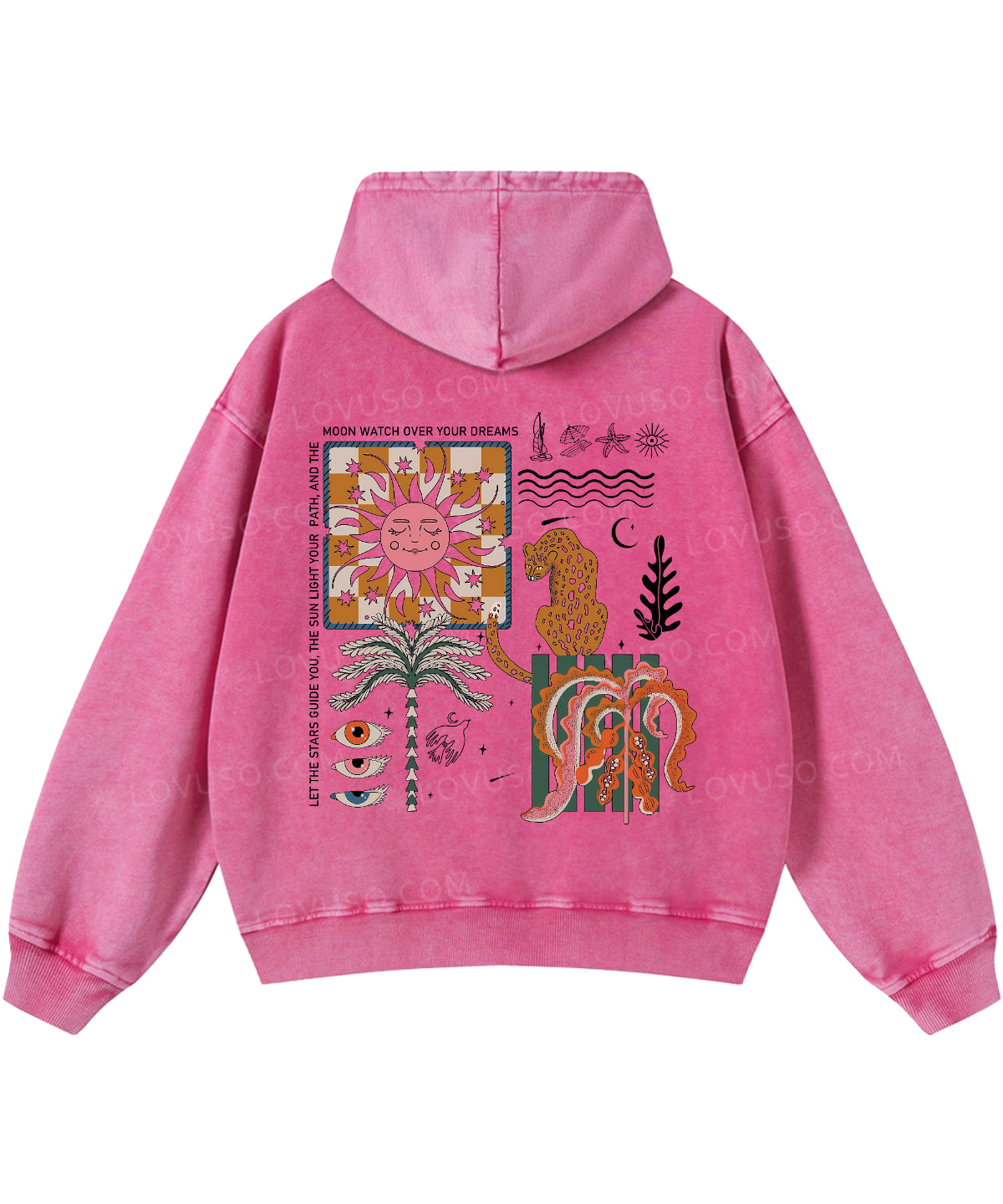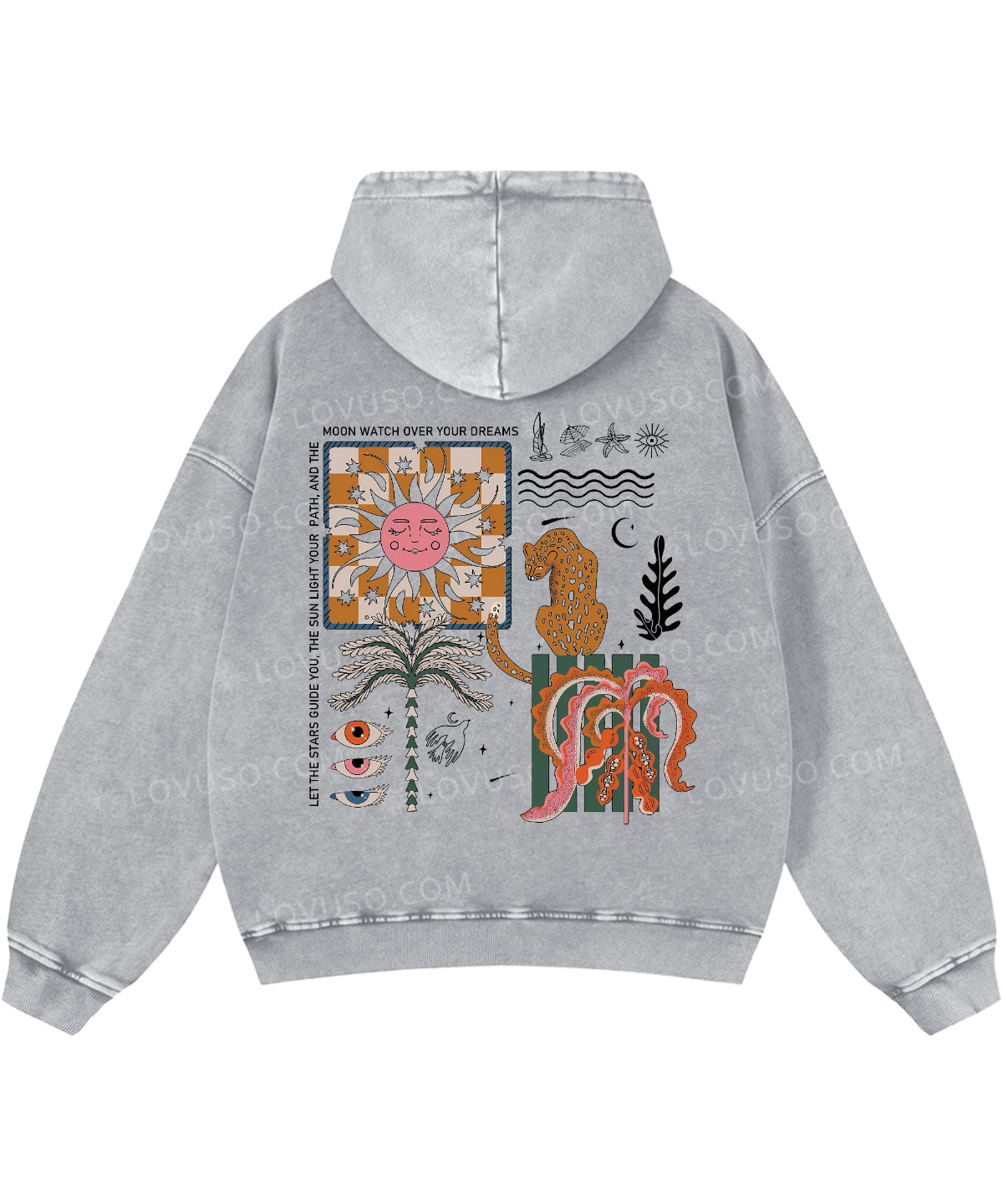 Moon Watch Over Your Dream Double Sided Washed Hoodie