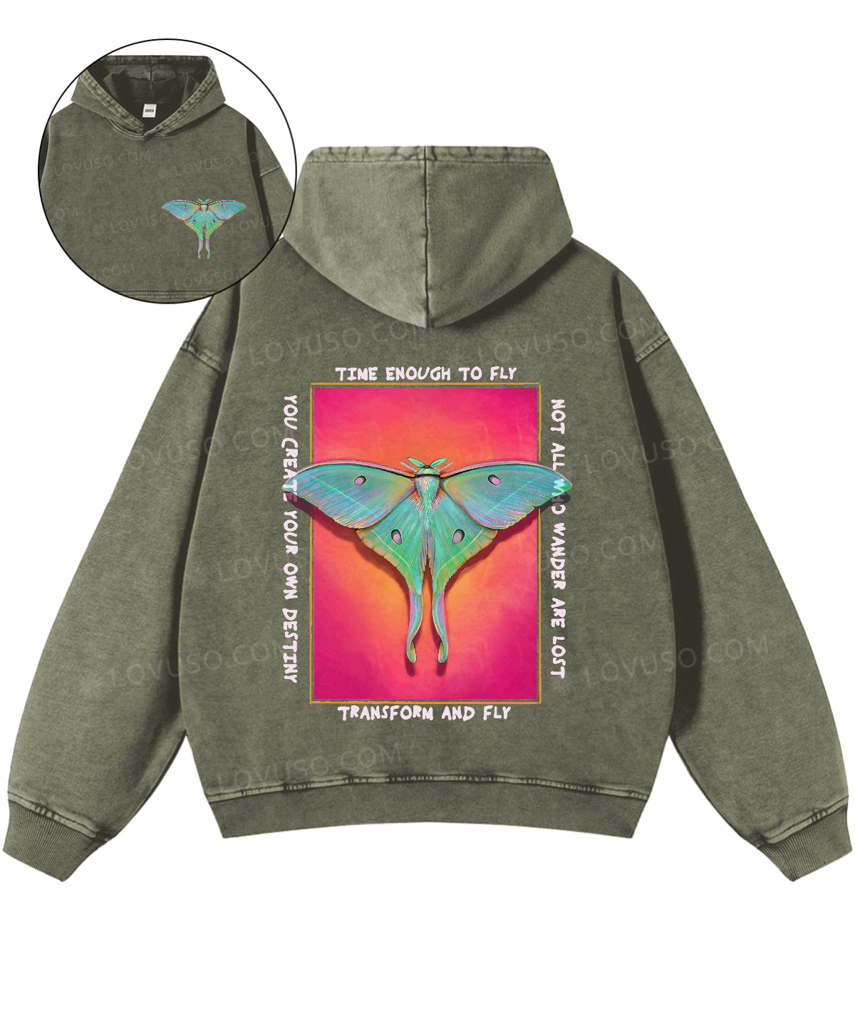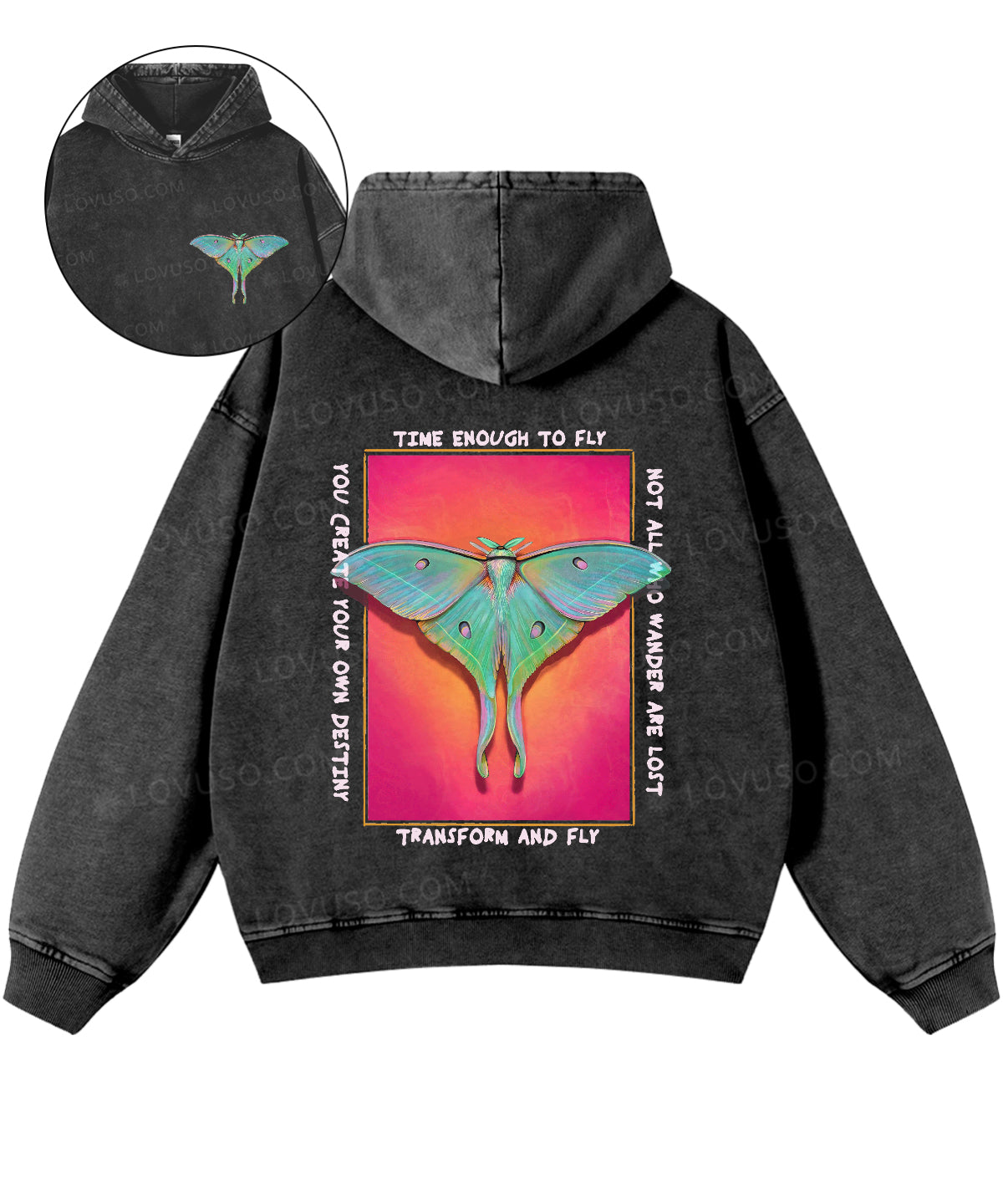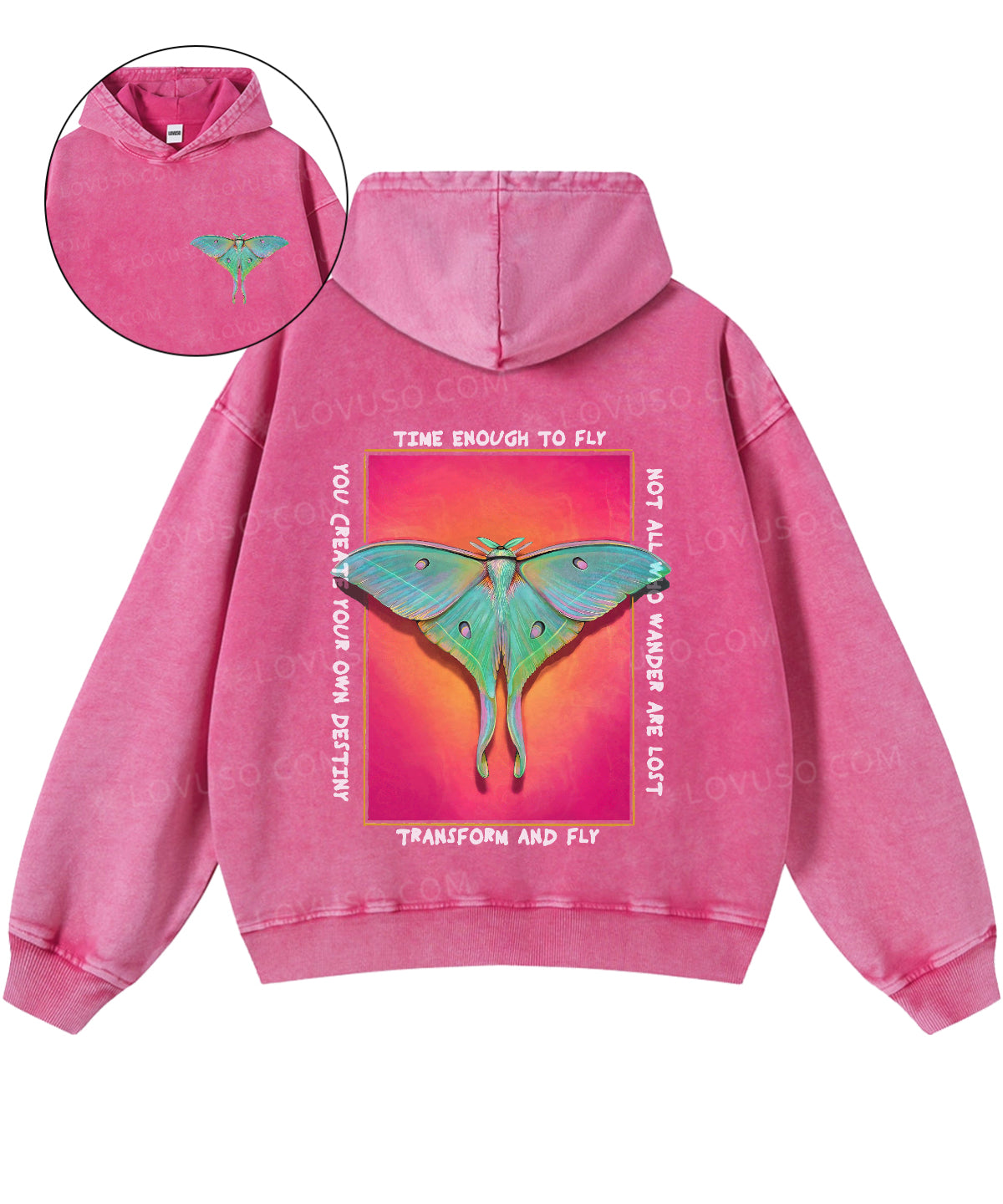 Mystic Moth Time Enough To Fly Double Sided Washed Hoodie