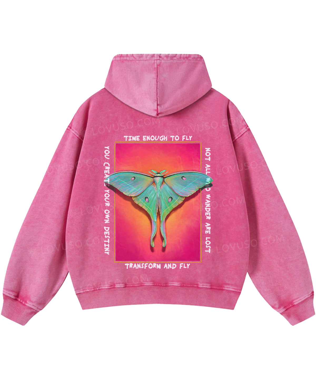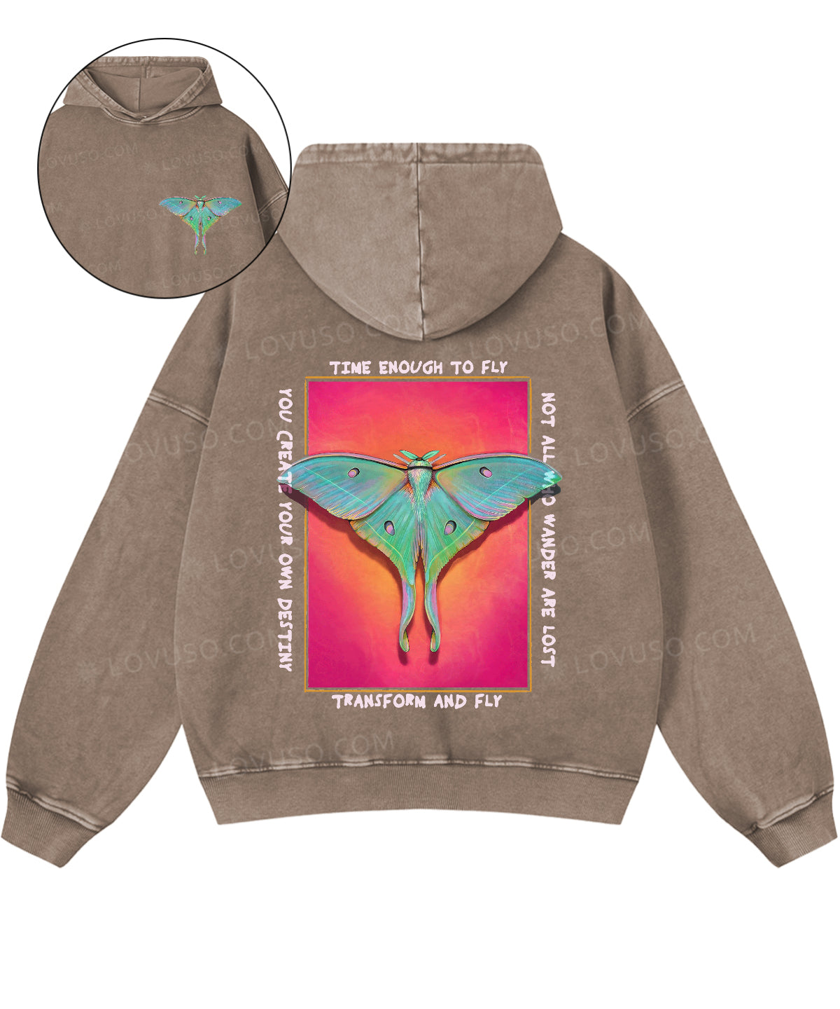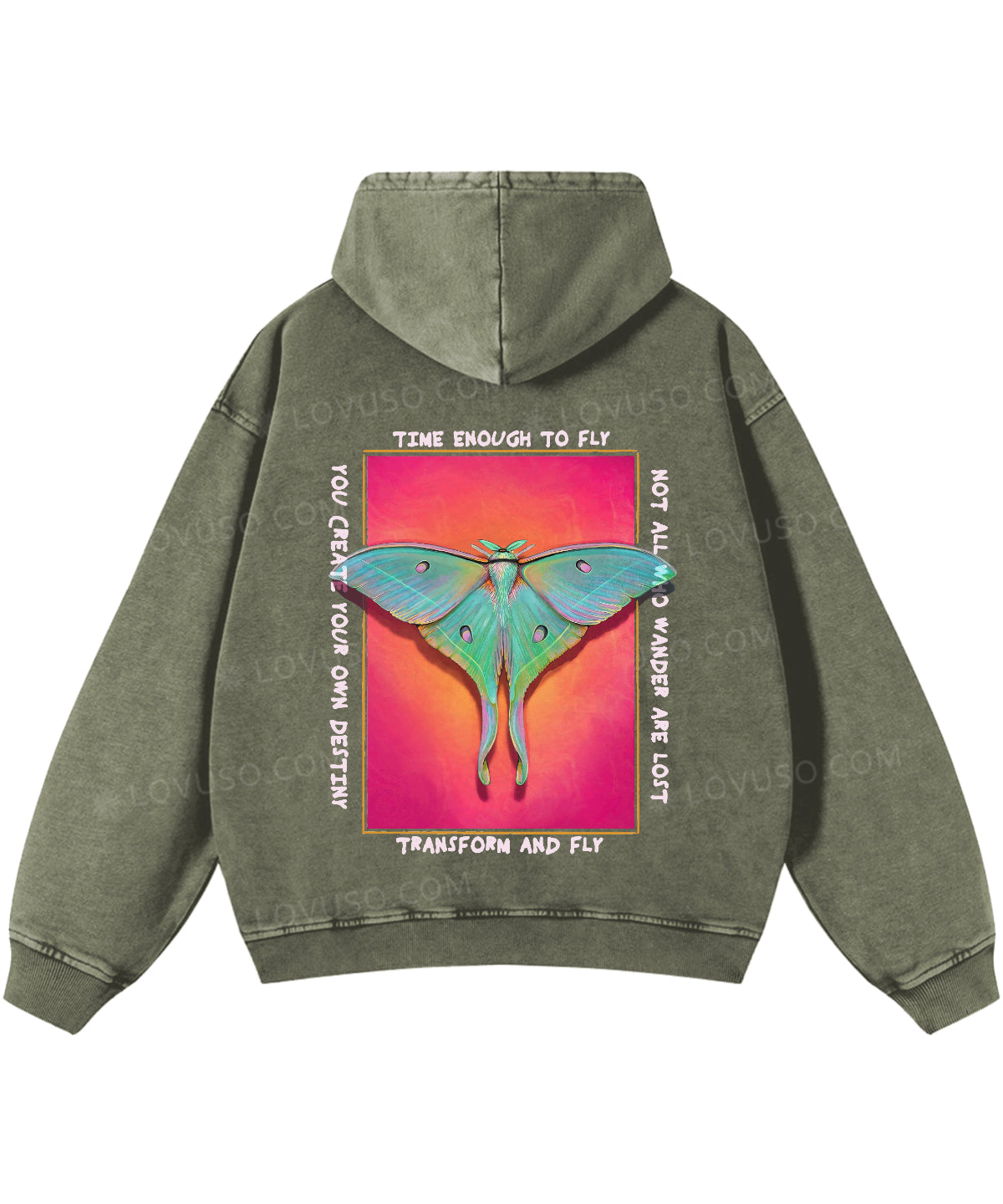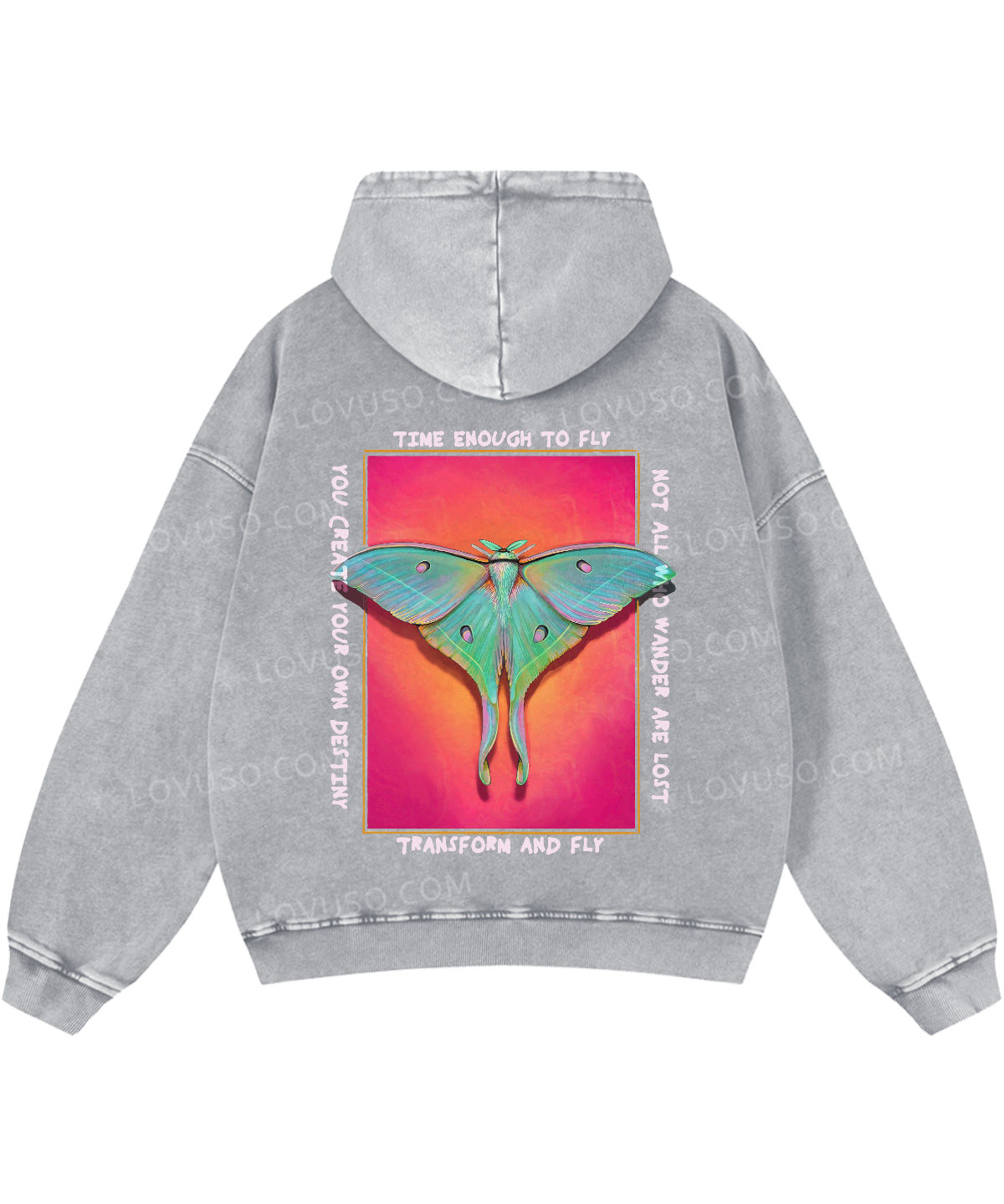 Mystic Moth Time Enough To Fly Double Sided Washed Hoodie