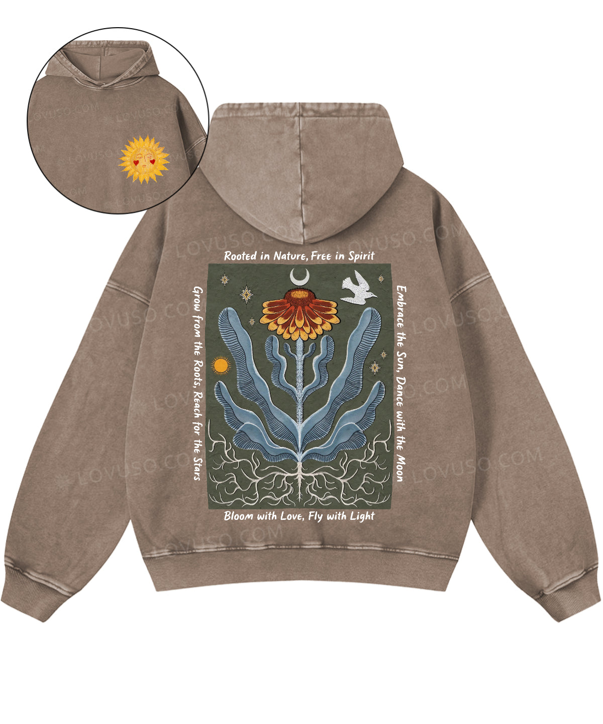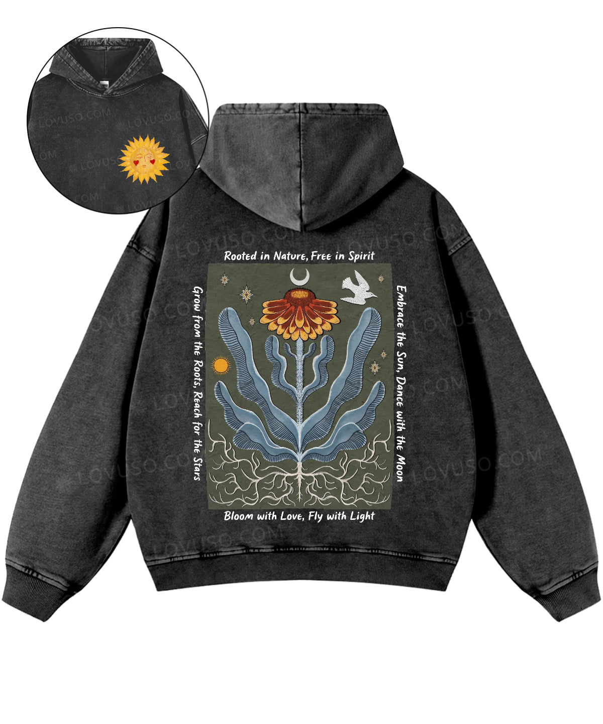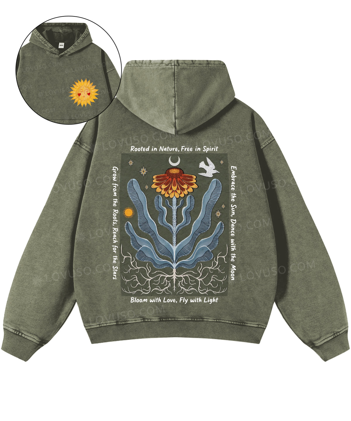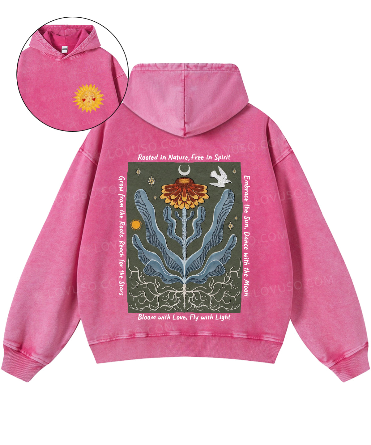 Retro Boho Rooted In Nature Free In Spirit Double Sided Washed Washed Hoodie