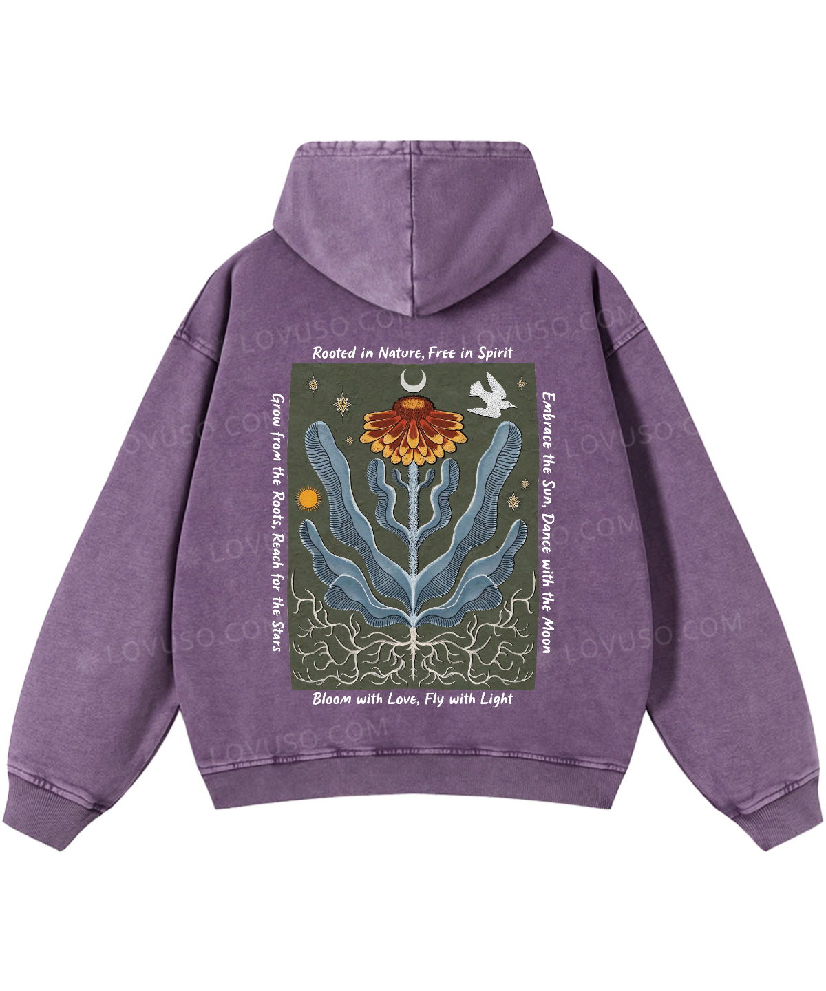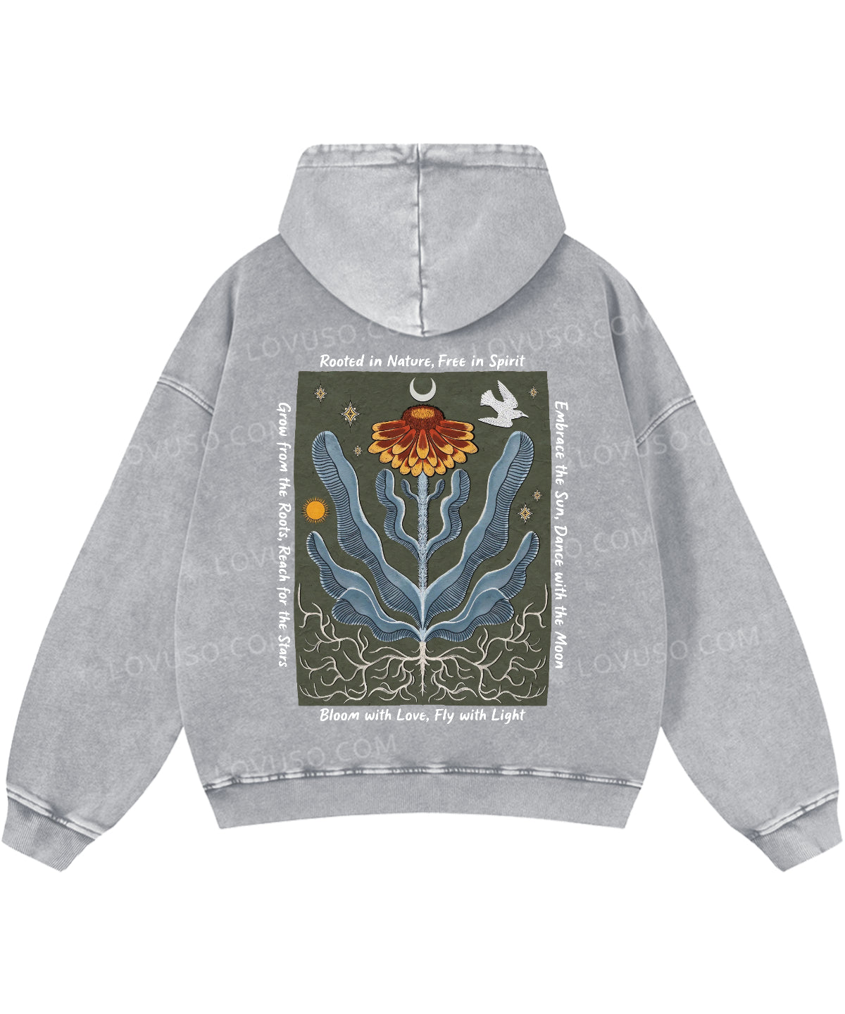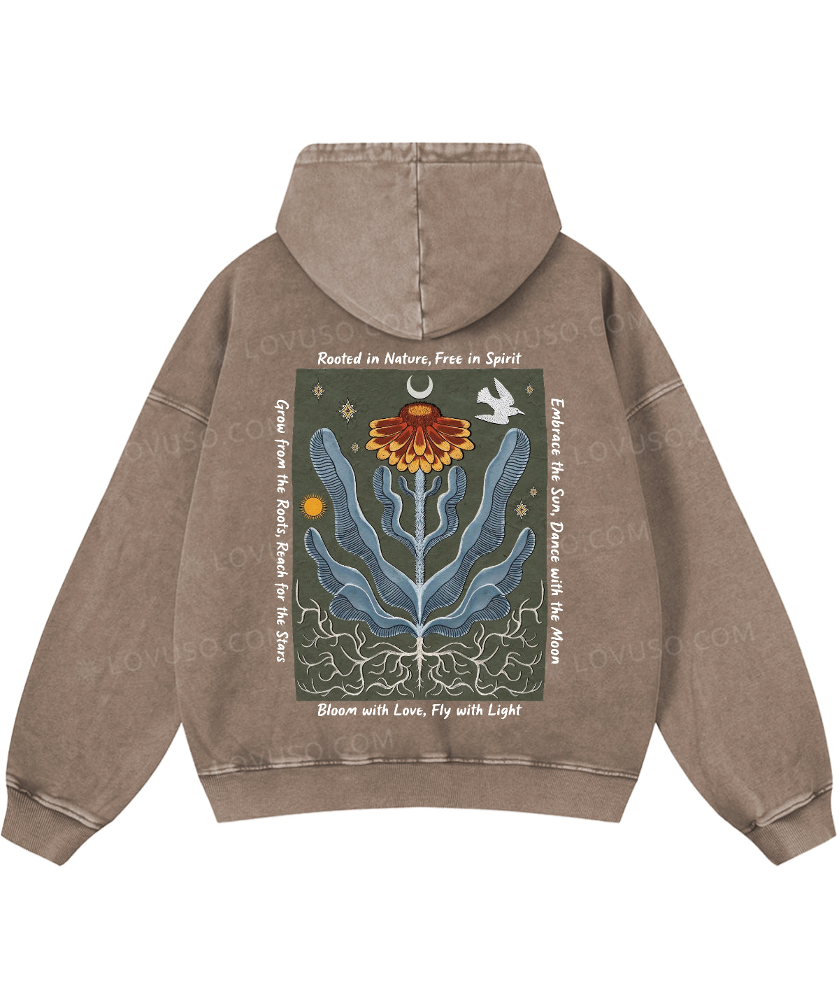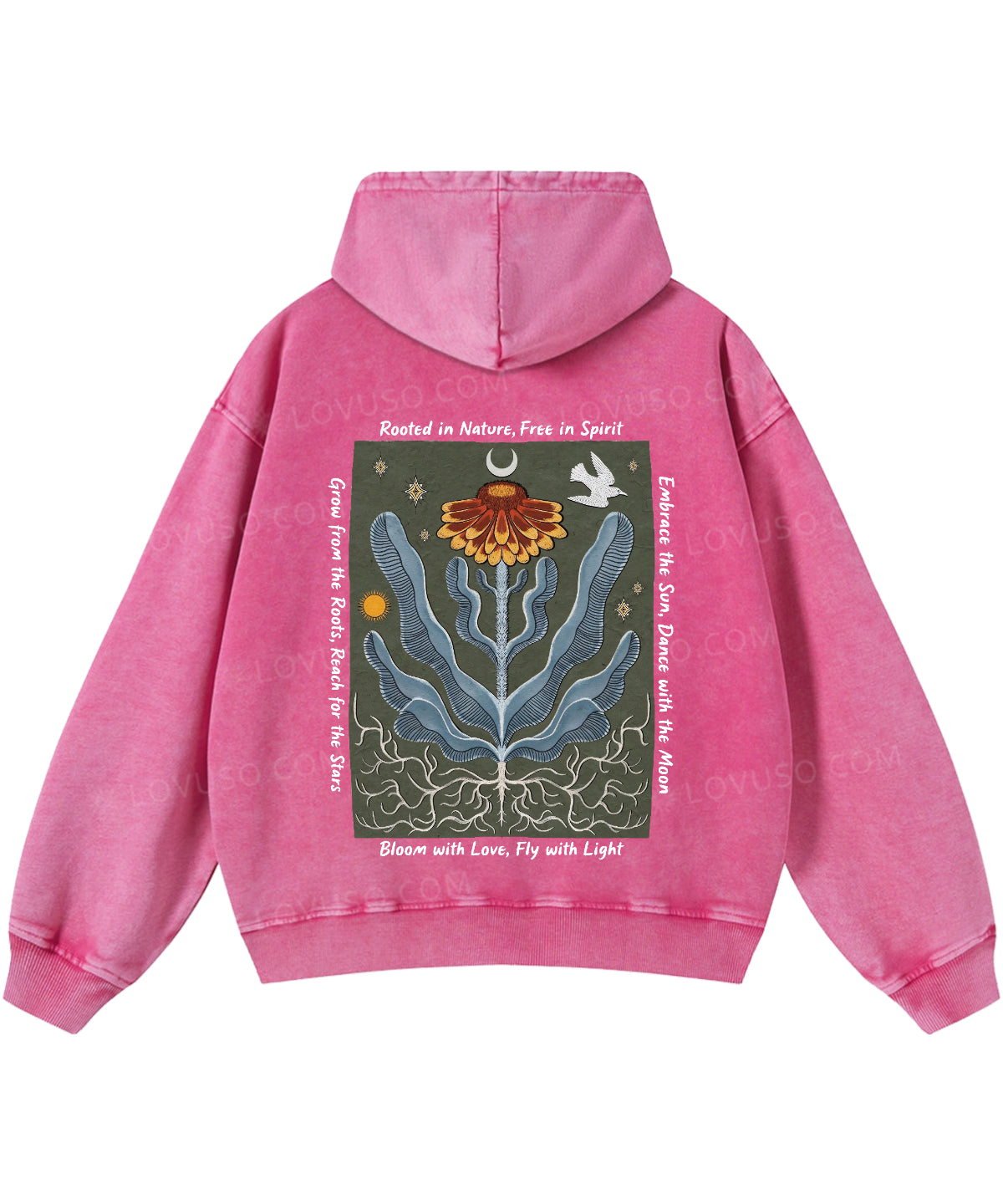 Retro Boho Rooted In Nature Free In Spirit Double Sided Washed Washed Hoodie