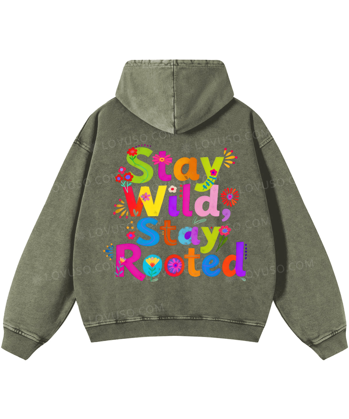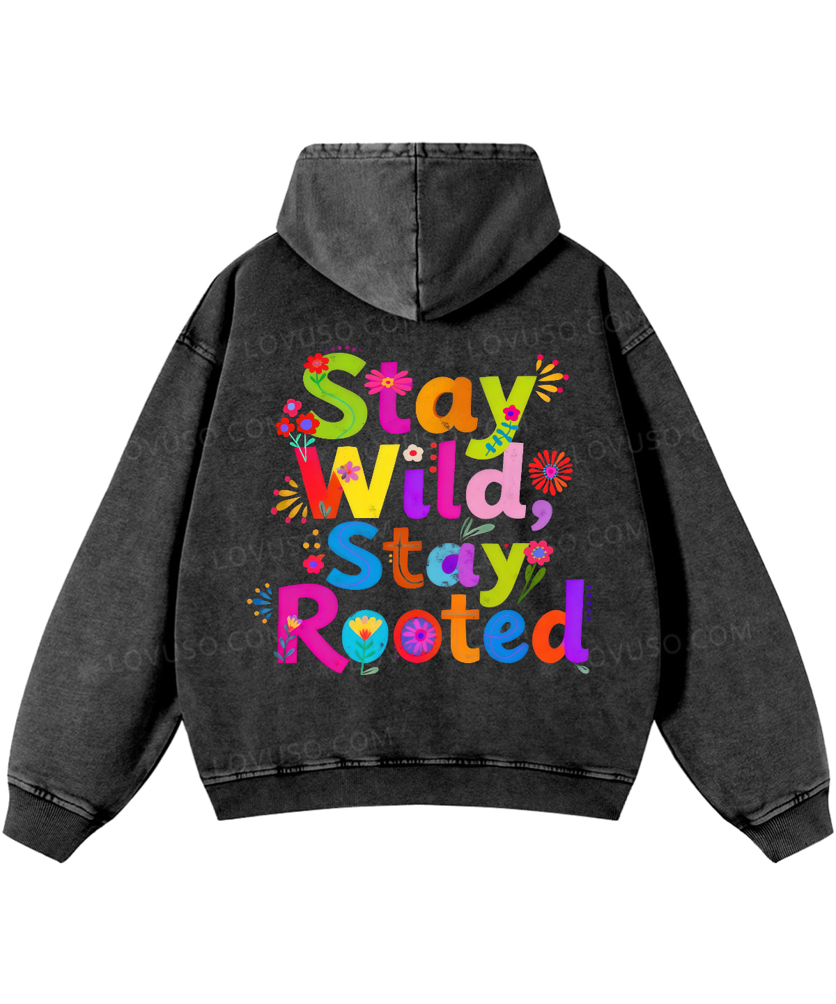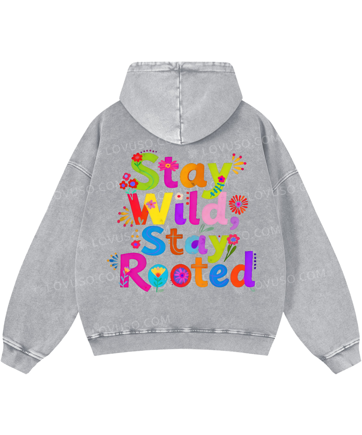 Retro Flower Stay Wild Stay Rooted Double Sided Washed Hoodie