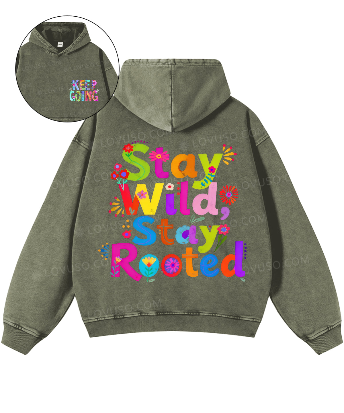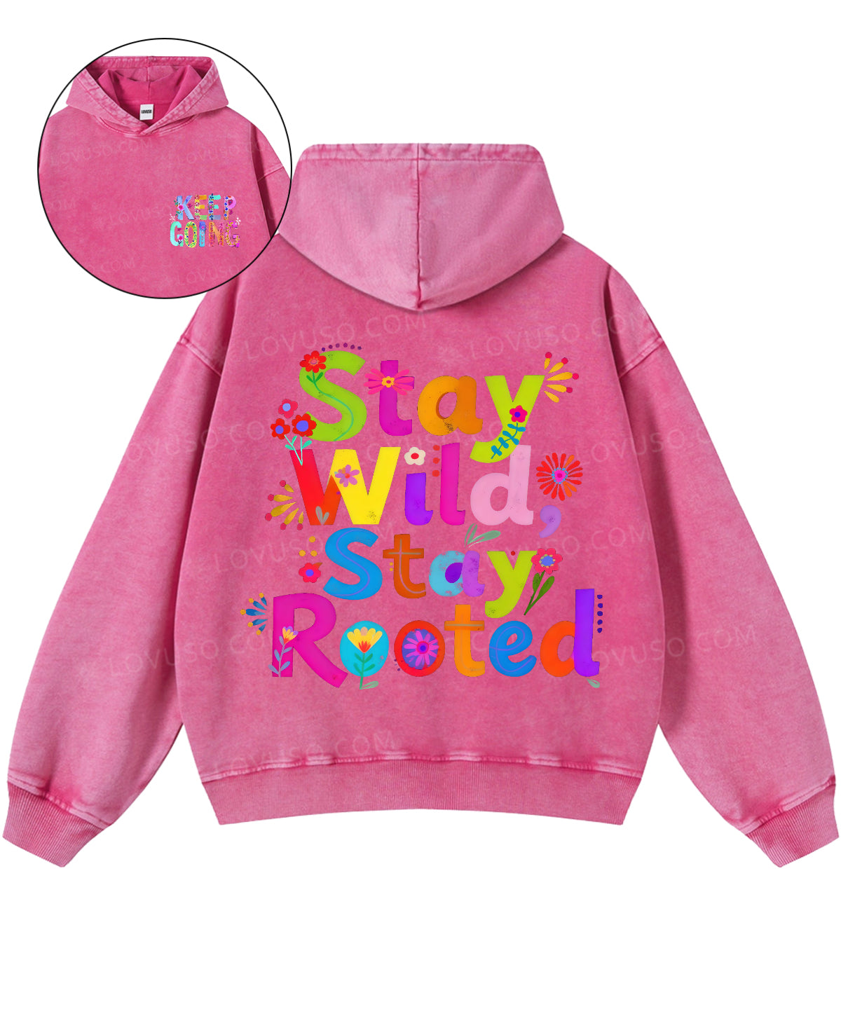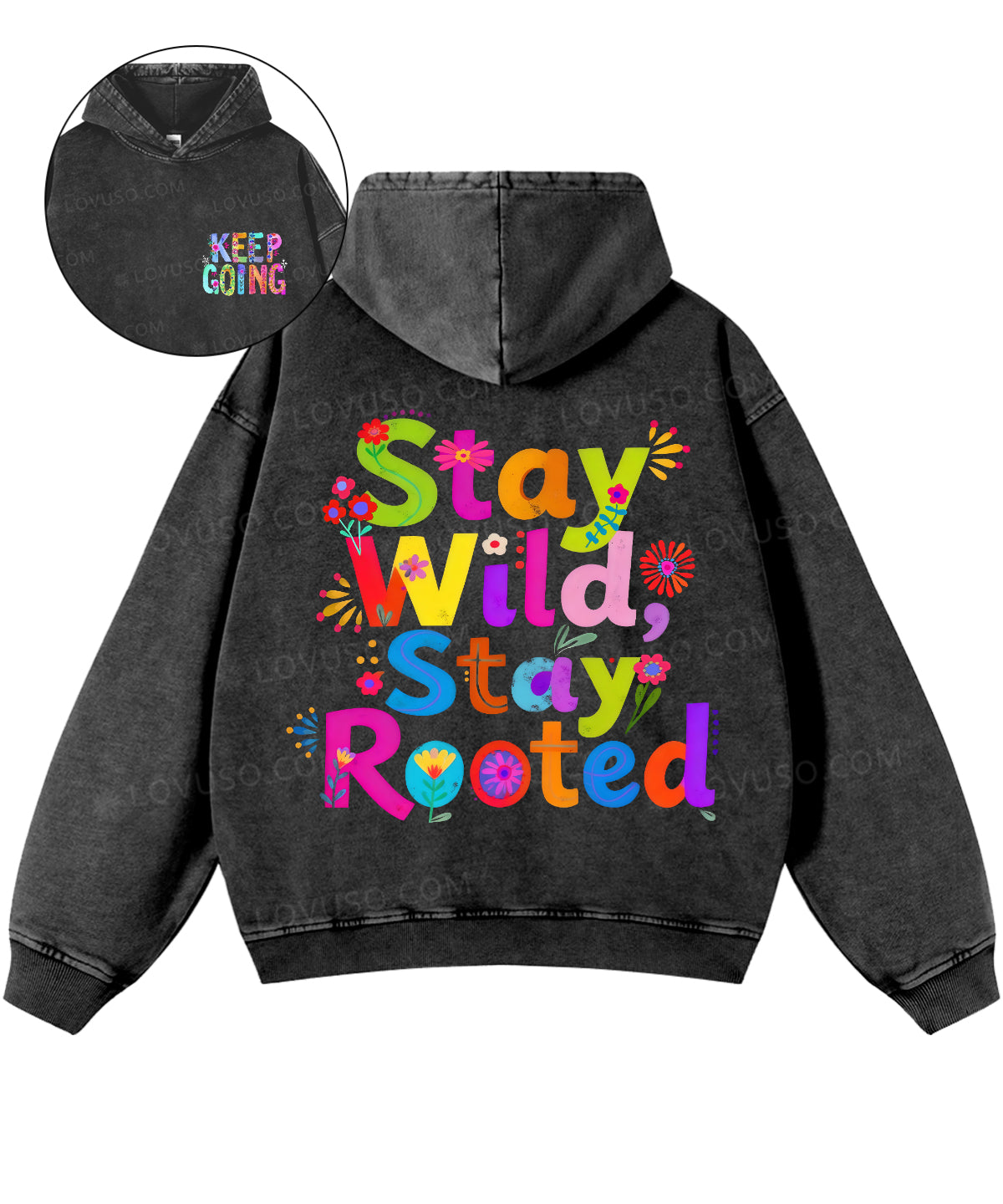 Retro Flower Stay Wild Stay Rooted Double Sided Washed Hoodie