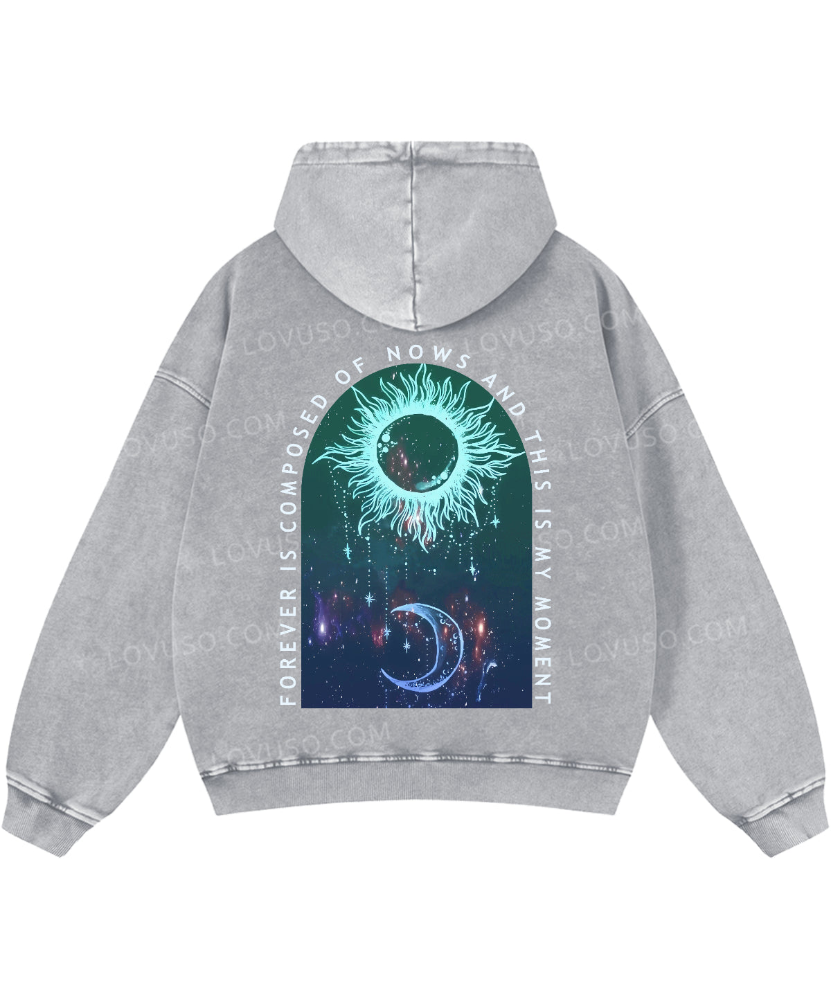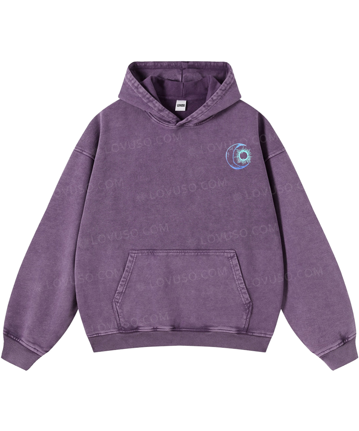 Spiritual Sun Moon Double Sided Washed Hoodie