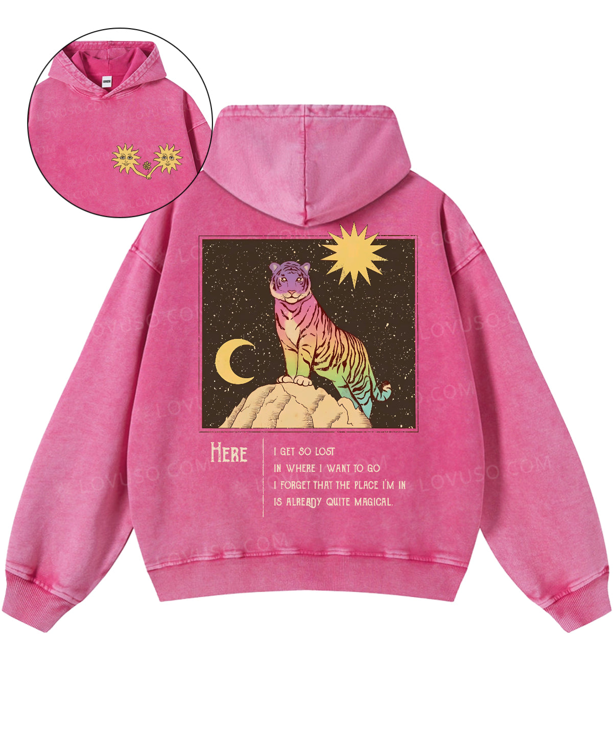 Spiritual Tiget Here I Get So Lost Double Sided Washed Hoodie